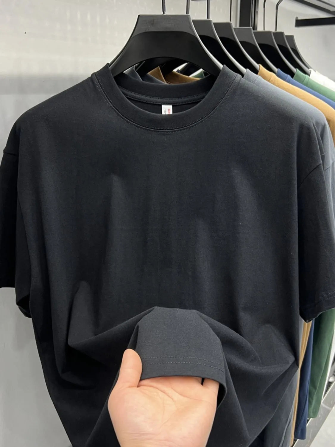 Een clean en veelzijdig T-shirt gemaakt van een zachte katoen-polyester mix met lichte stretch voor extra comfort. Ontworpen met een relaxte pasvorm voor dagelijks gebruik — ideaal om te layeren, te combineren met denim of te dragen met joggers.