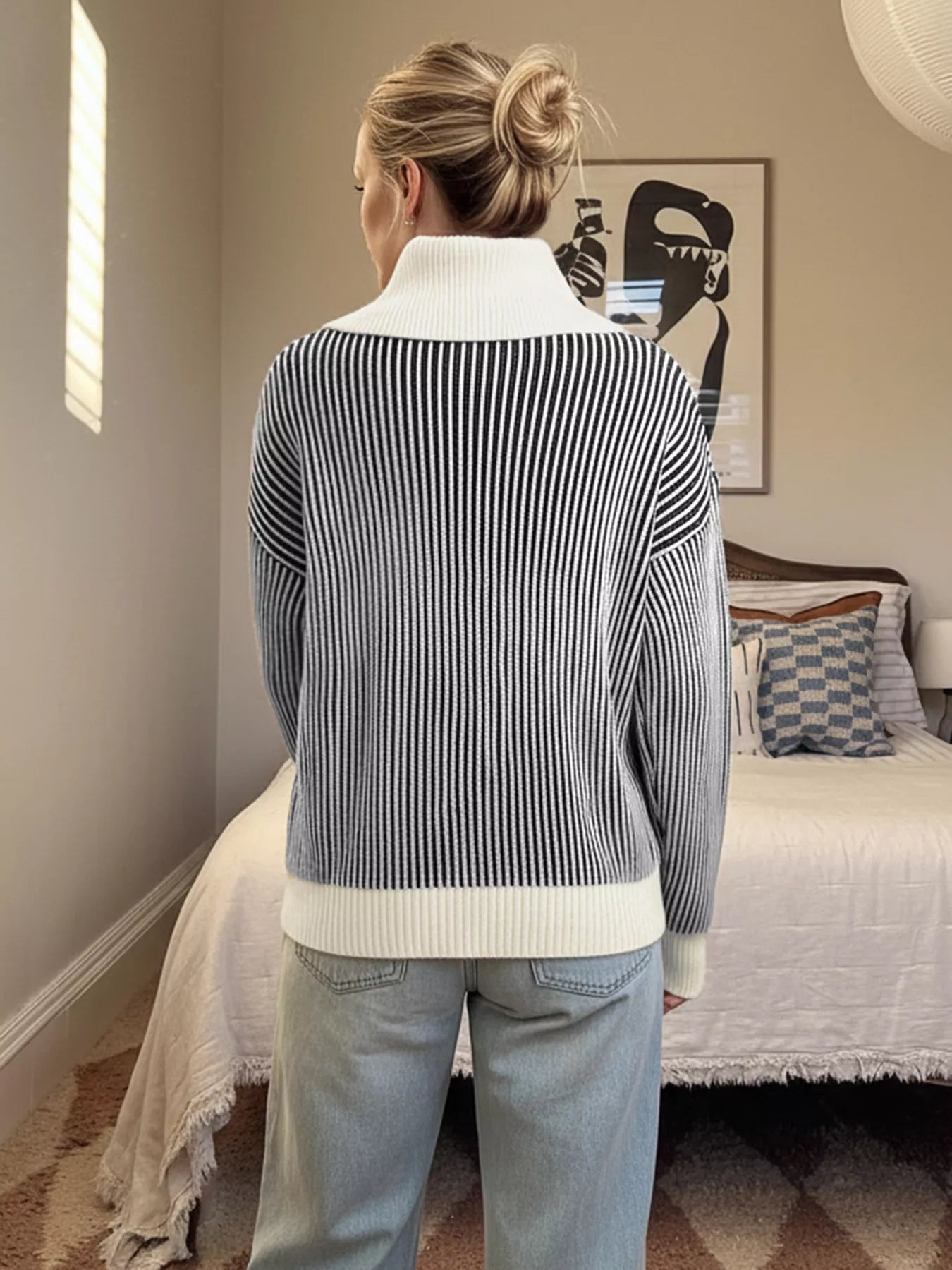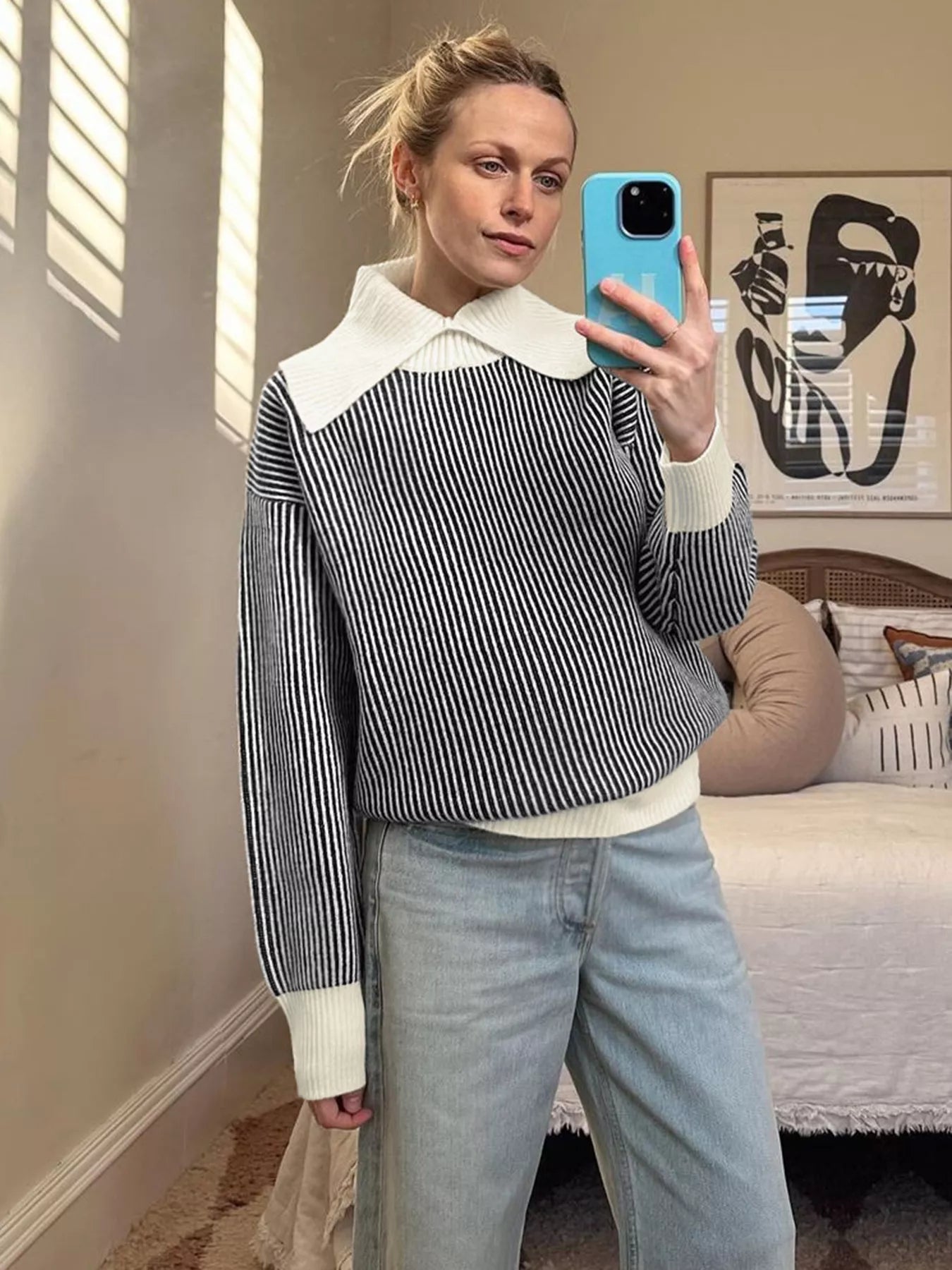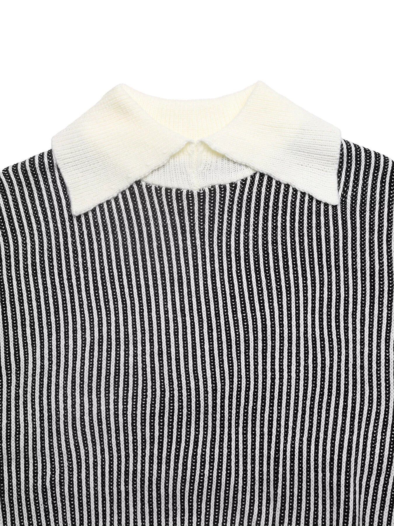 Striped Knit Sweater with Contrast Collar
