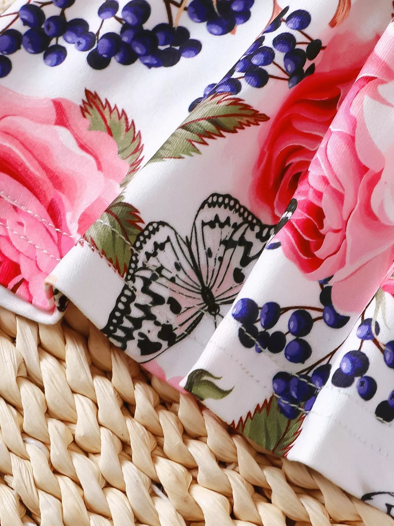 Bloemen Top met Ruffle Rand & Destroyed Jeans Set voor Kinderen