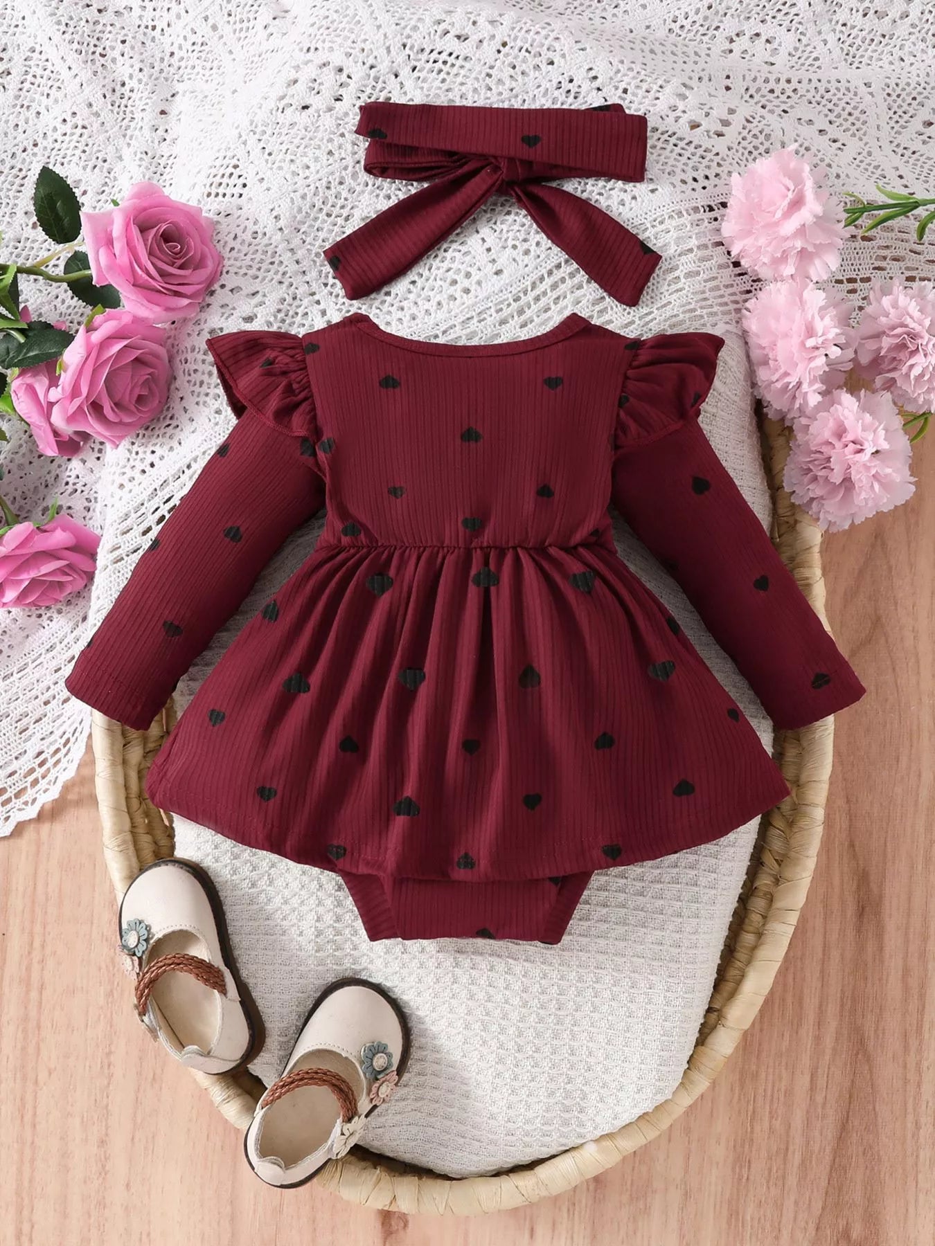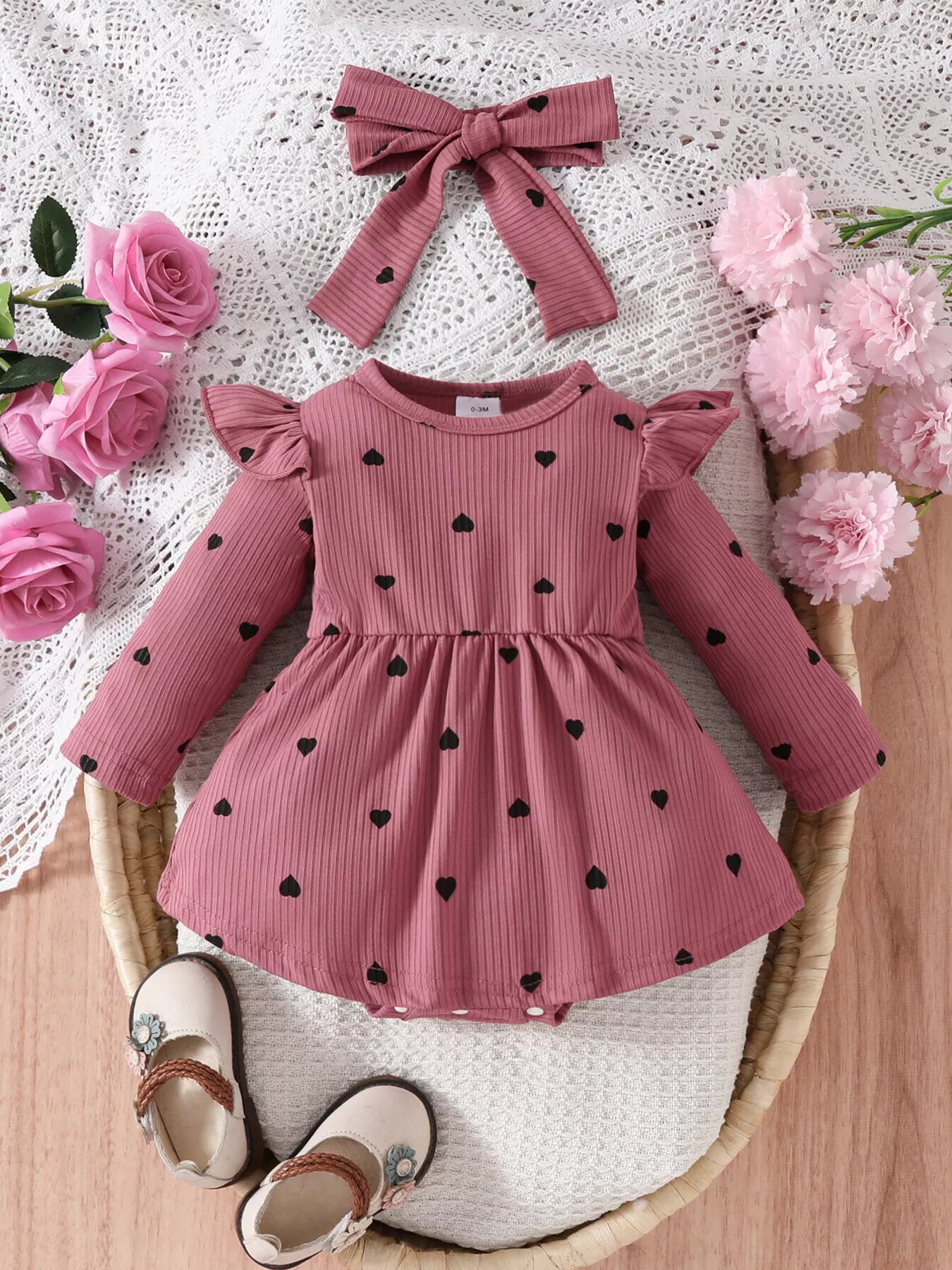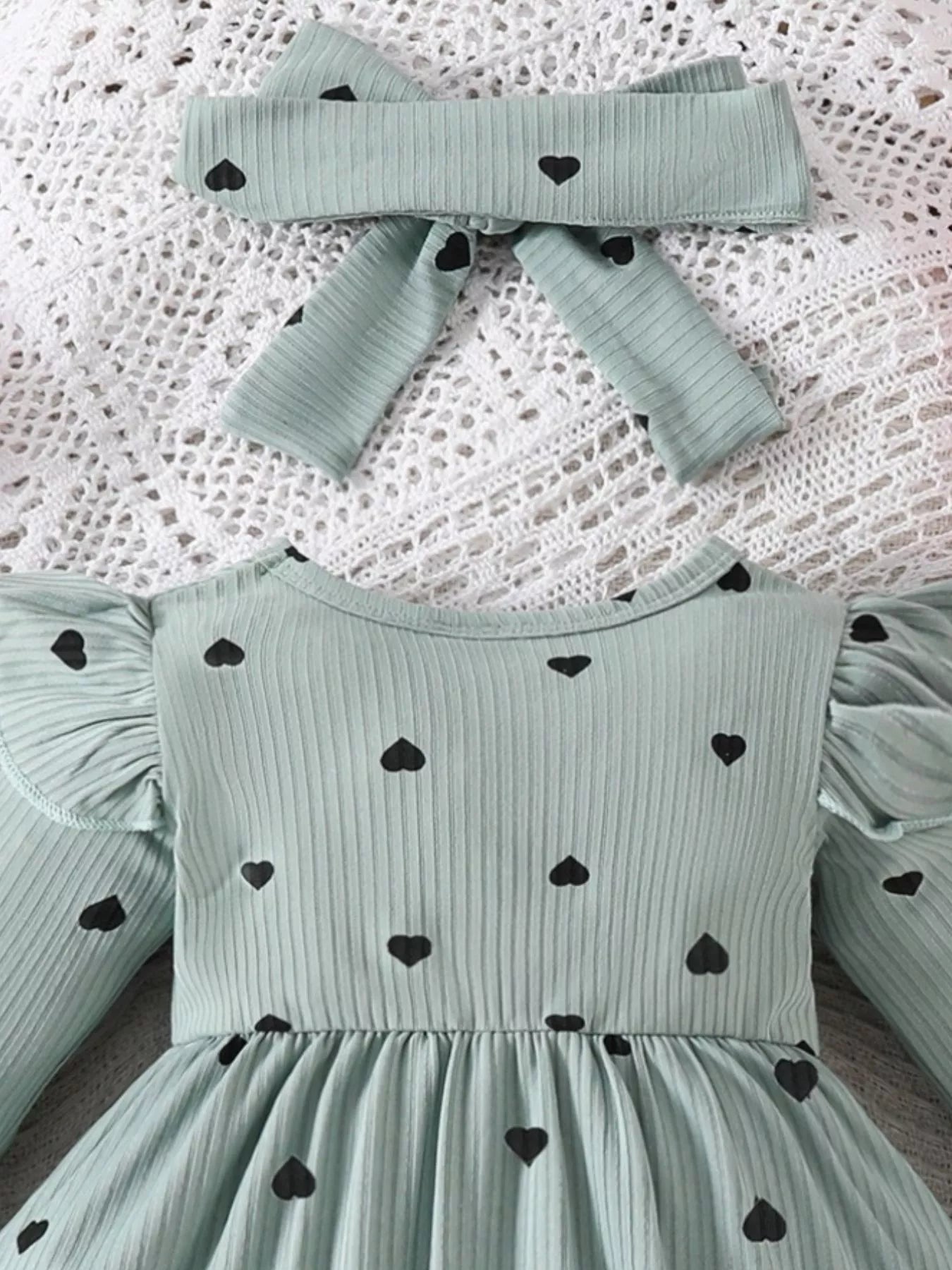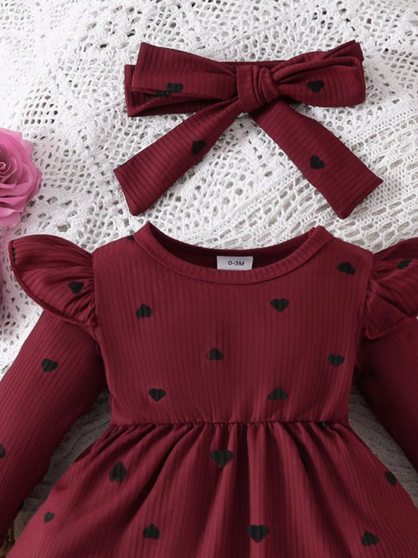 Babyjurk met Hartjesprint, Ruches en Haarband