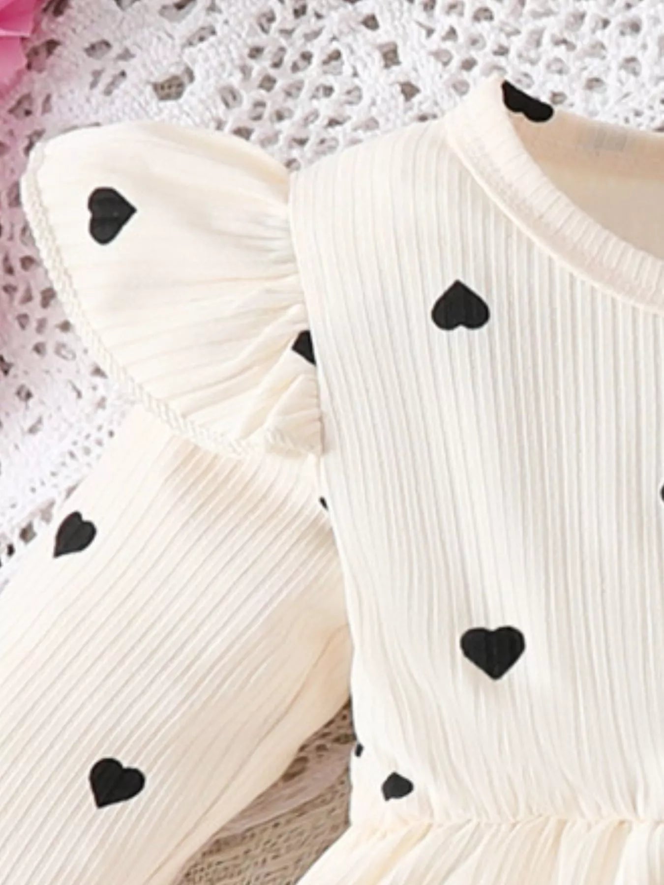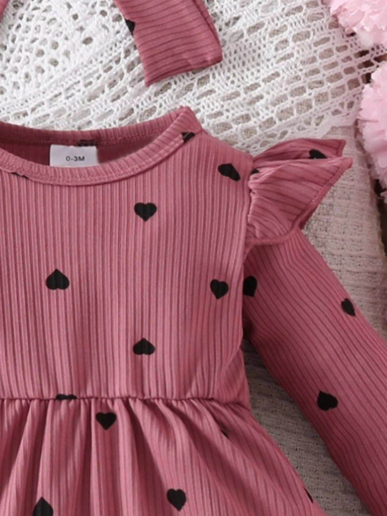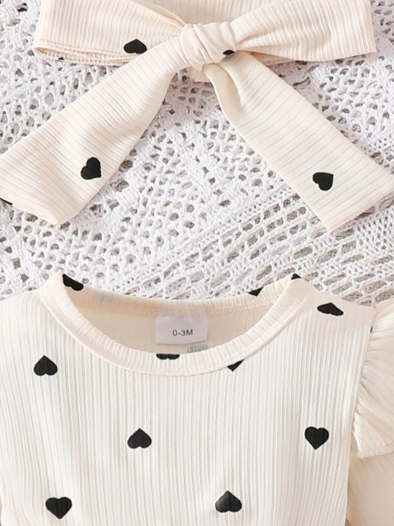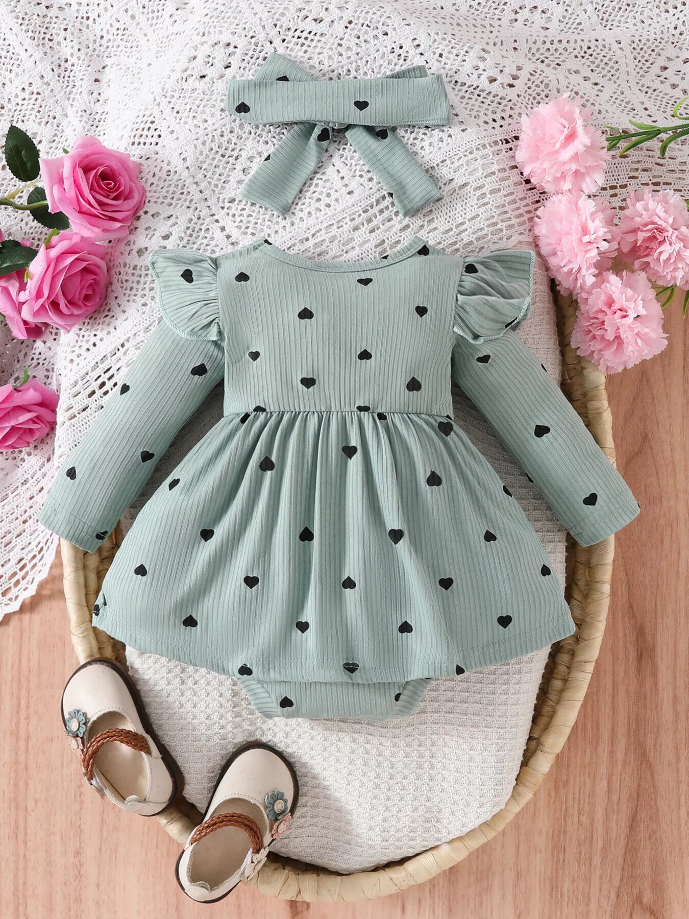 Babyjurk met Hartjesprint, Ruches en Haarband
