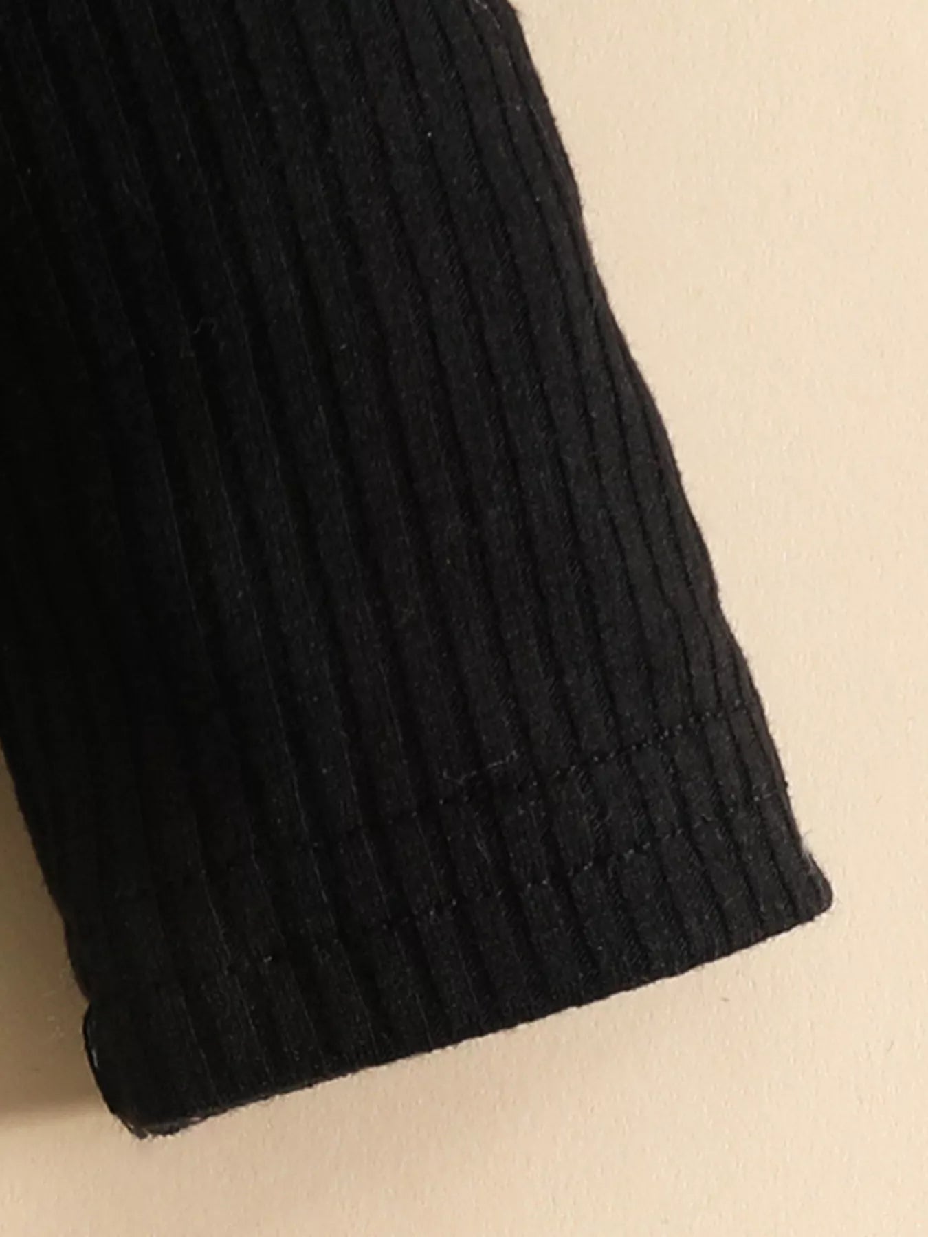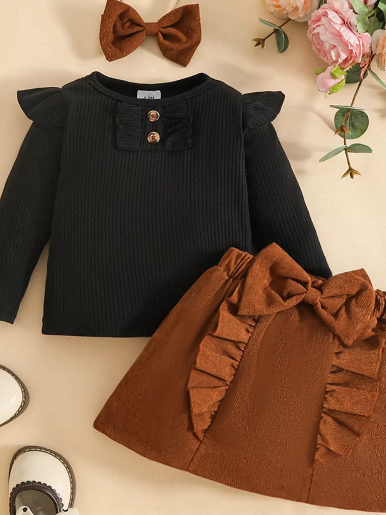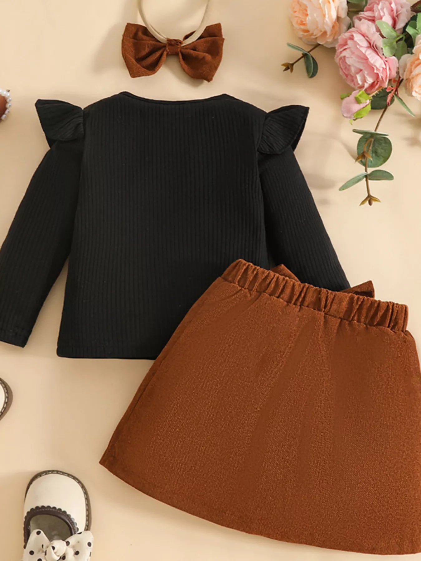 Geribde Top en Strik Rok Set met Haarband voor Kinderen