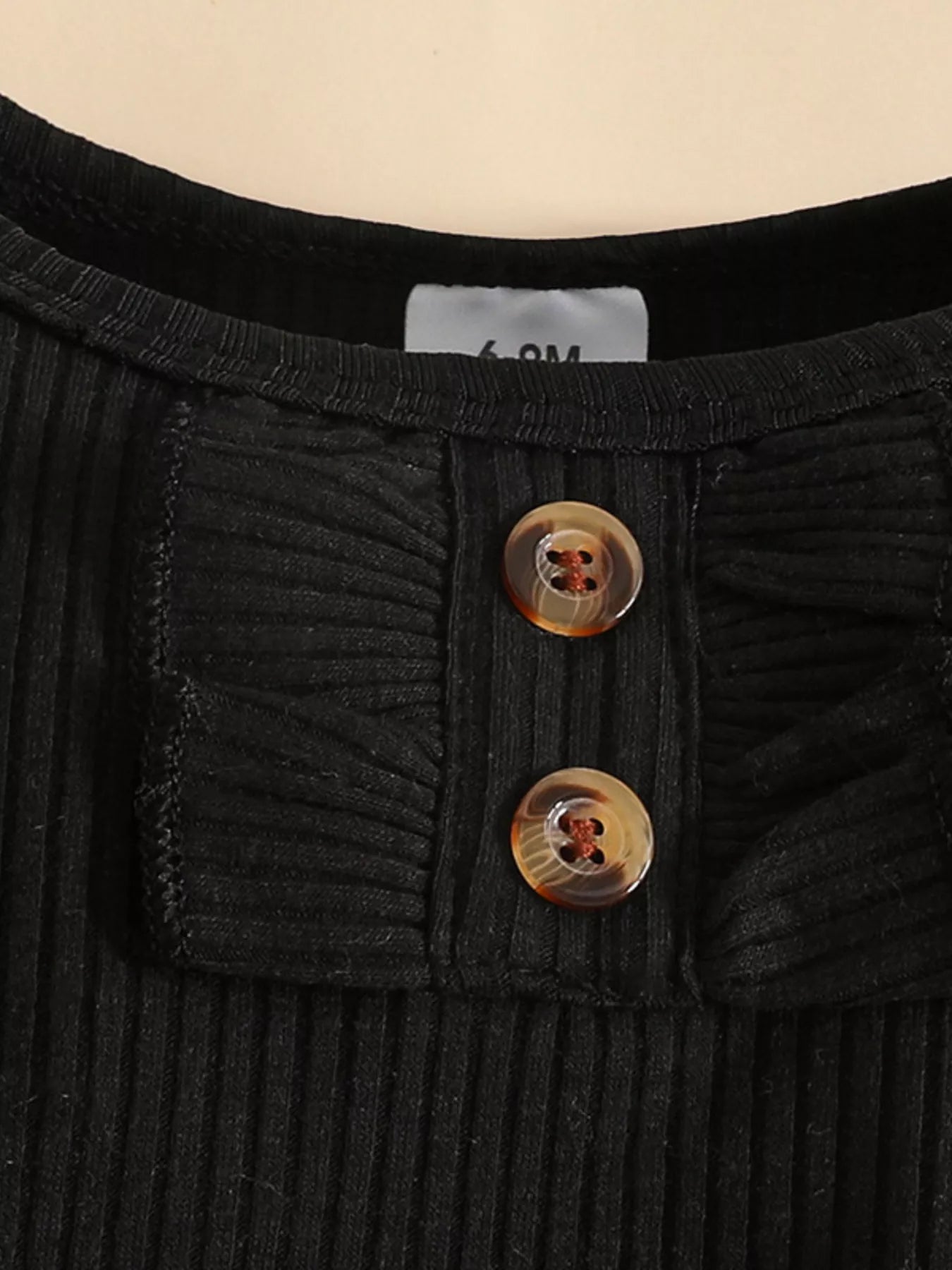 Een schattige en comfortabele driedelige outfit met een charmant strikdetail, perfect voor dagelijks gebruik.