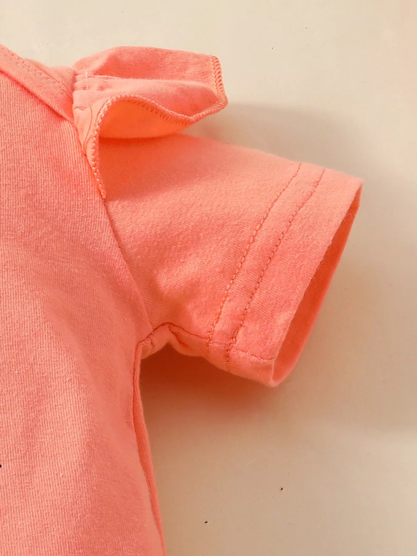 Ruches Korte Mouw Romper en Broek Set met Haarband voor Kinderen