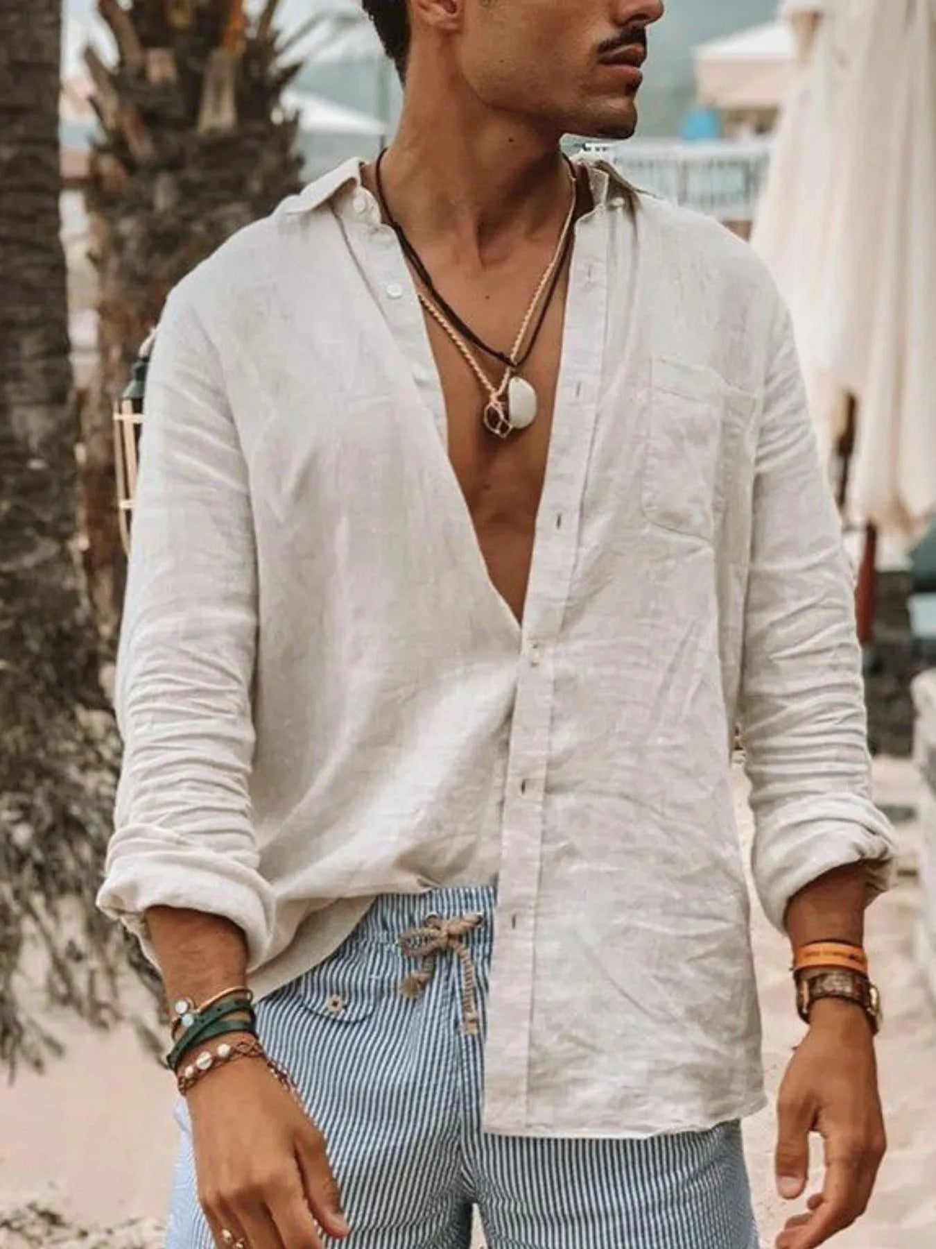 Heren Linnen Overhemd met Knoopsluiting – Plus Size
