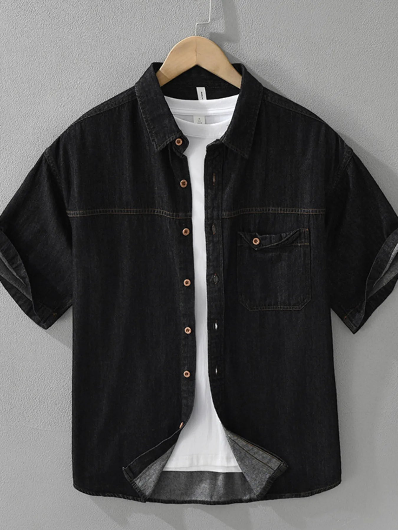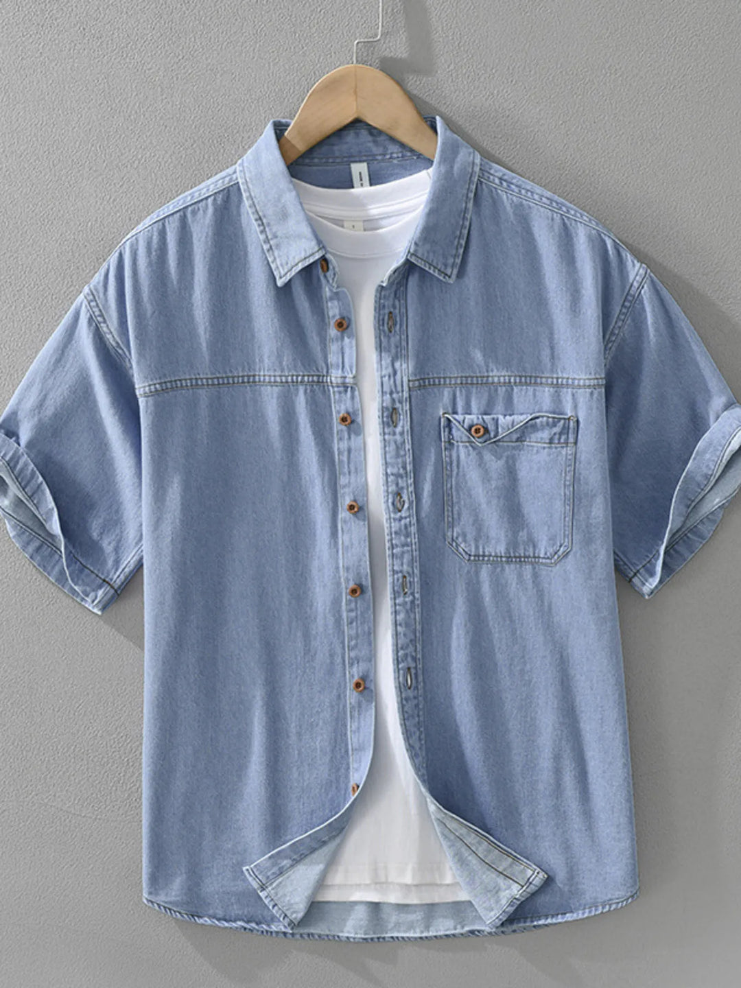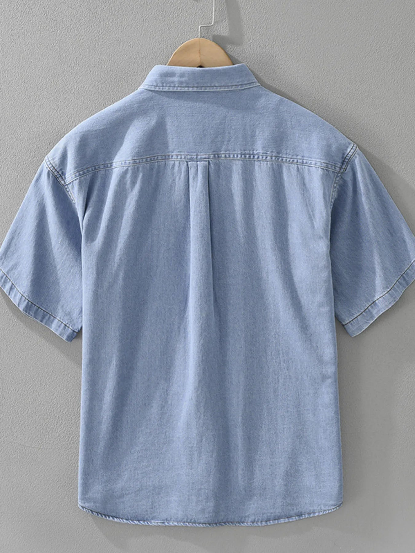 Heren Denim Overhemd met Korte Mouwen en Knoopsluiting – Plus Size