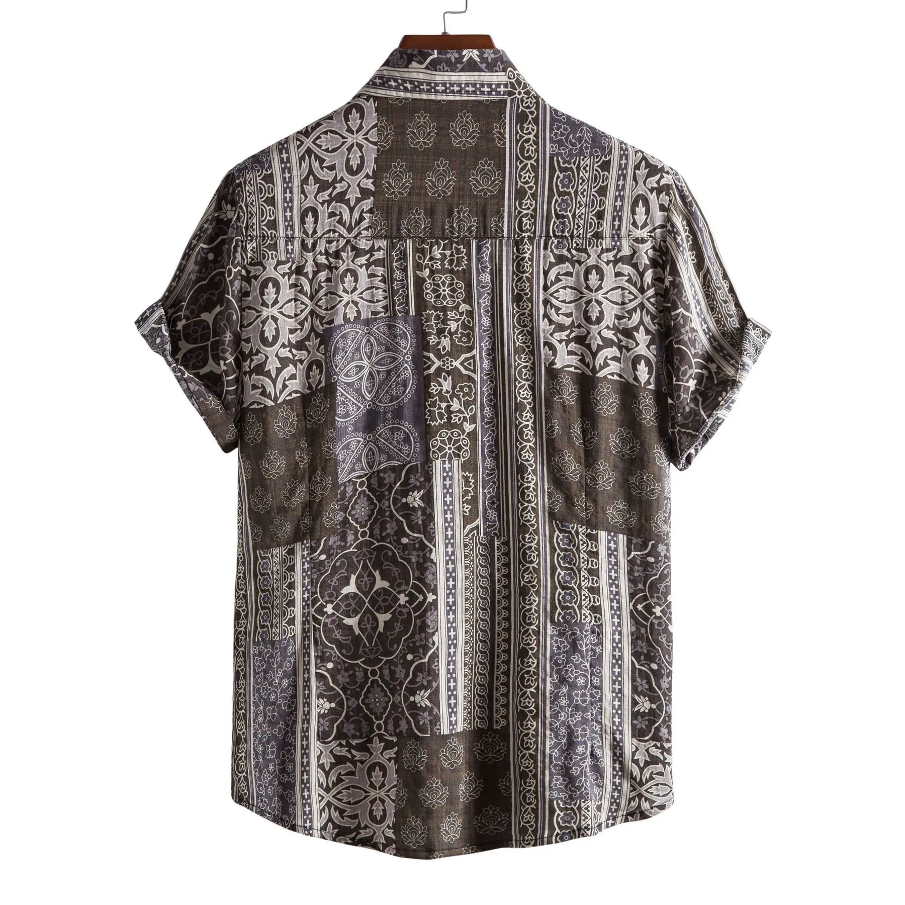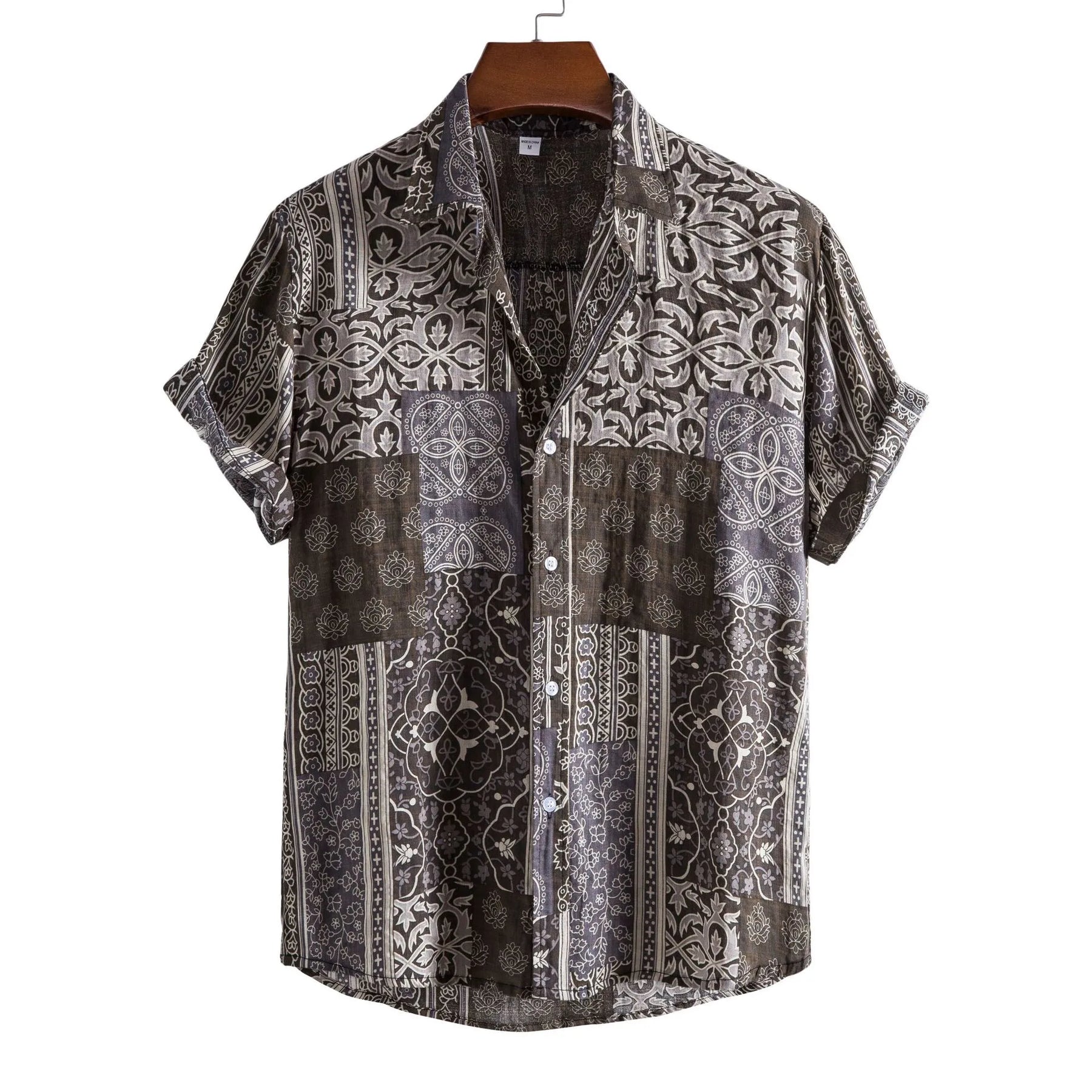 Heren Plus Size Etnisch Print Overhemd met Korte Mouwen