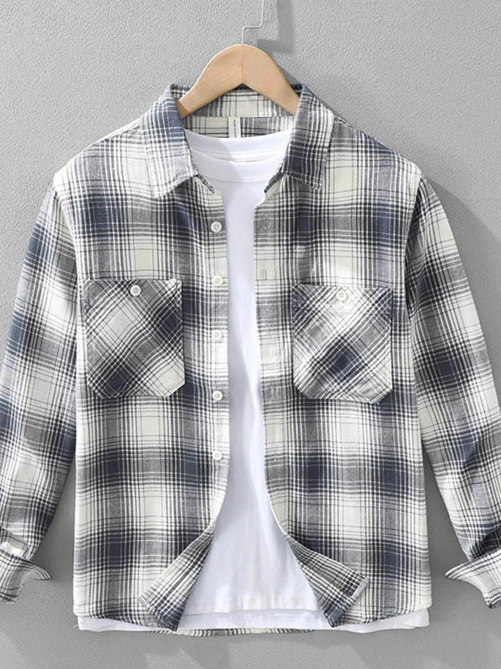 Heren Plus Size Geruit Flanellen Overhemd met Borstzakken