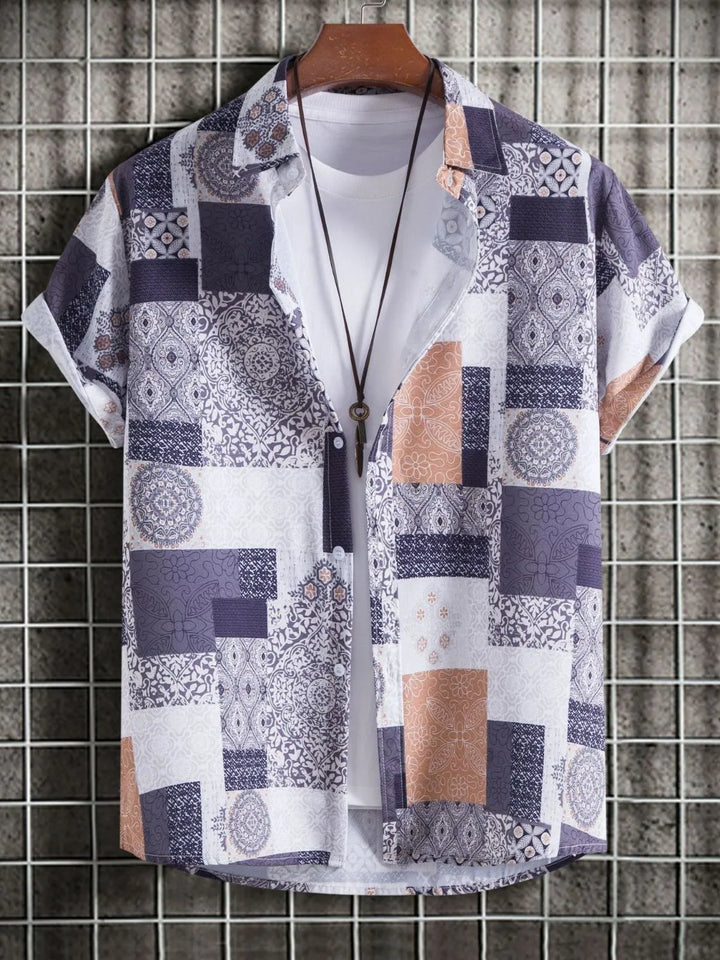 Heren Plus Size Bedrukt Overhemd met Korte Mouwen