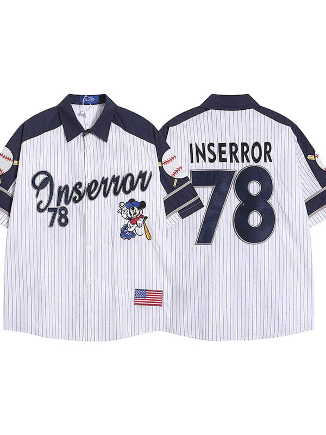 Heren Retro Baseball Overhemd met Korte Mouwen