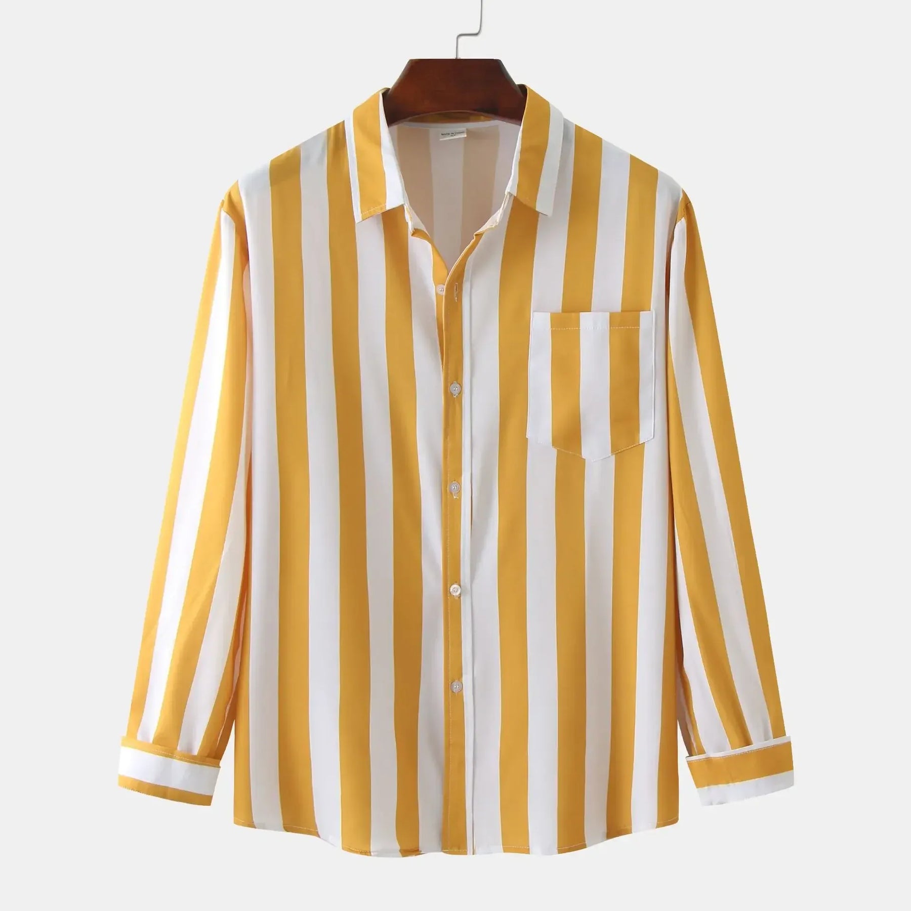 Heren Gestreept Overhemd met Lange Mouwen en Knoopsluiting