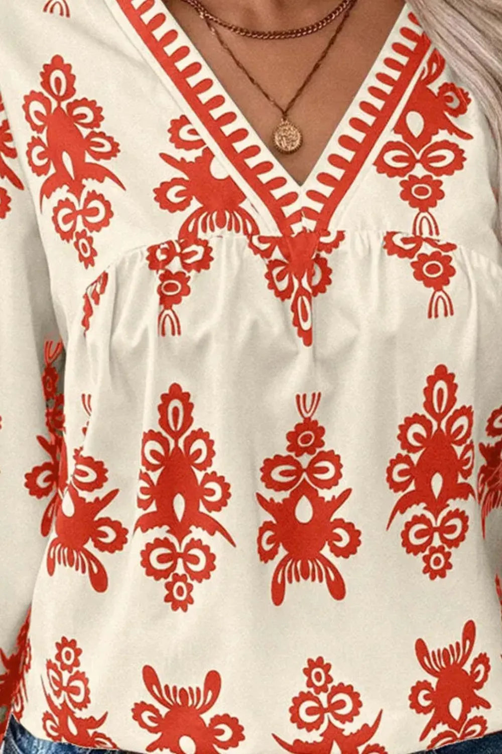 Bedrukte Blouse met V-Hals en Driekwartmouwen