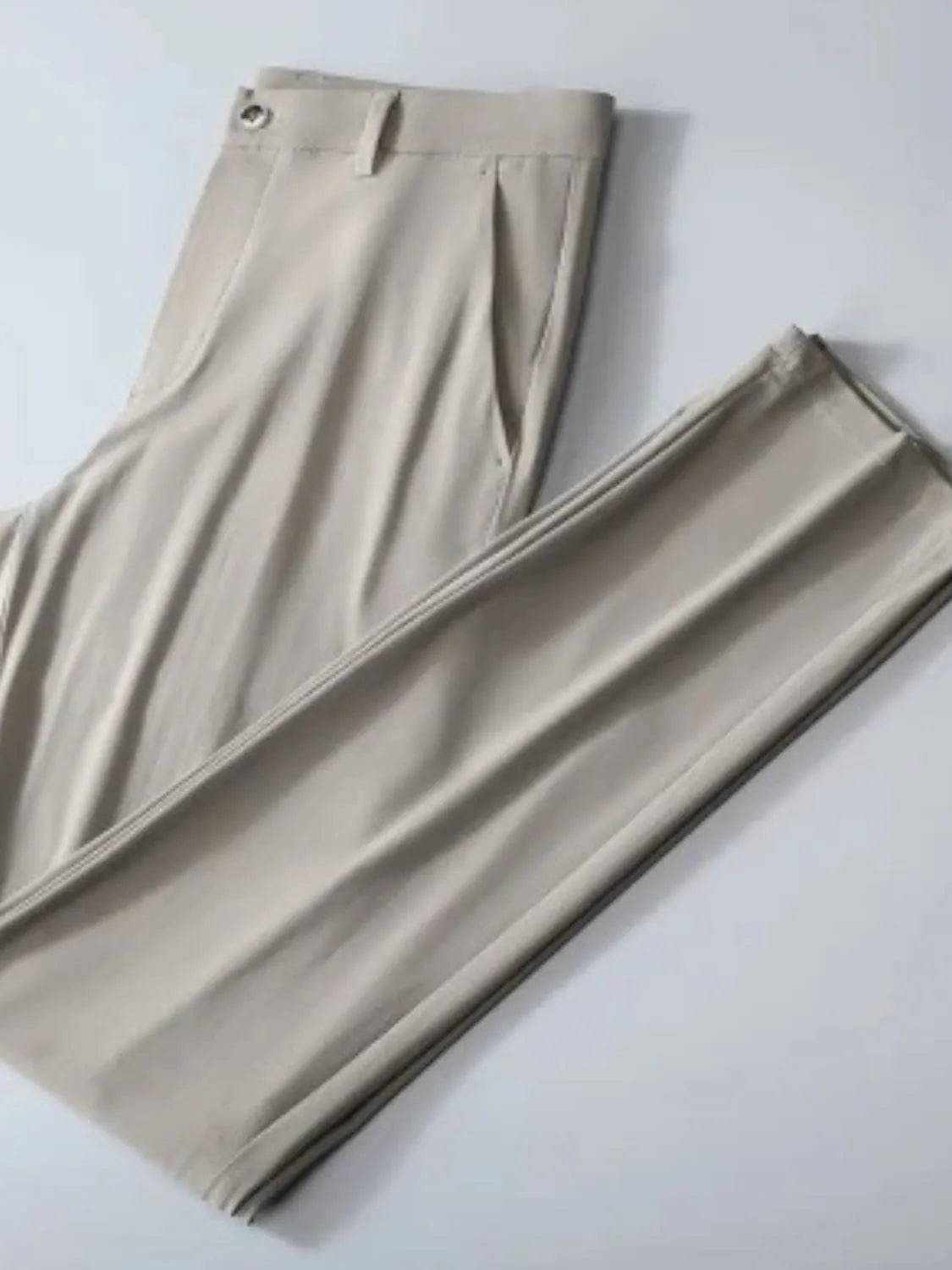 Deze herenbroek met slim fit is vervaardigd uit een hoogwaardige mix van nylon en spandex, wat zorgt voor een strakke, moderne pasvorm met maximale flexibiliteit. Ontworpen voor dagelijks comfort — de stof beweegt met je mee en behoudt tegelijkertijd een nette, gestructureerde look. Perfect voor zowel casual outfits als actieve dagen.