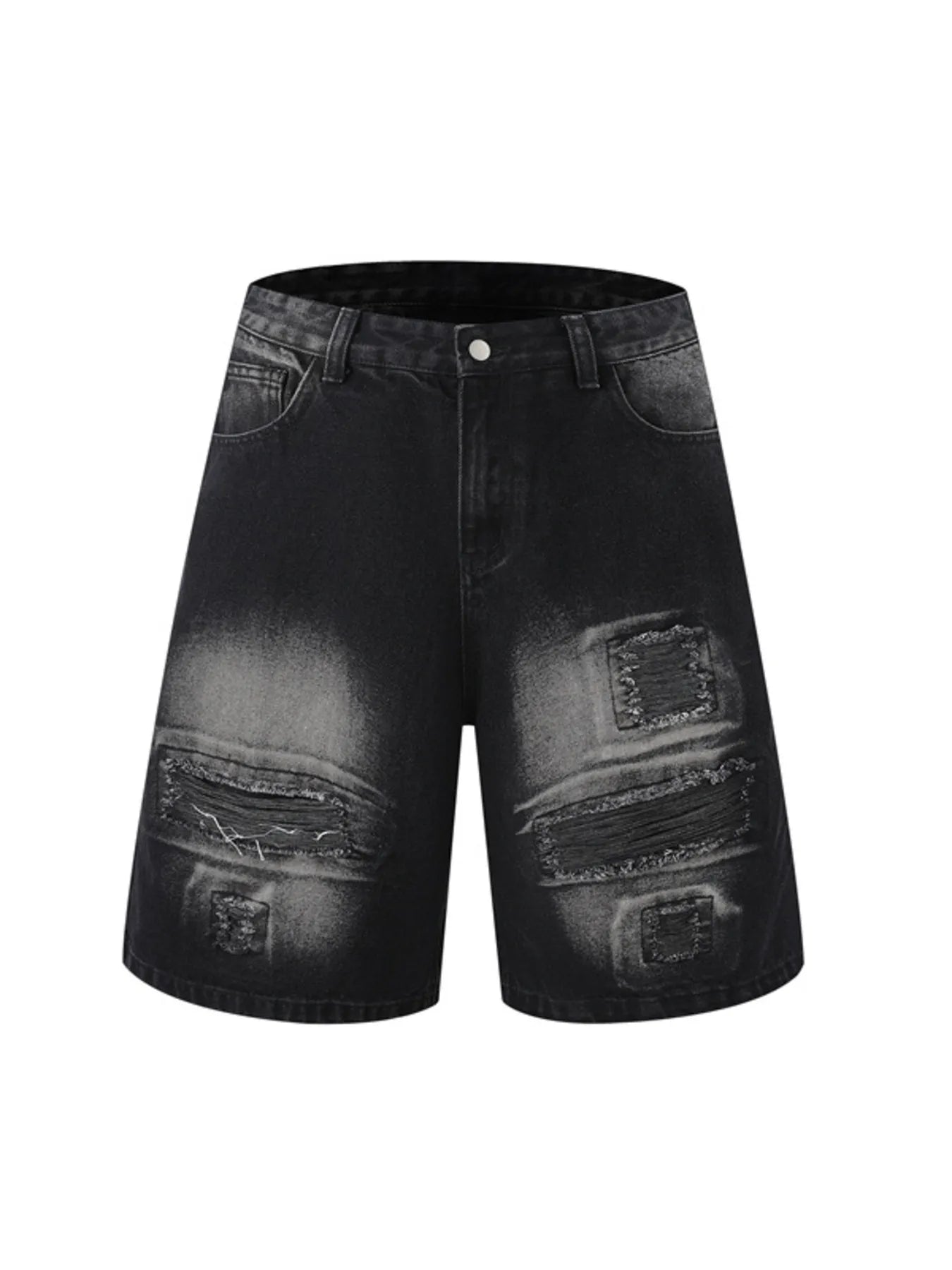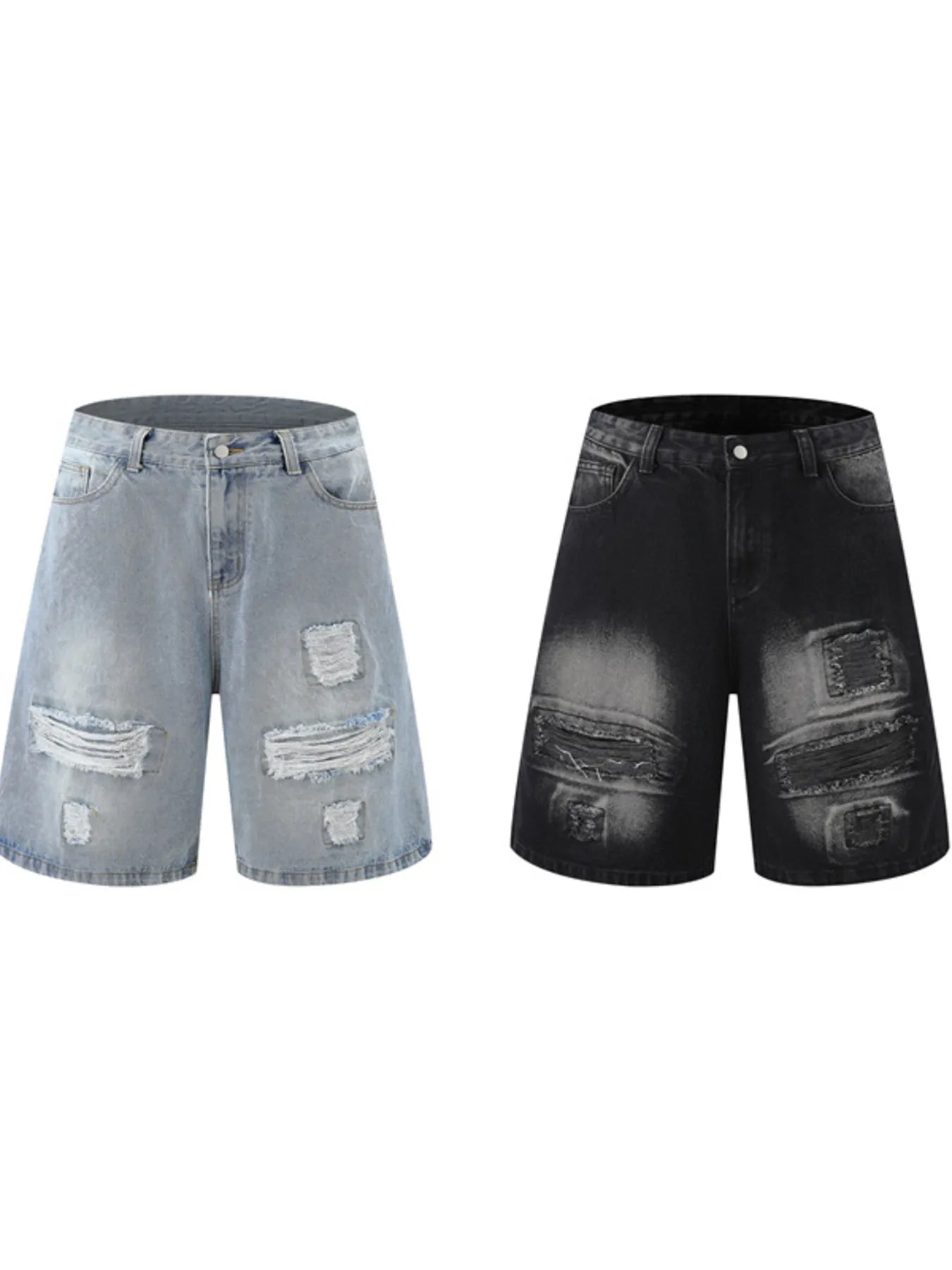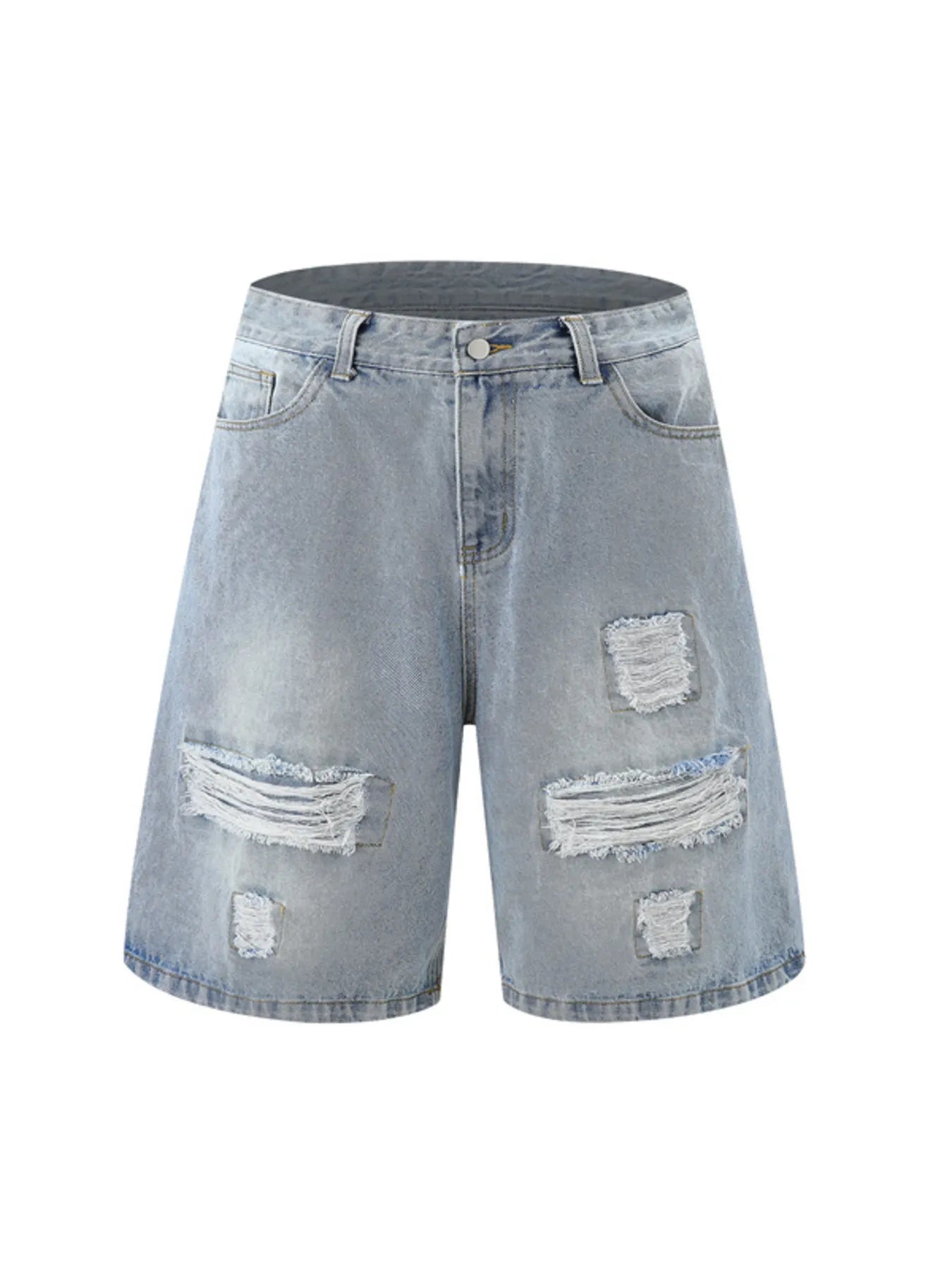 Heren Plus Size Denim Shorts met Beschadigde Details