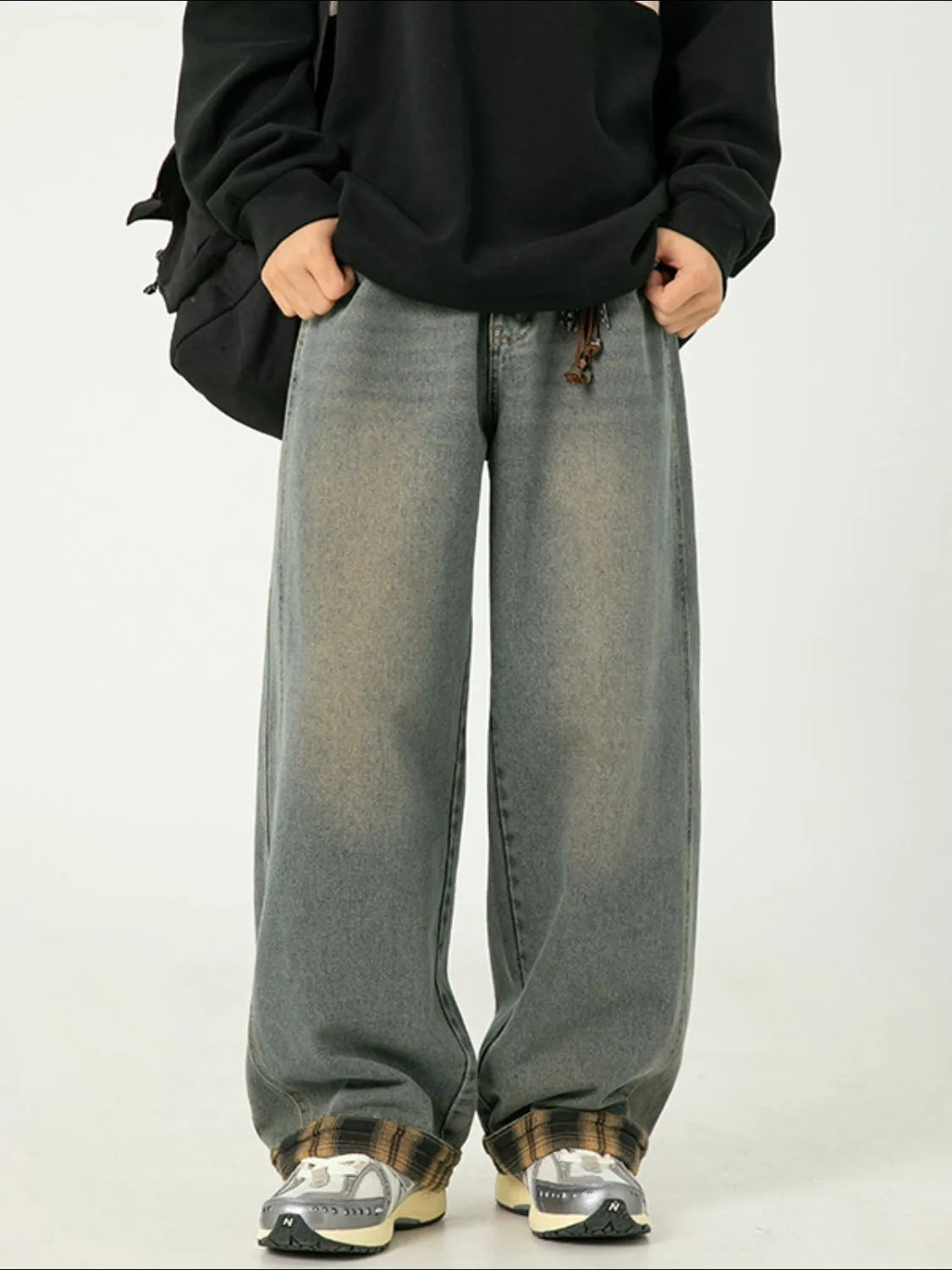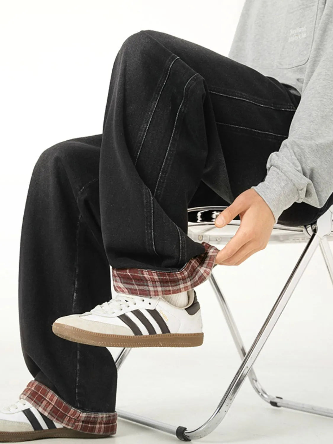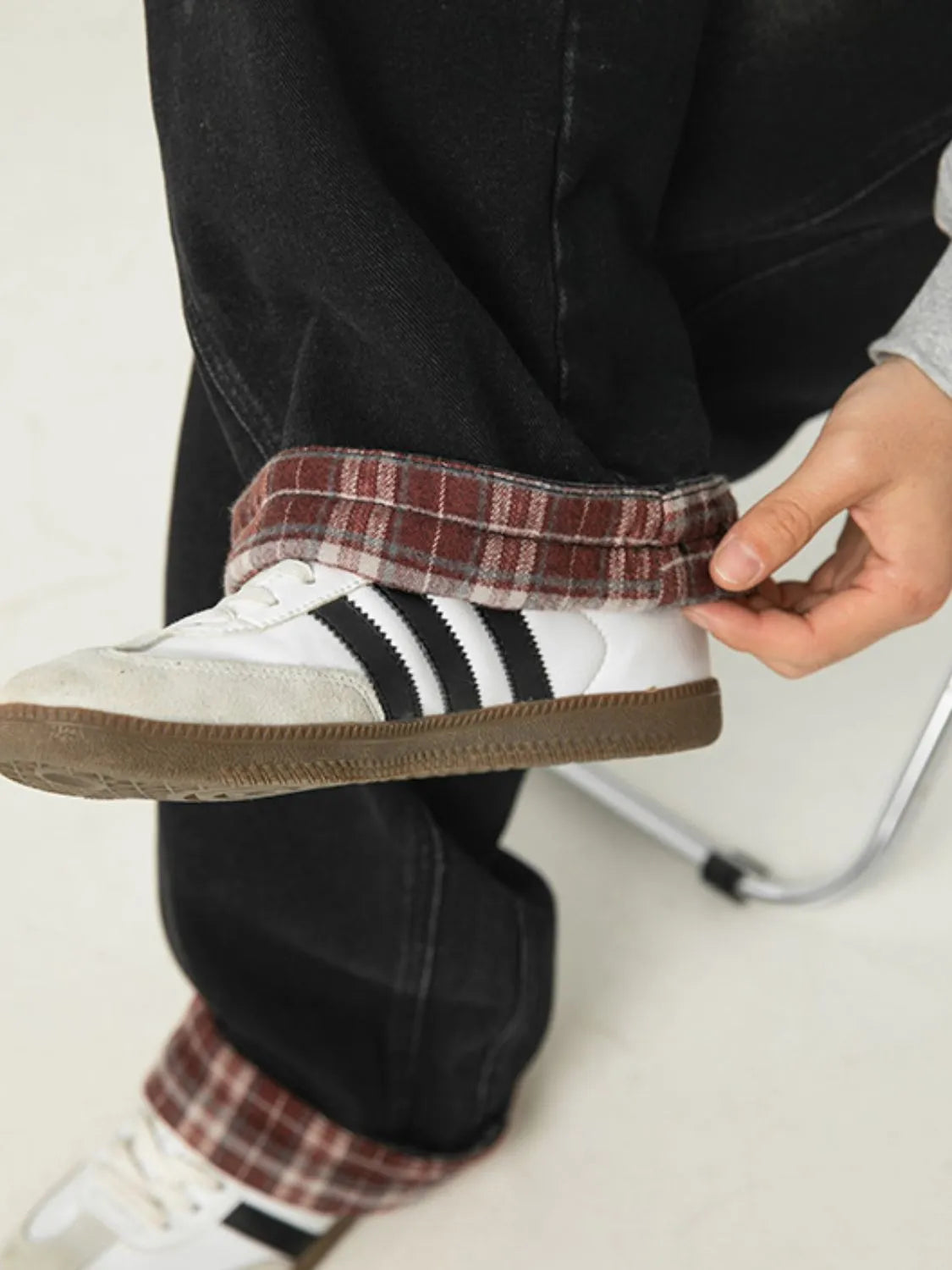 Heren Plus Size Loose Fit Jeans met Geruite Zoom