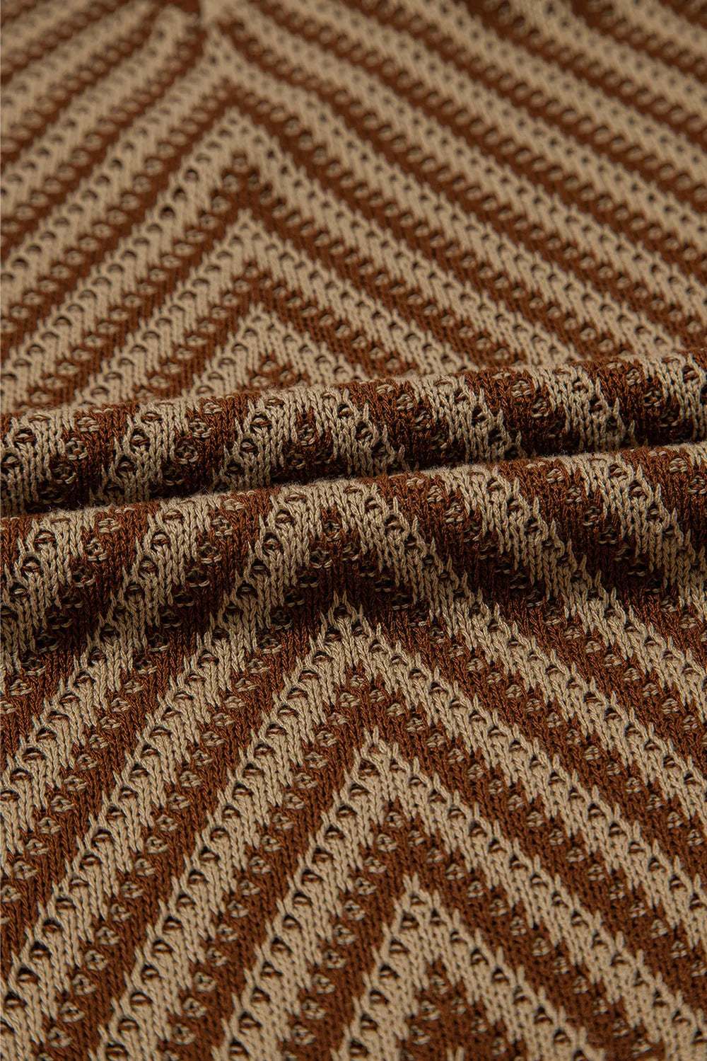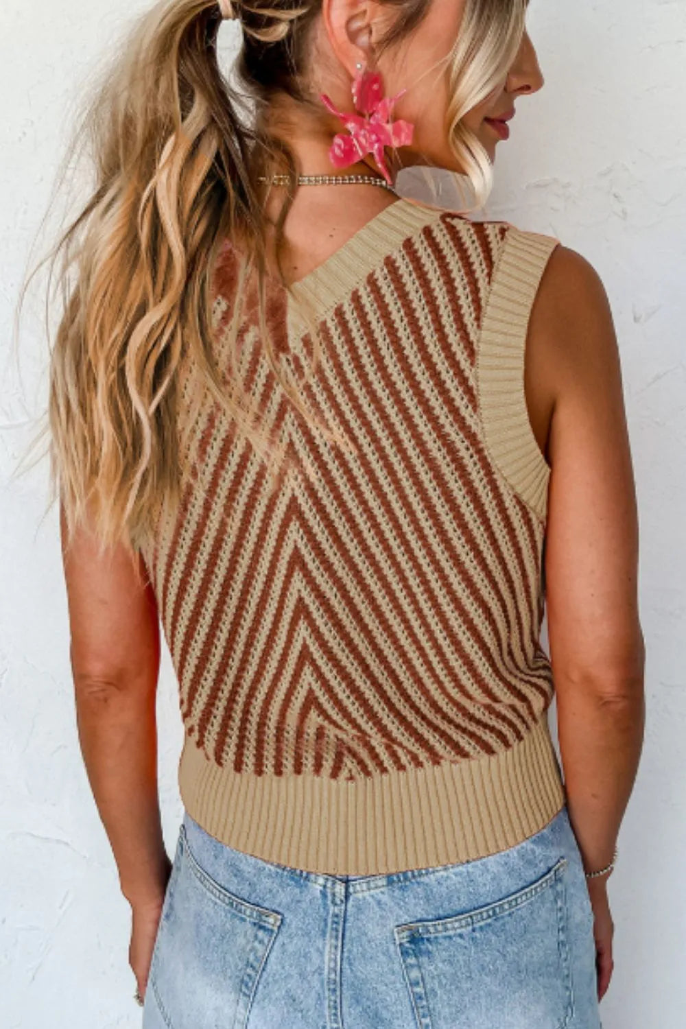 Gestreepte Mouwloze Trui met Contrasterende V-Hals