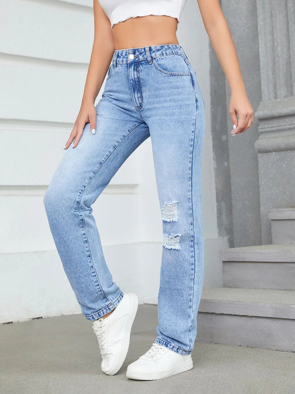 Trendy jeans met gescheurde details en functionele zakken. Gemaakt van een licht elastische katoen-polyester mix, ontworpen voor zowel comfort als duurzaamheid. Perfect voor casual dagelijks gebruik.