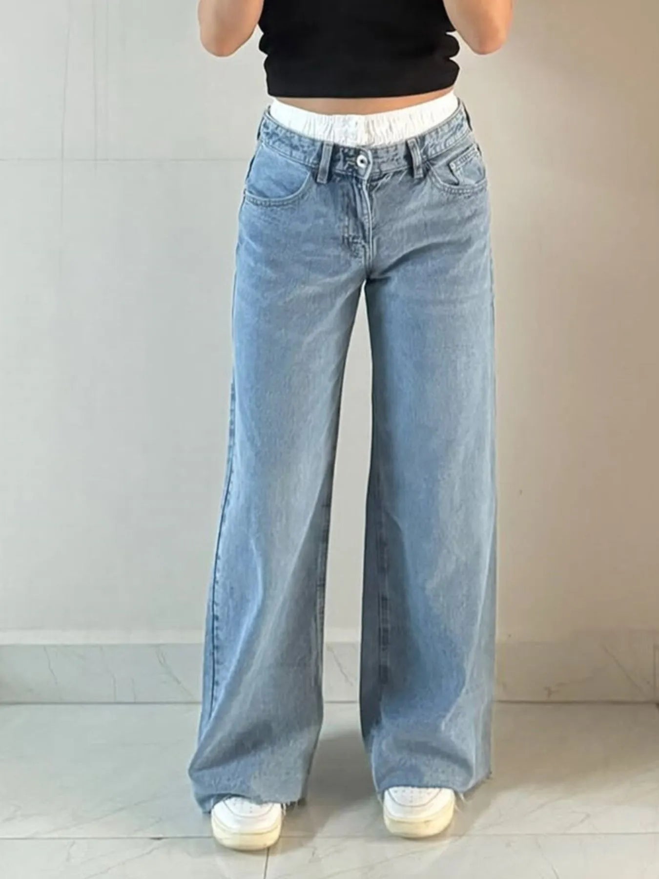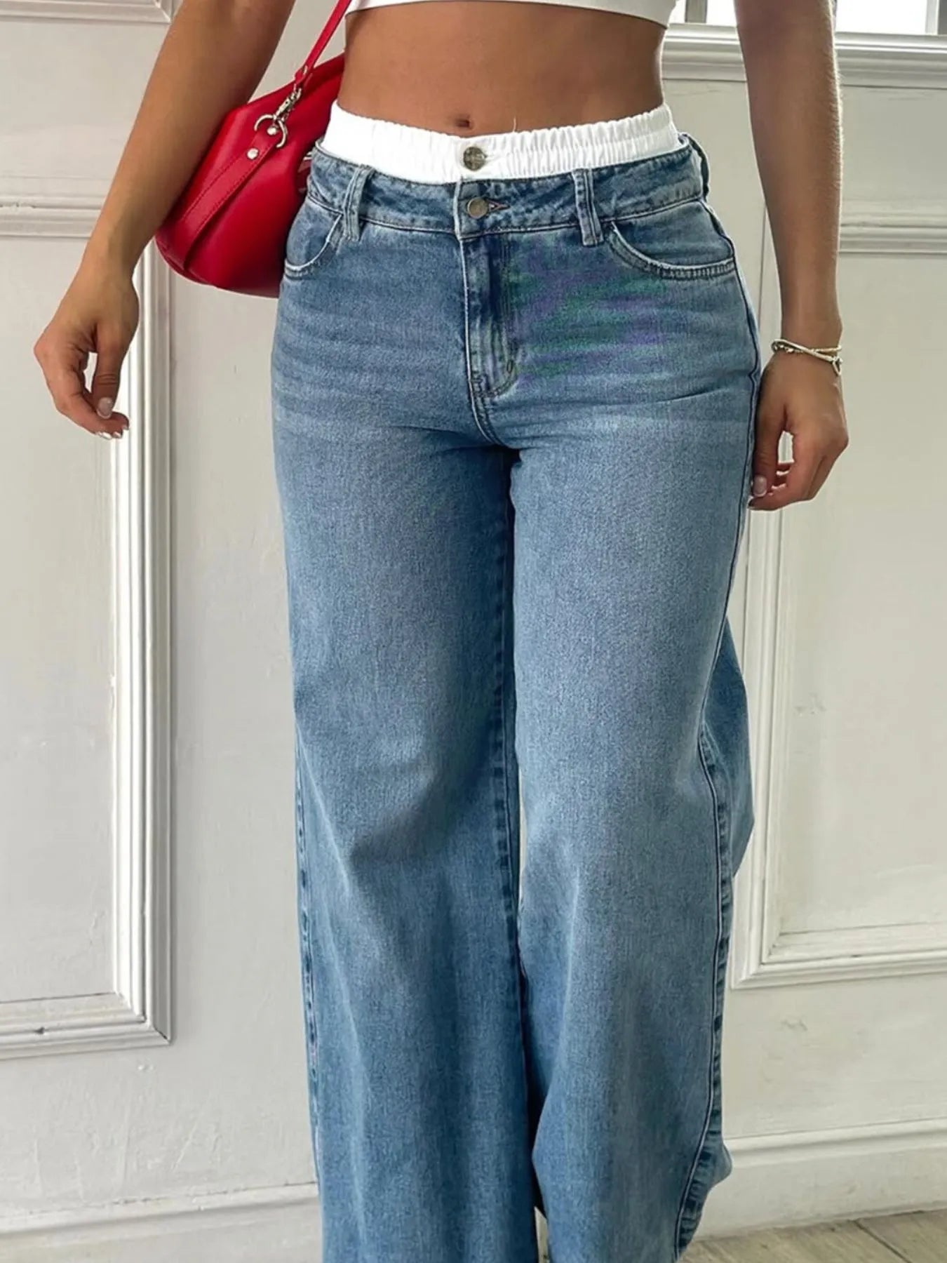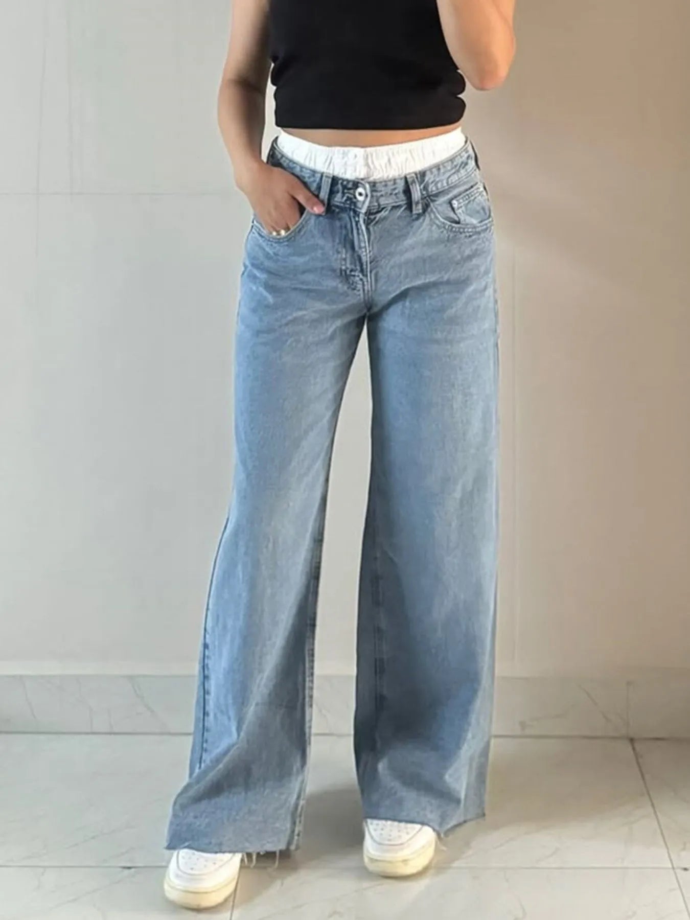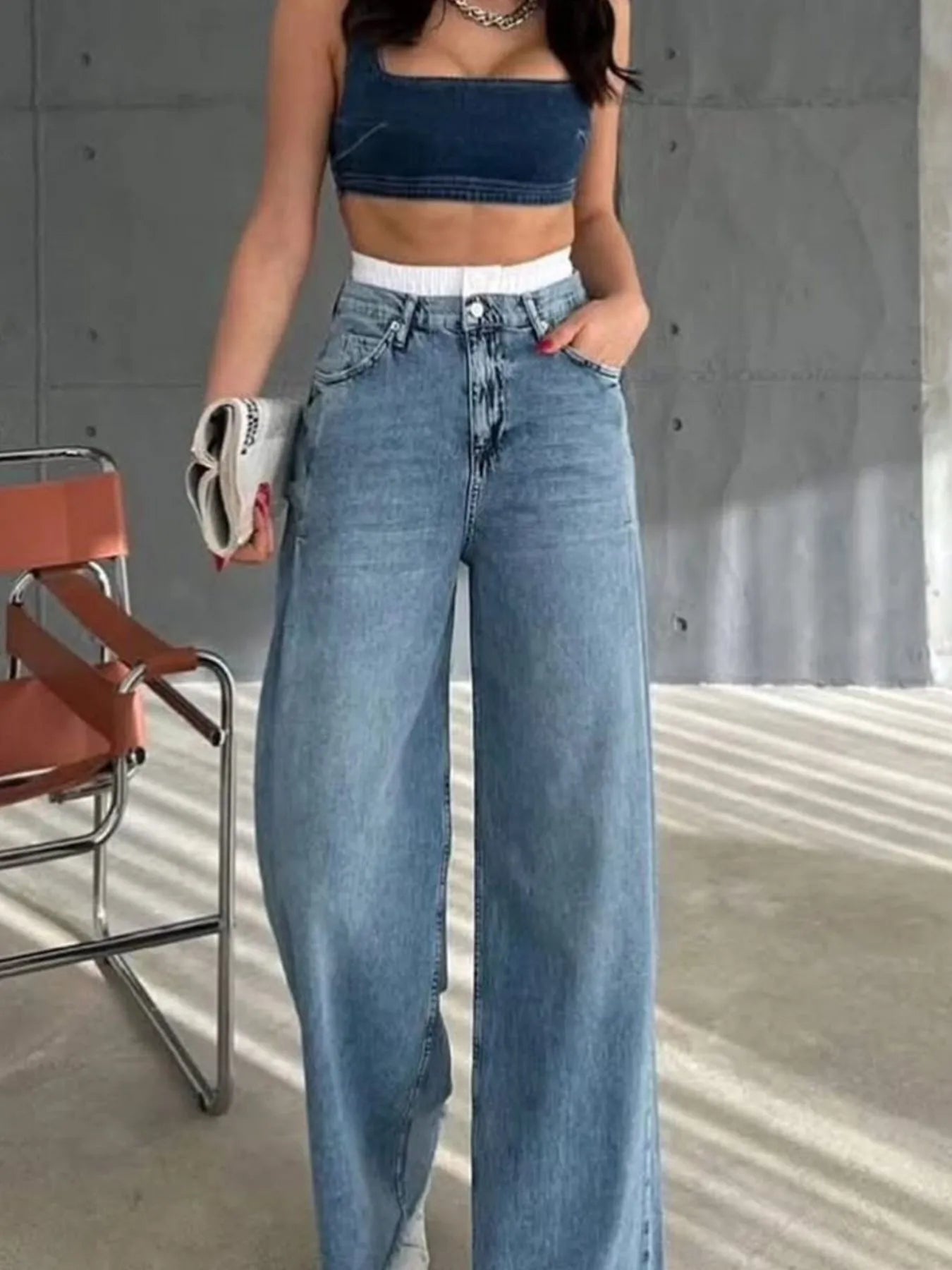High Waist Wijde Pijpen Vintage Wash Jeans