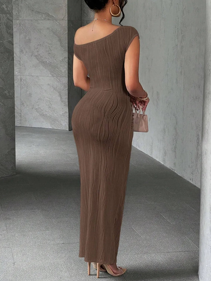 Deze veelzijdige maxi-jurk biedt een slank silhouet met een lichte stretch voor extra comfort. Gemaakt van een zachte polyester-spandex mix, combineert deze jurk moeiteloze stijl met draaggemak. Een tijdloze basic voor elke garderobe, geschikt voor zowel casual als semi-formele gelegenheden.