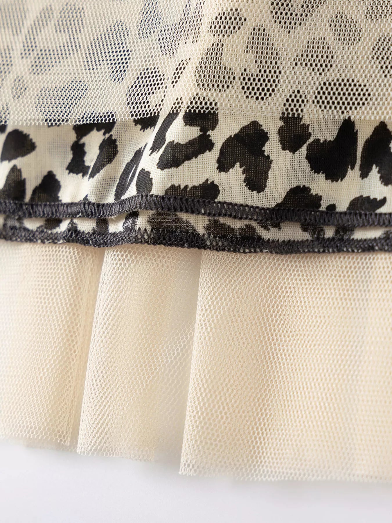 Kinder Tulle Jurk met Konijnenprint en Lange Mouwen