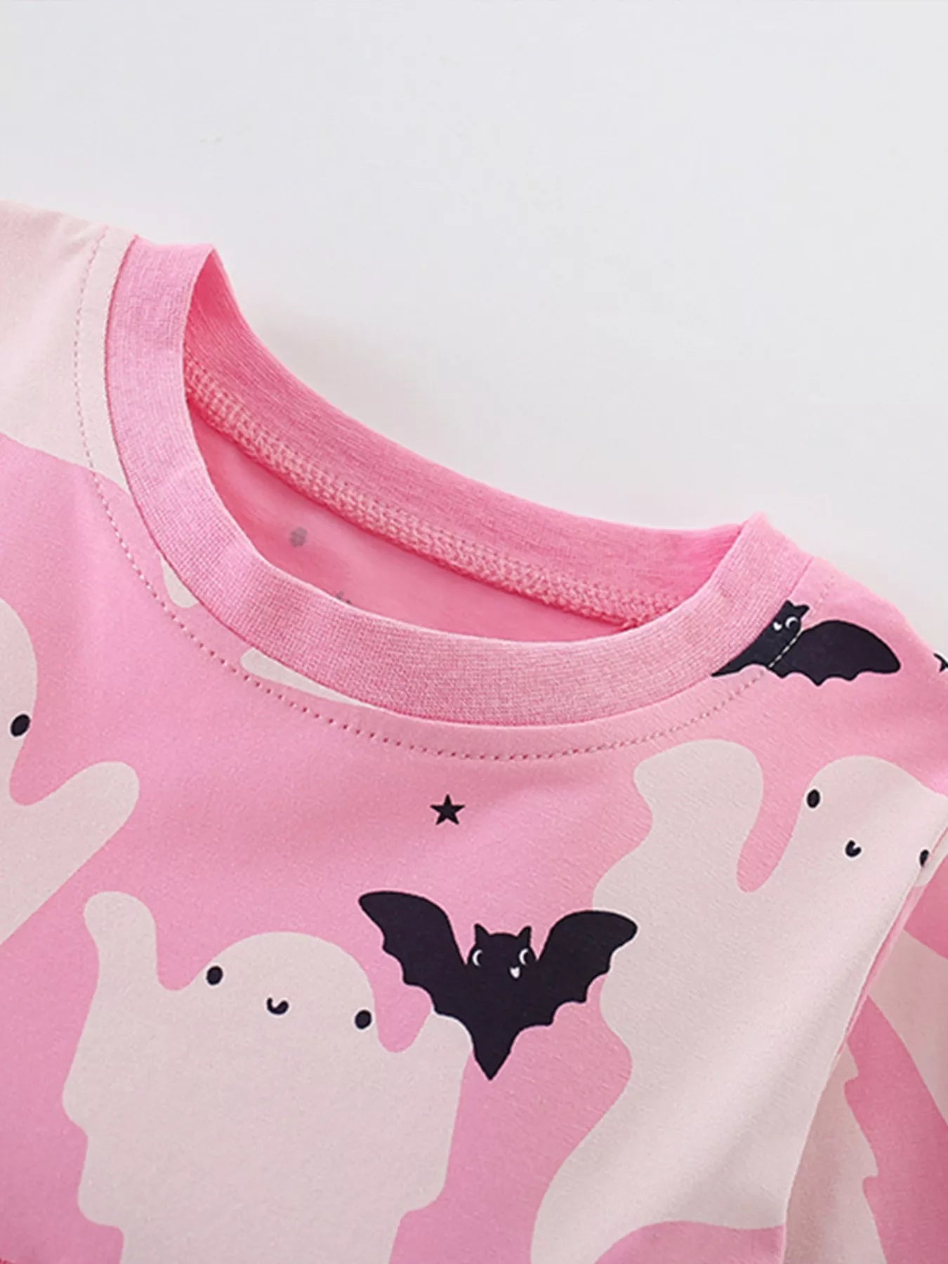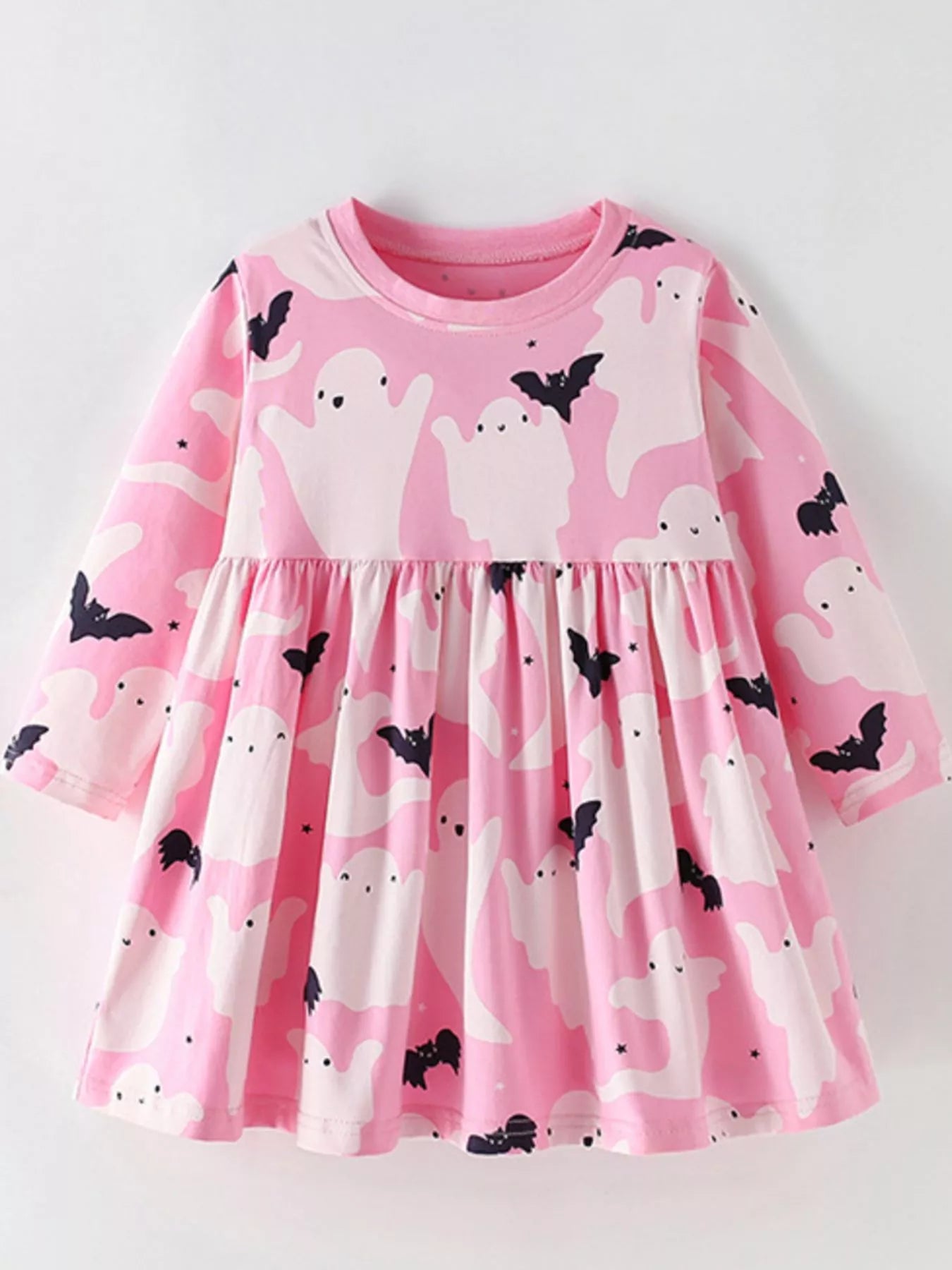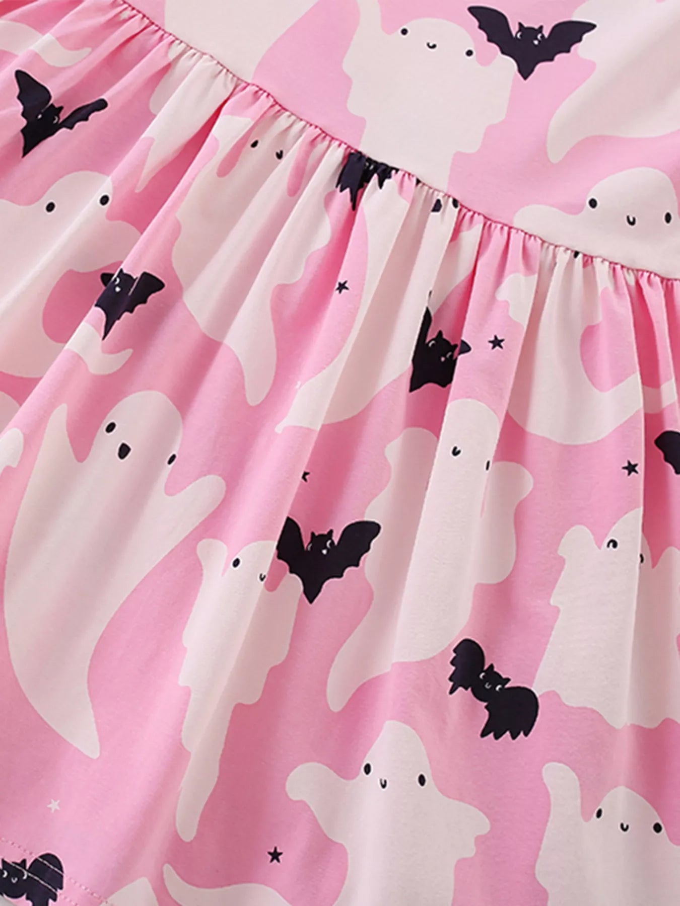 Halloween Jurk met Spook- & Vleermuisprint en Lange Mouwen voor Kinderen