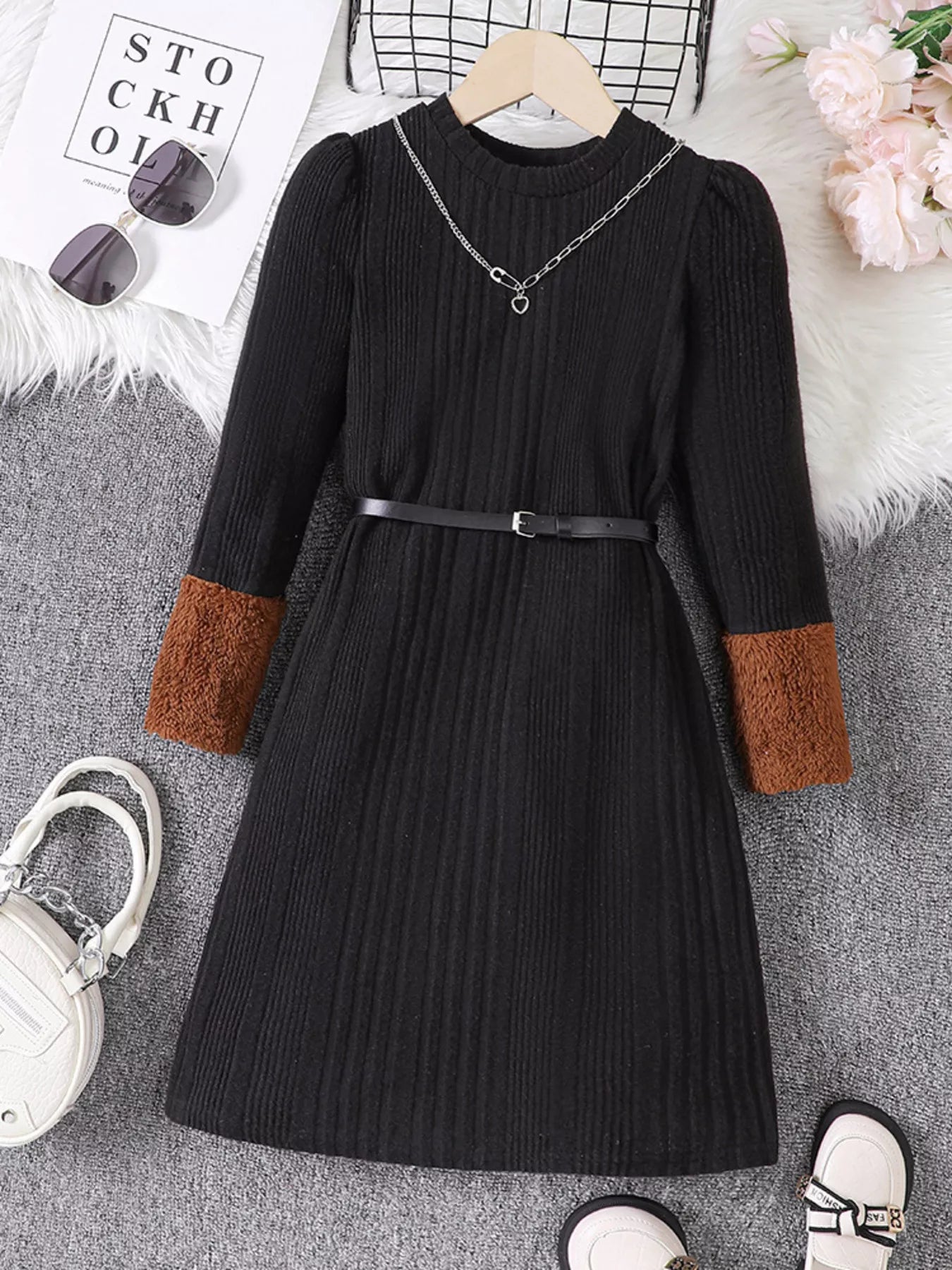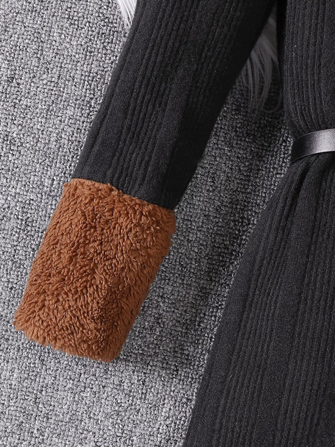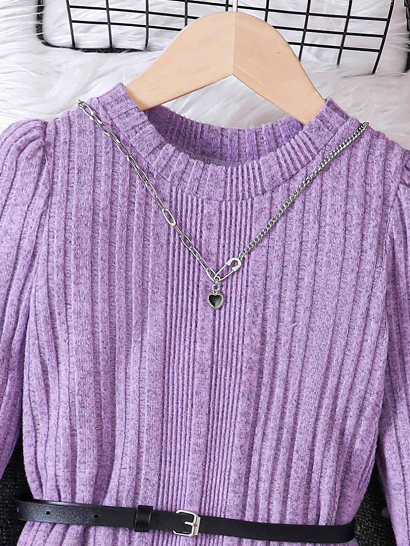 Geribde Gebreide Kinderjurk met Lange Mouwen
