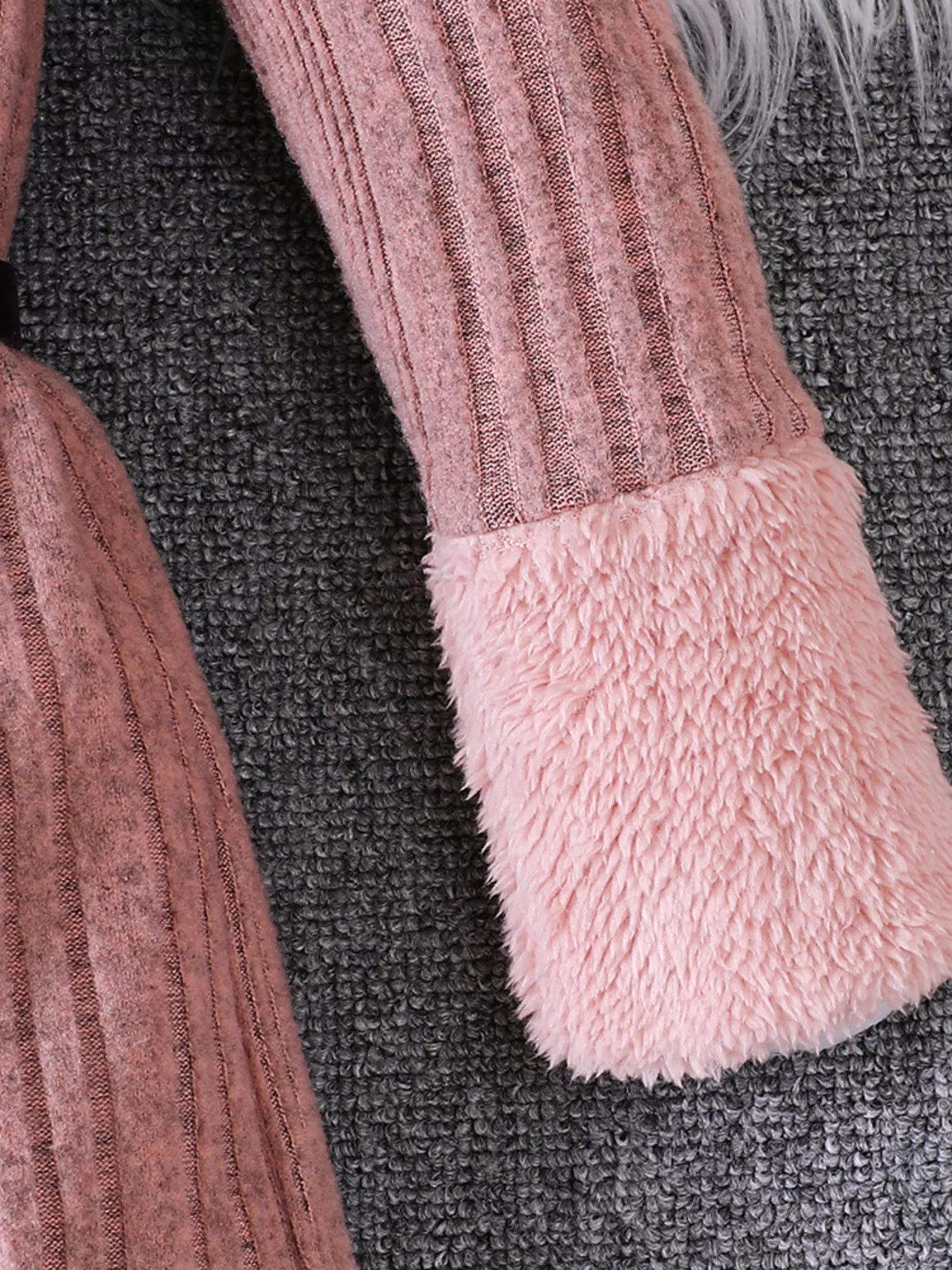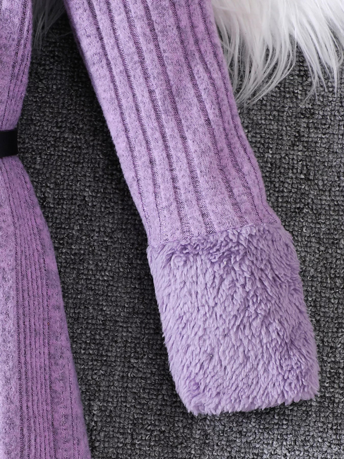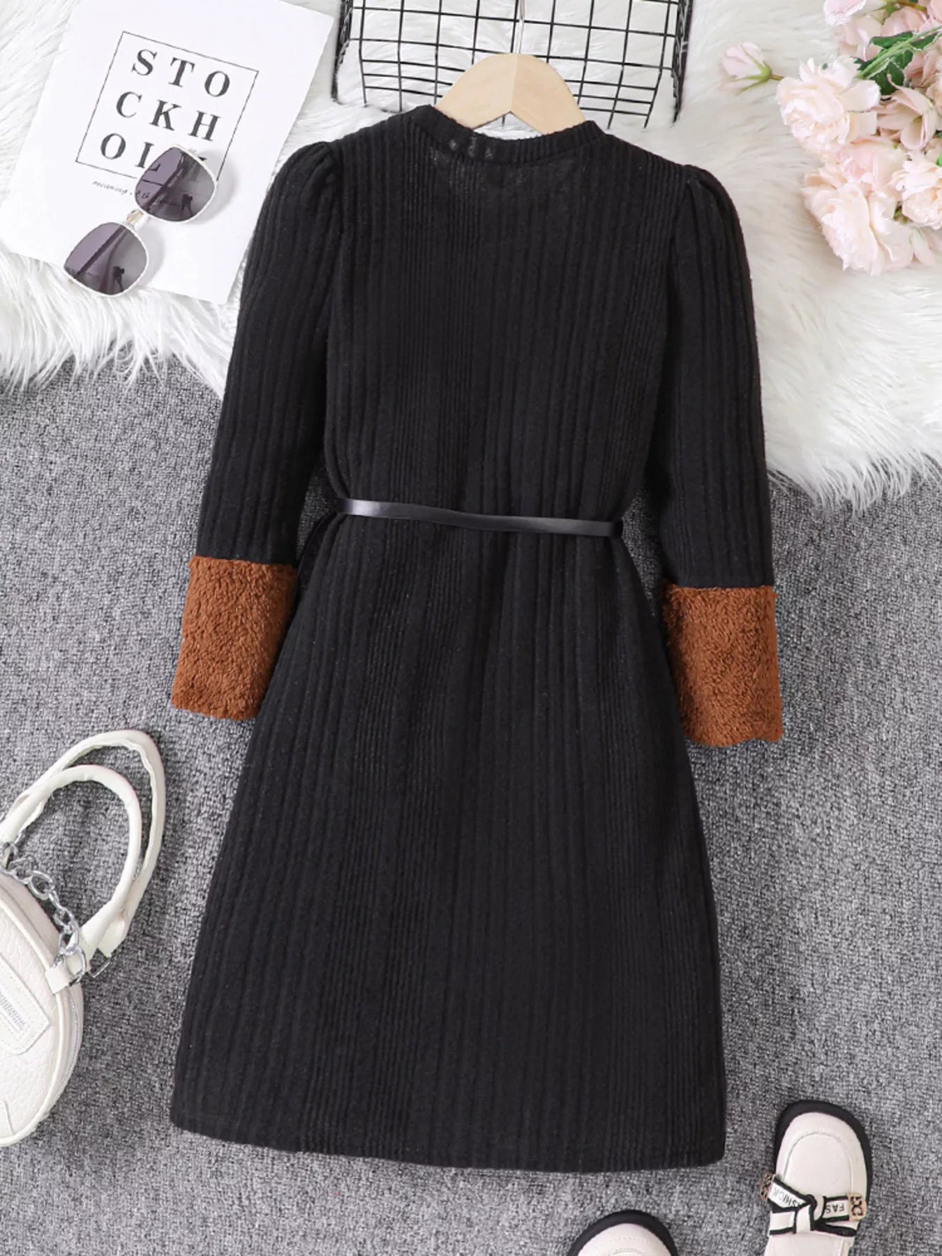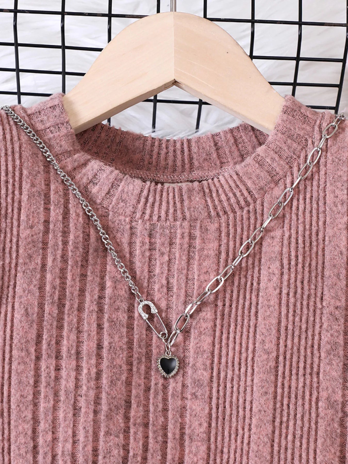 Geribde Gebreide Kinderjurk met Lange Mouwen