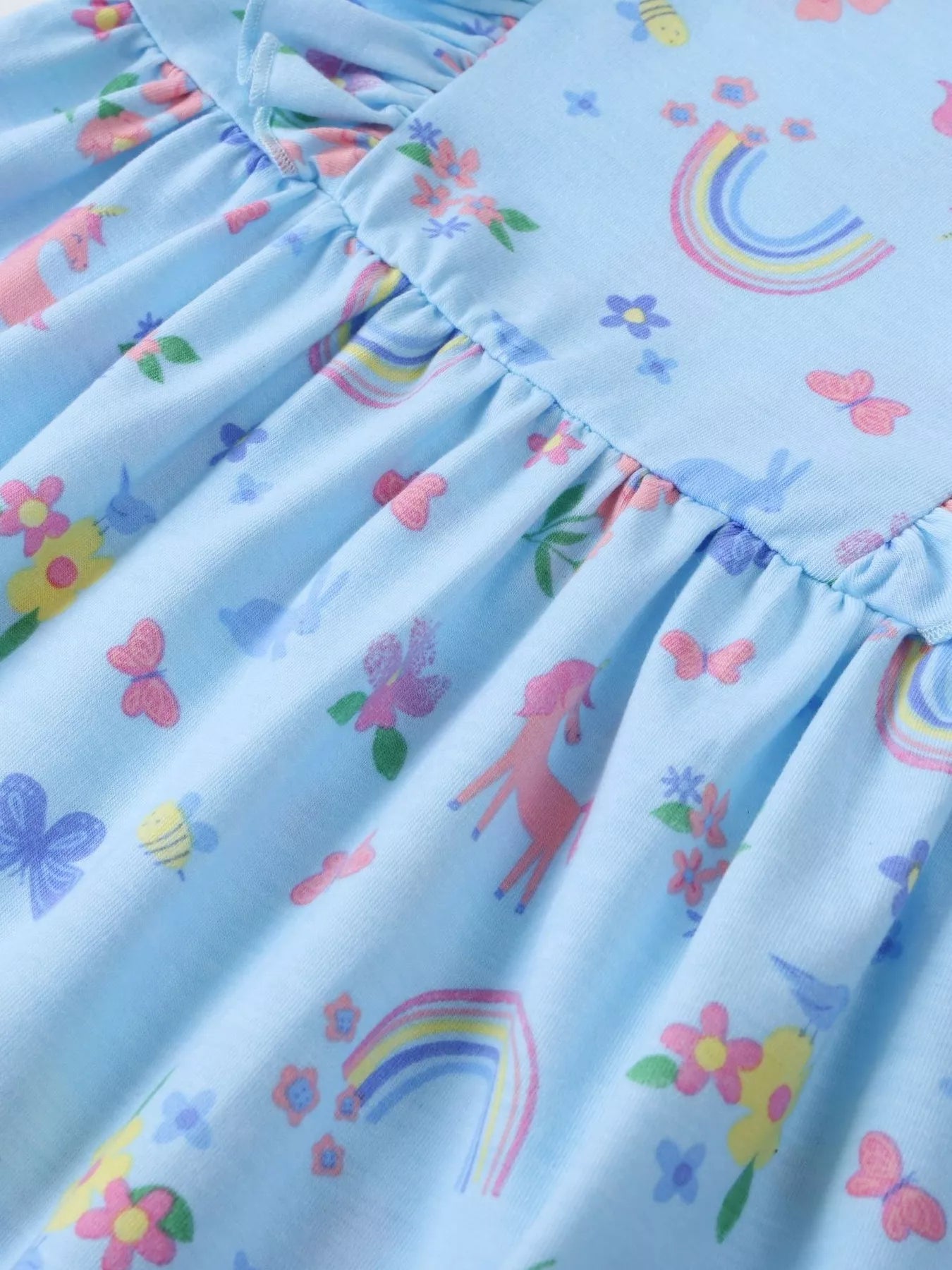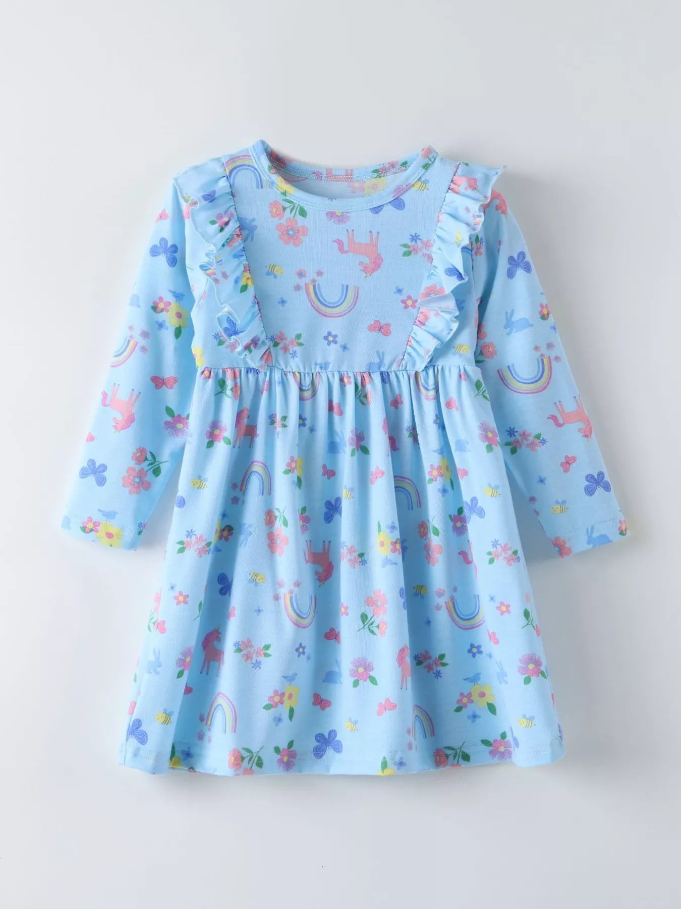 Kinderen Unicorn Regenboogprint Ruches Lange Mouwen Jurk
