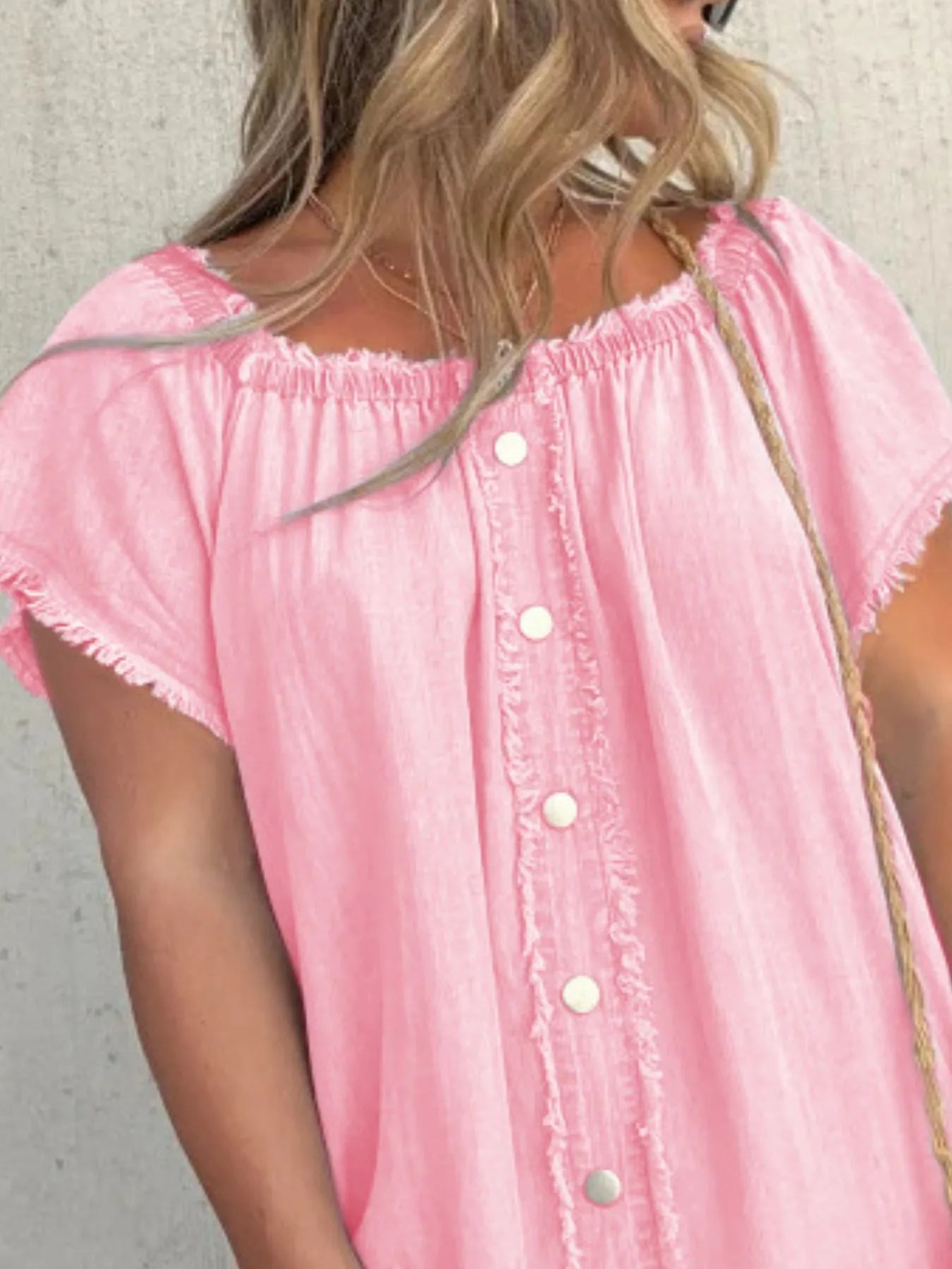 Full Size Spijkerjurk met Rafelzoom en Knopen