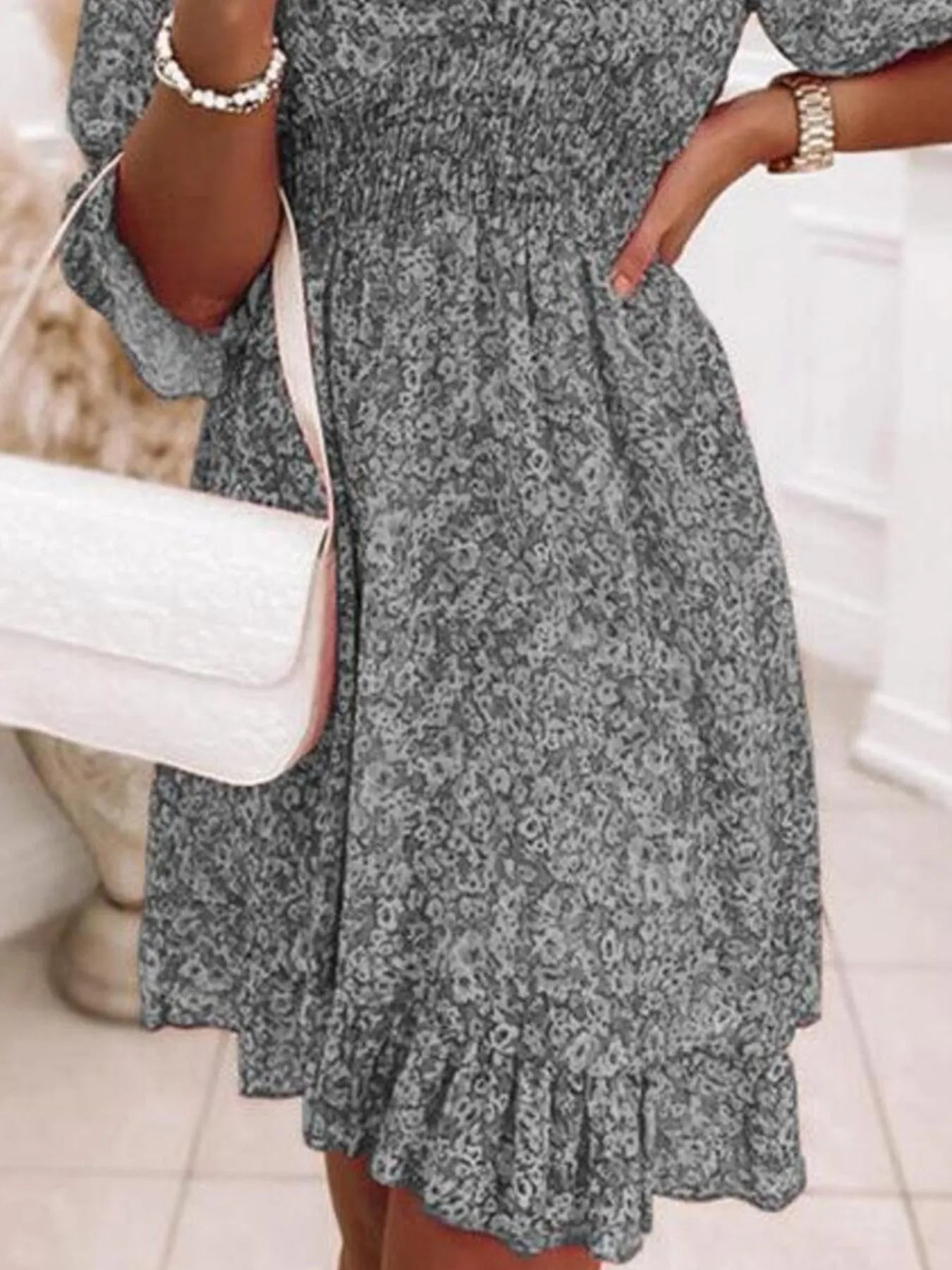 Deze charmante mini-jurk heeft gelaagde lagen, speelse ruches en een gesmockte buste voor een flatterende en comfortabele pasvorm. De licht rekbare polyester stof zorgt voor bewegingsvrijheid en een vrouwelijk silhouet, perfect voor casual uitstapjes, brunches en zomerse gelegenheden.