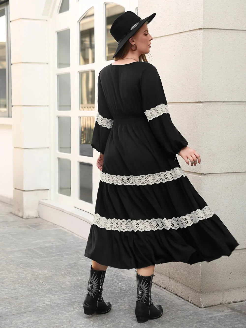 Plus Size Midi Jurk met Kantdetails en V-hals
