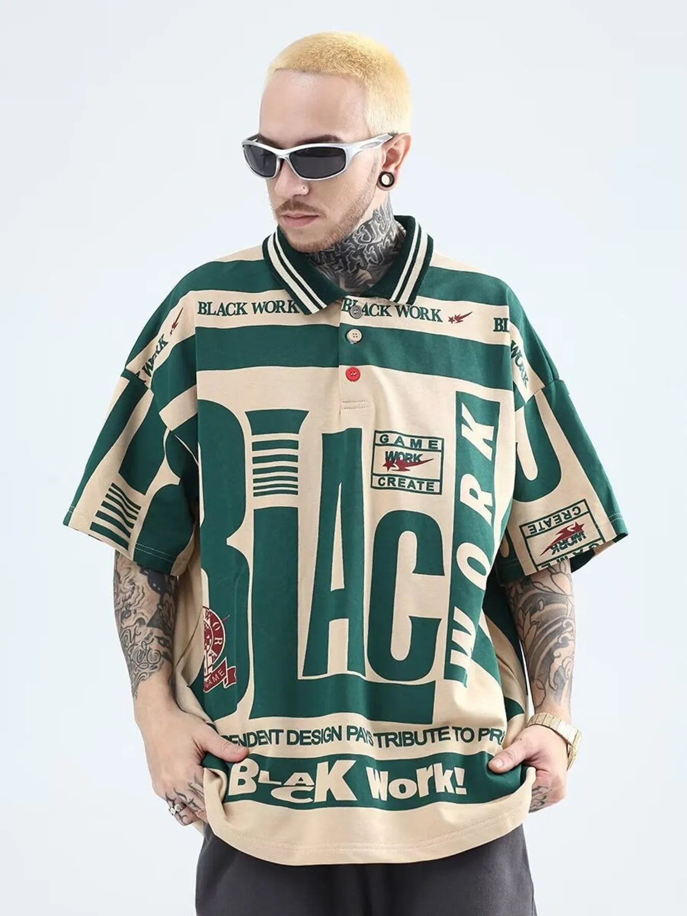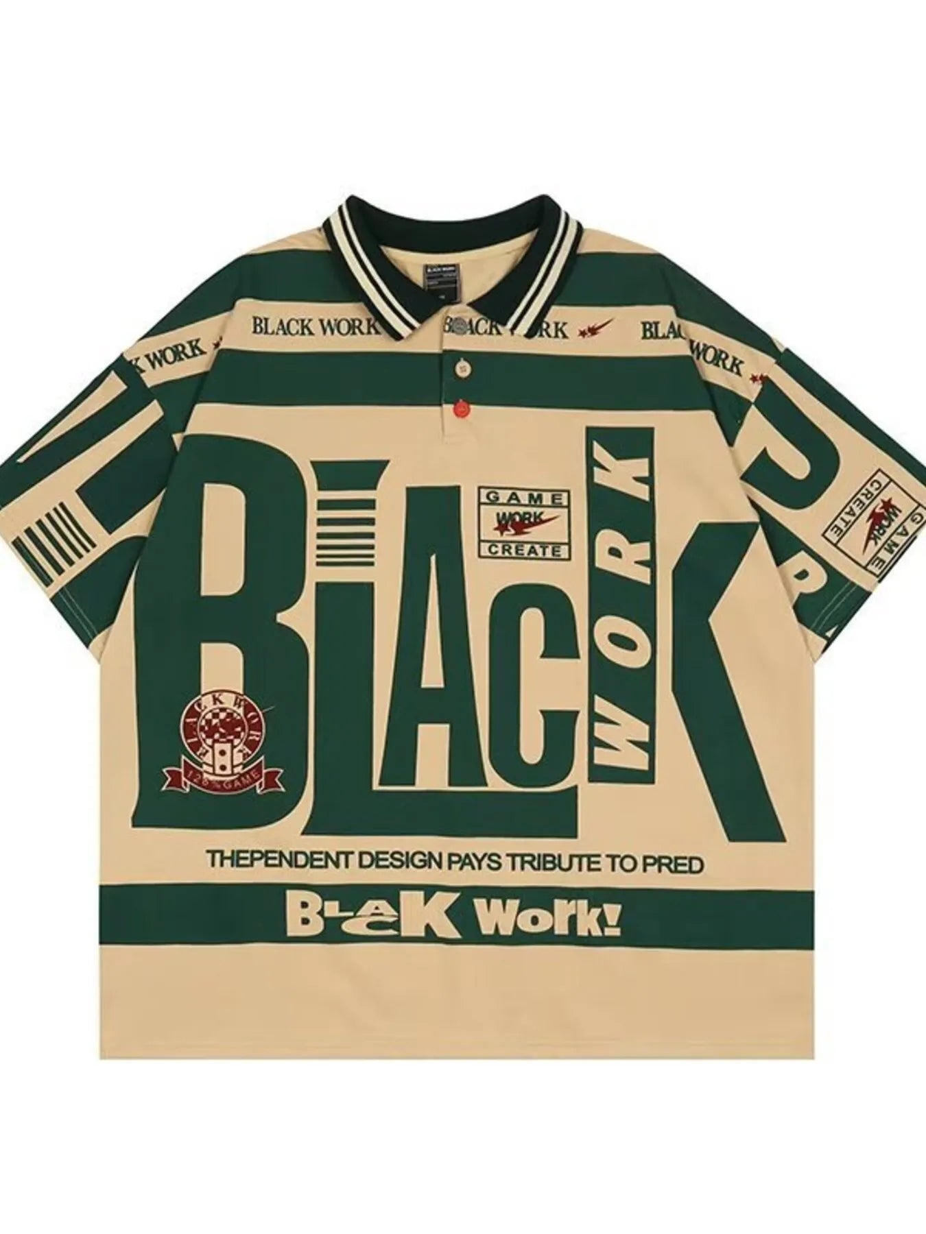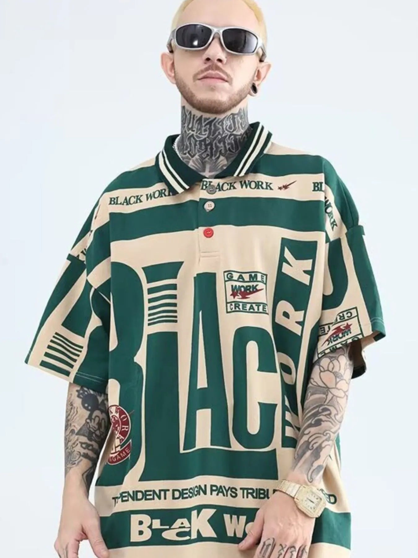 Herenpolo Plus Size met Letterprint en Halve Mouwen