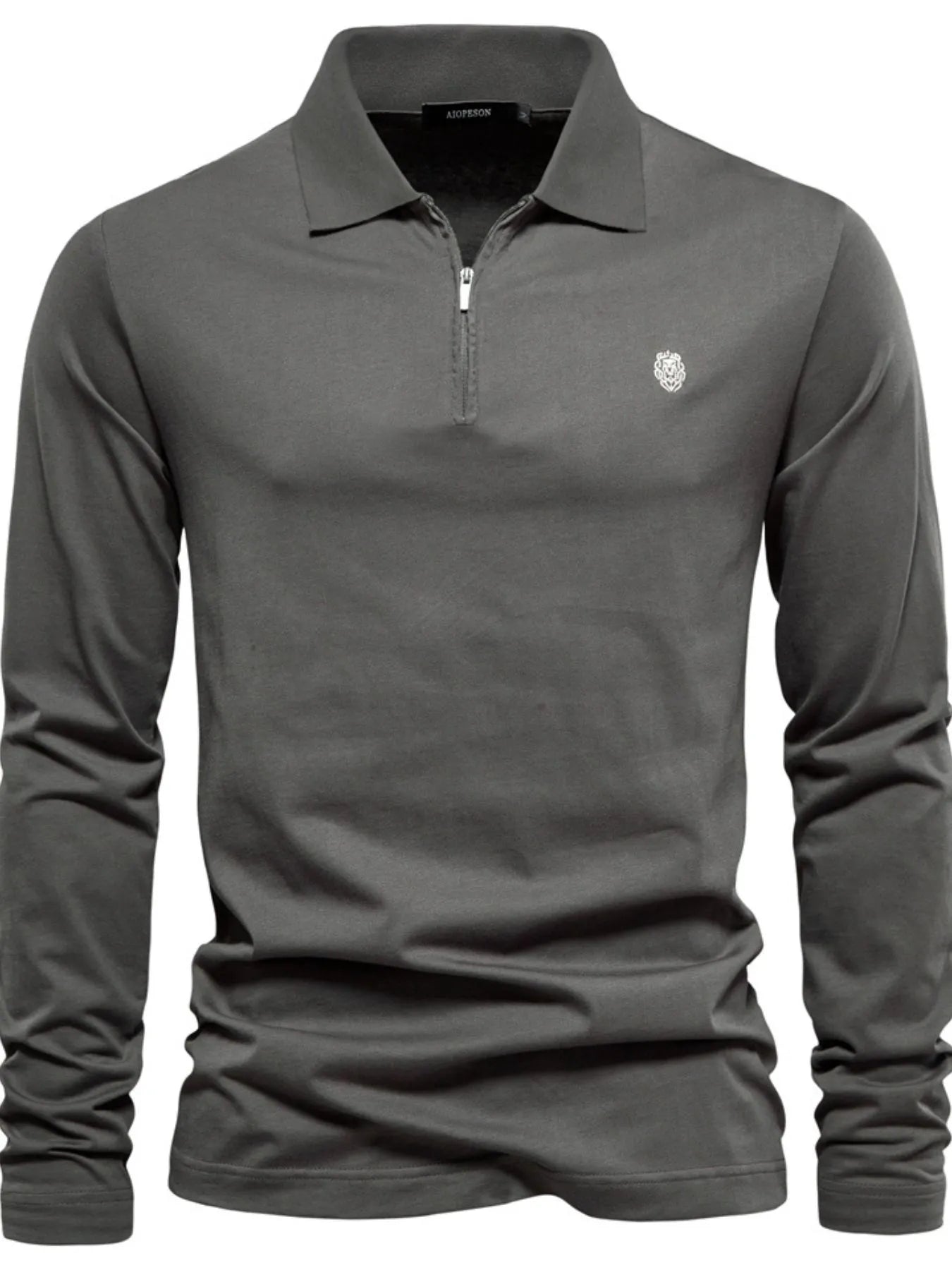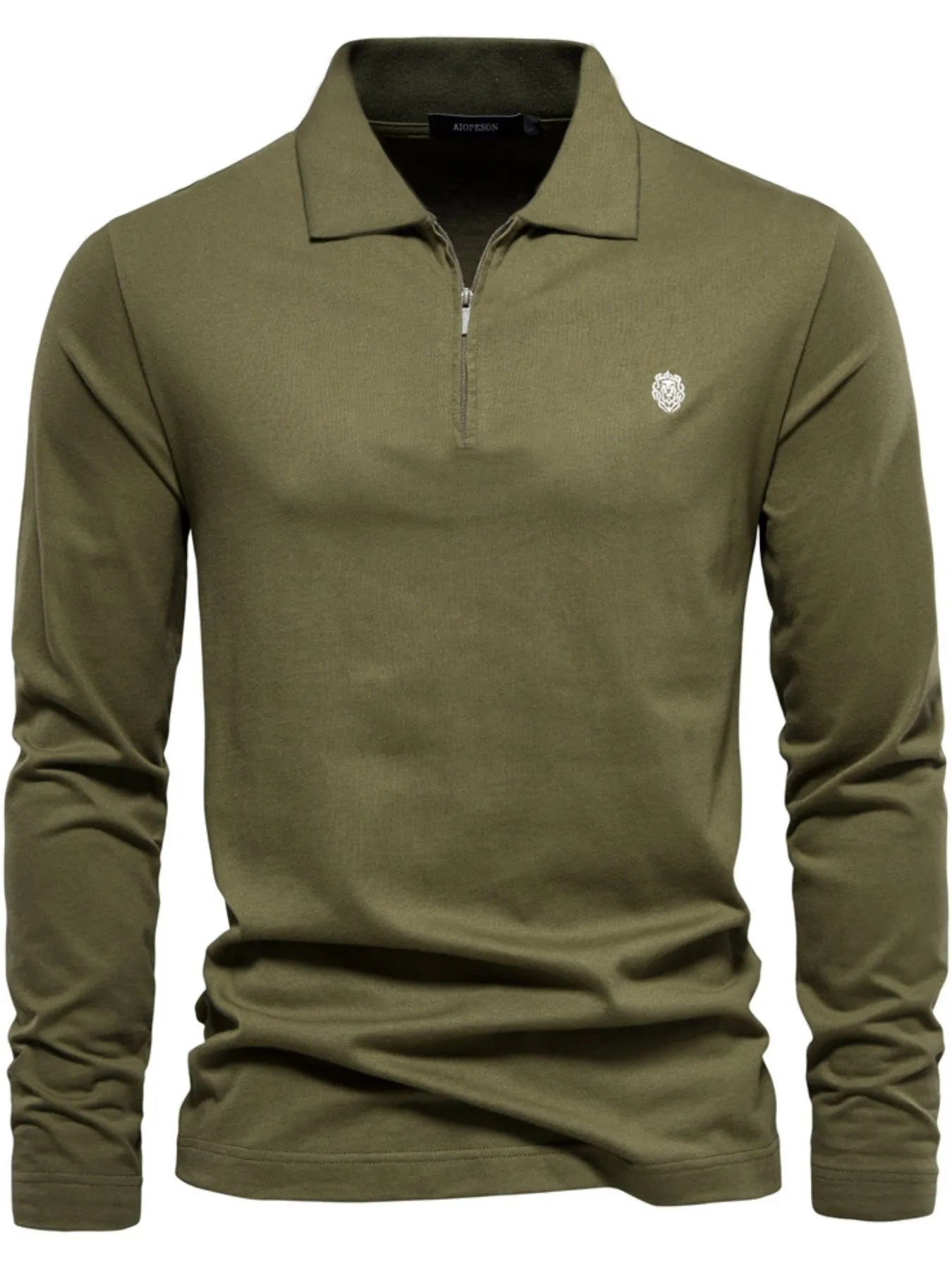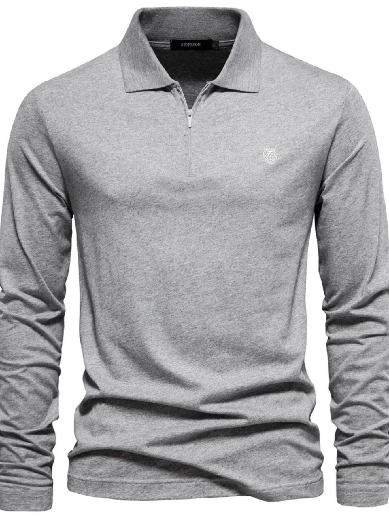 Deze ademende en lichtgewicht katoenen polo biedt tijdloos comfort en moeiteloze stijl. Met een ritssluiting aan de voorkant en een licht rekbare pasvorm is het ideaal voor warme dagen of een relaxte casual look.