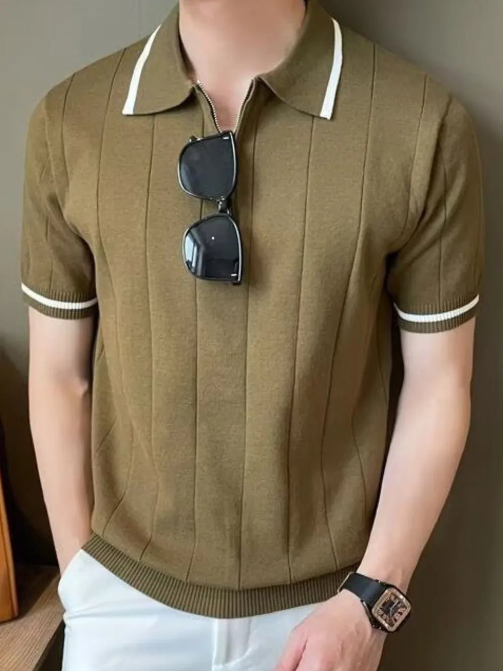 Heren Plus Size Quarter Zip Poloshirt met Korte Mouwen