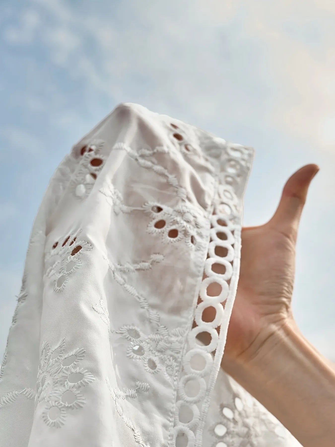 • Kenmerken: Strikdetail, Geborduurd, Eyelet-patroon