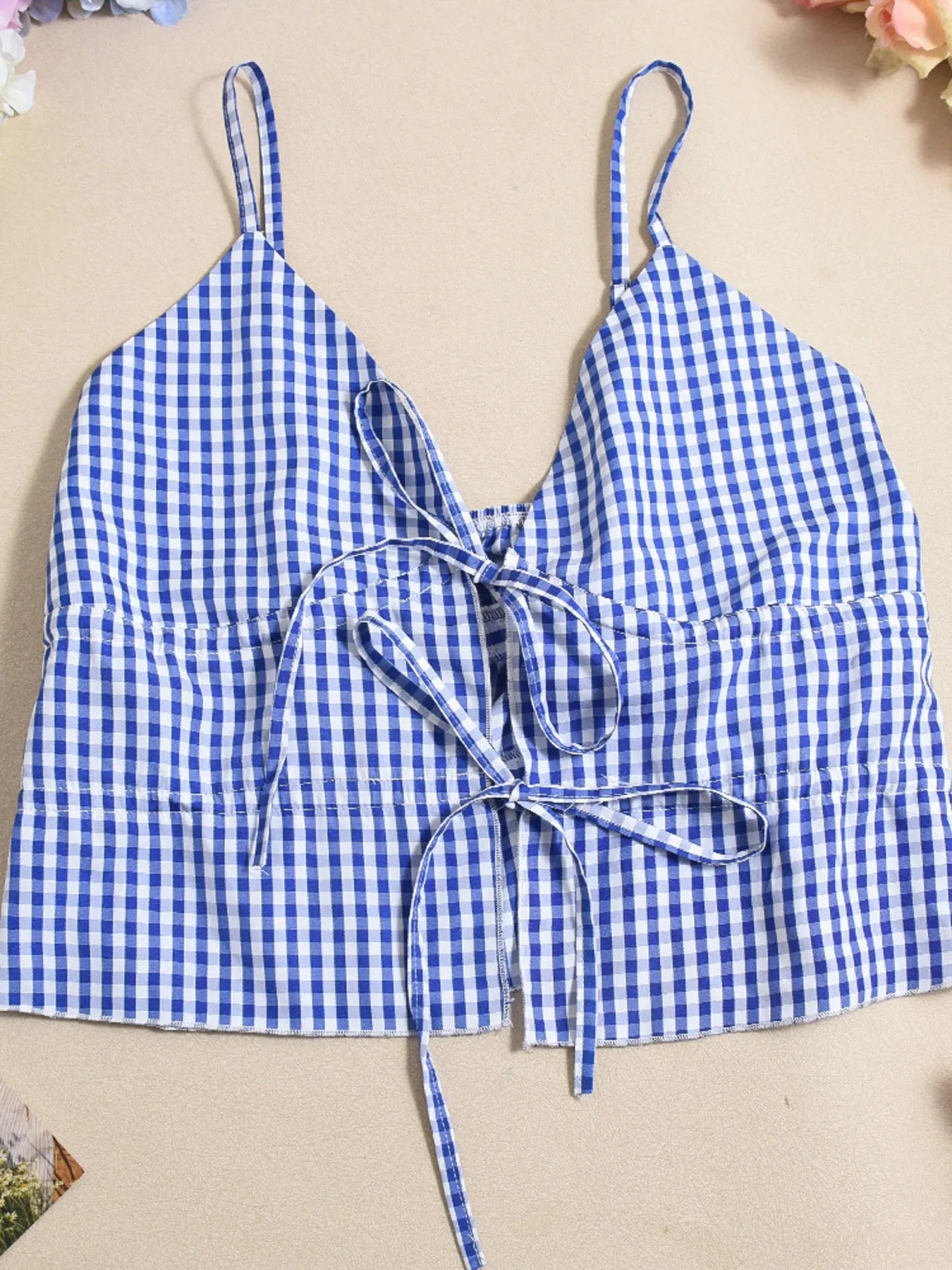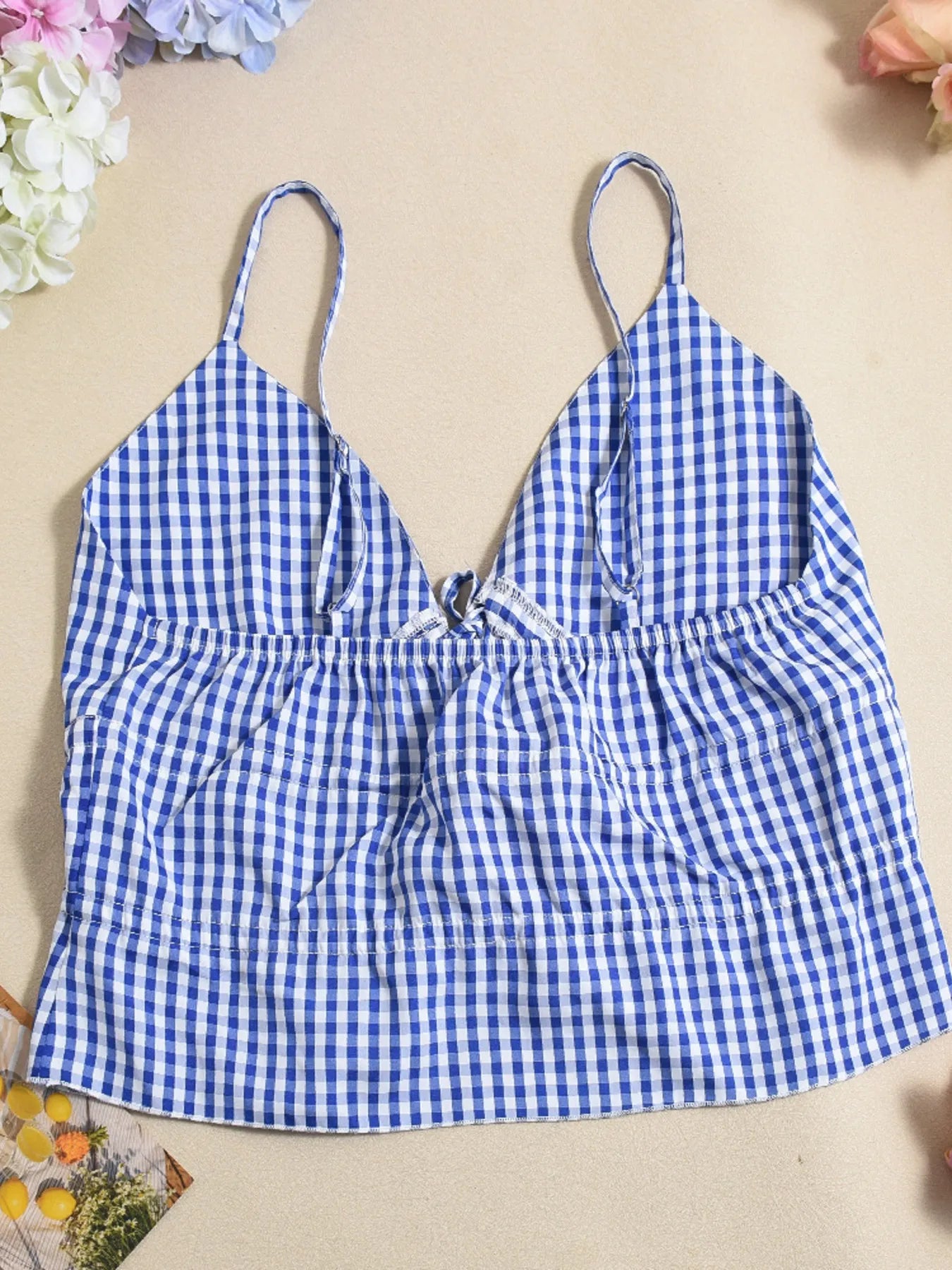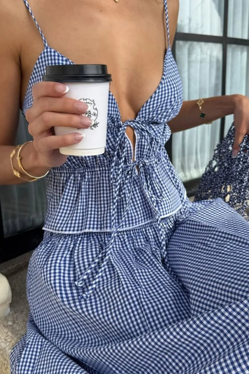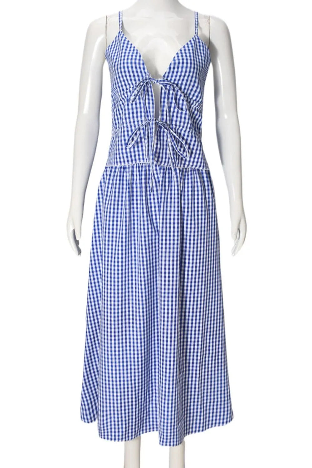 Geruite Top met Strik en Rok Tweedelige Set