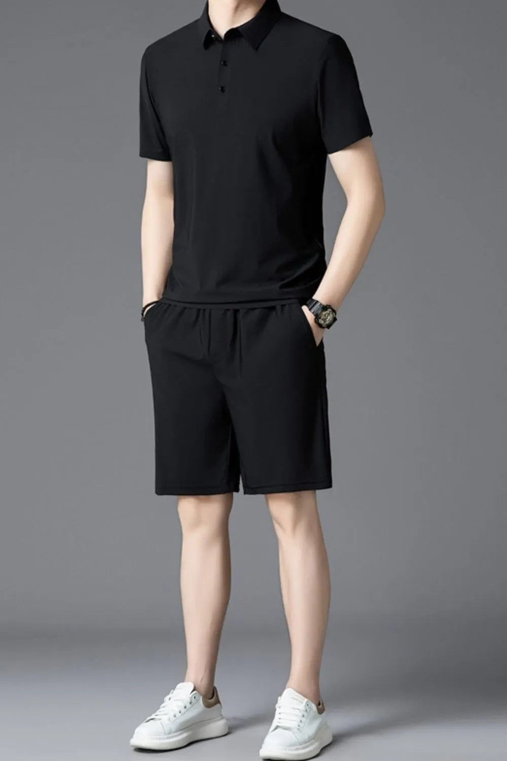 Heren Plus Size Poloshirt en Shorts Set met Korte Mouwen