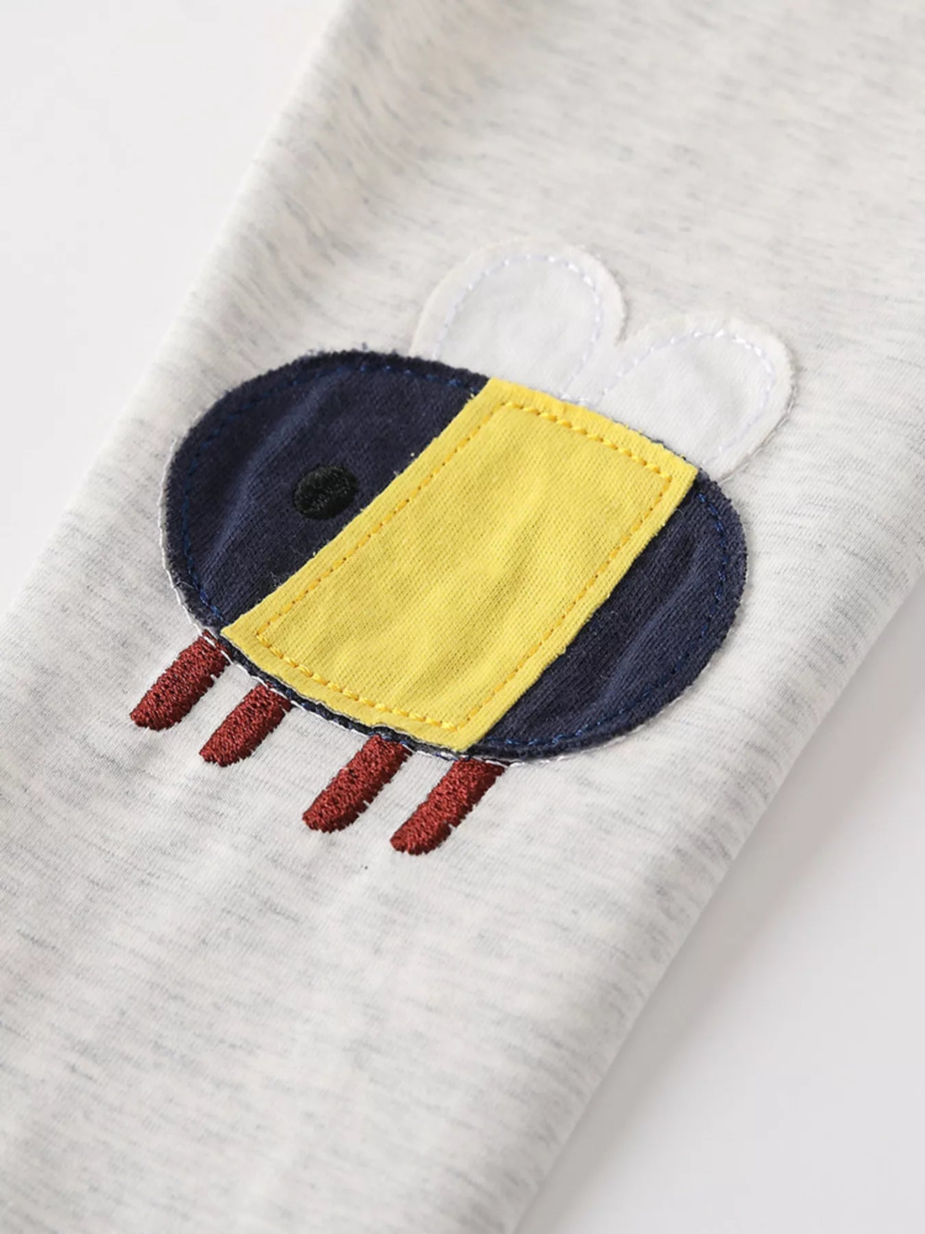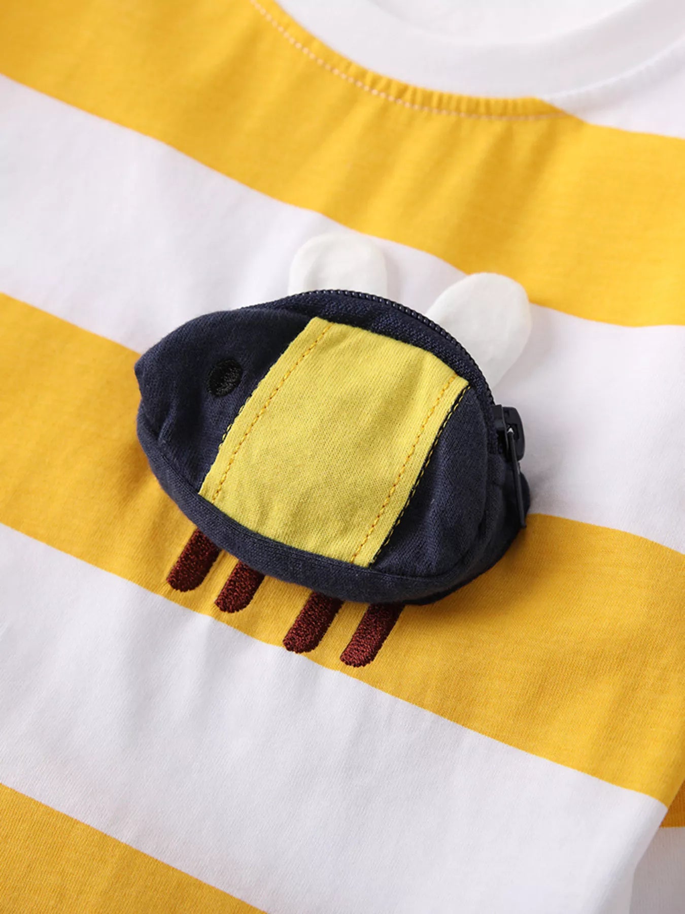 Een comfortabele tweedelige set met een gestreepte top en bijpassende broek. Afgewerkt met een leuke appliqué voor een speelse look—perfect voor elke dag.