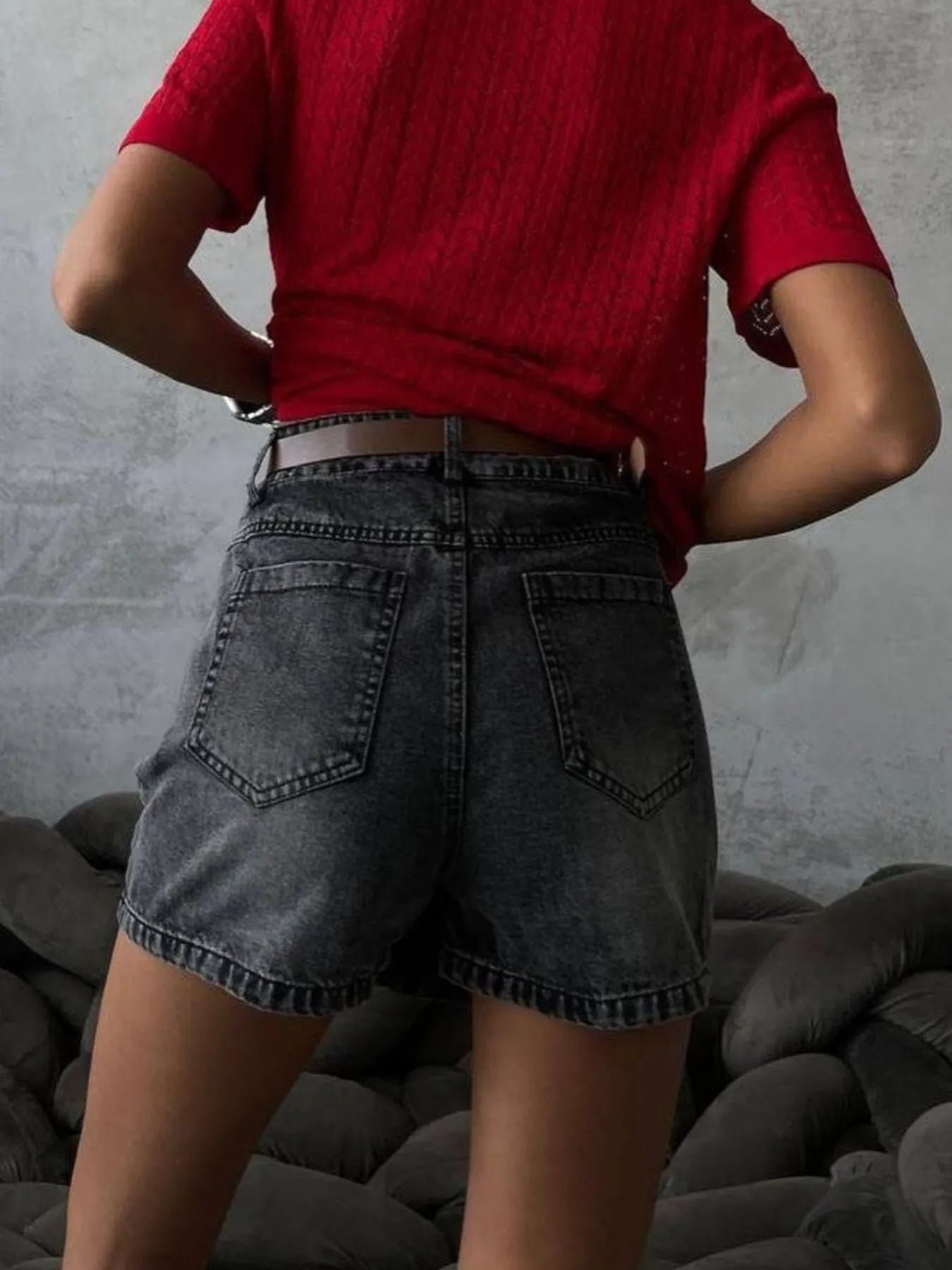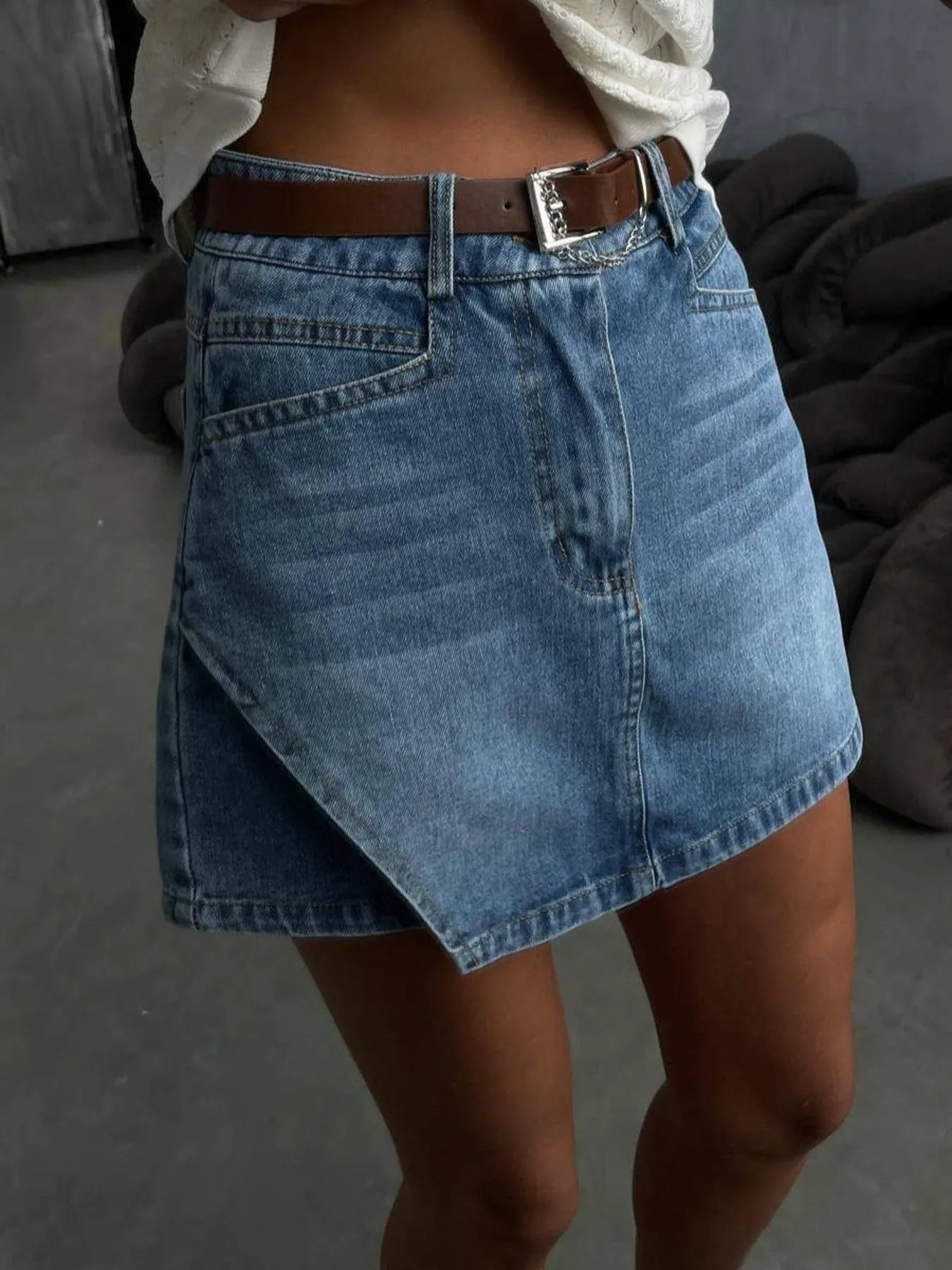 Asymmetrische Hoge Taille Denim Mini Shorts