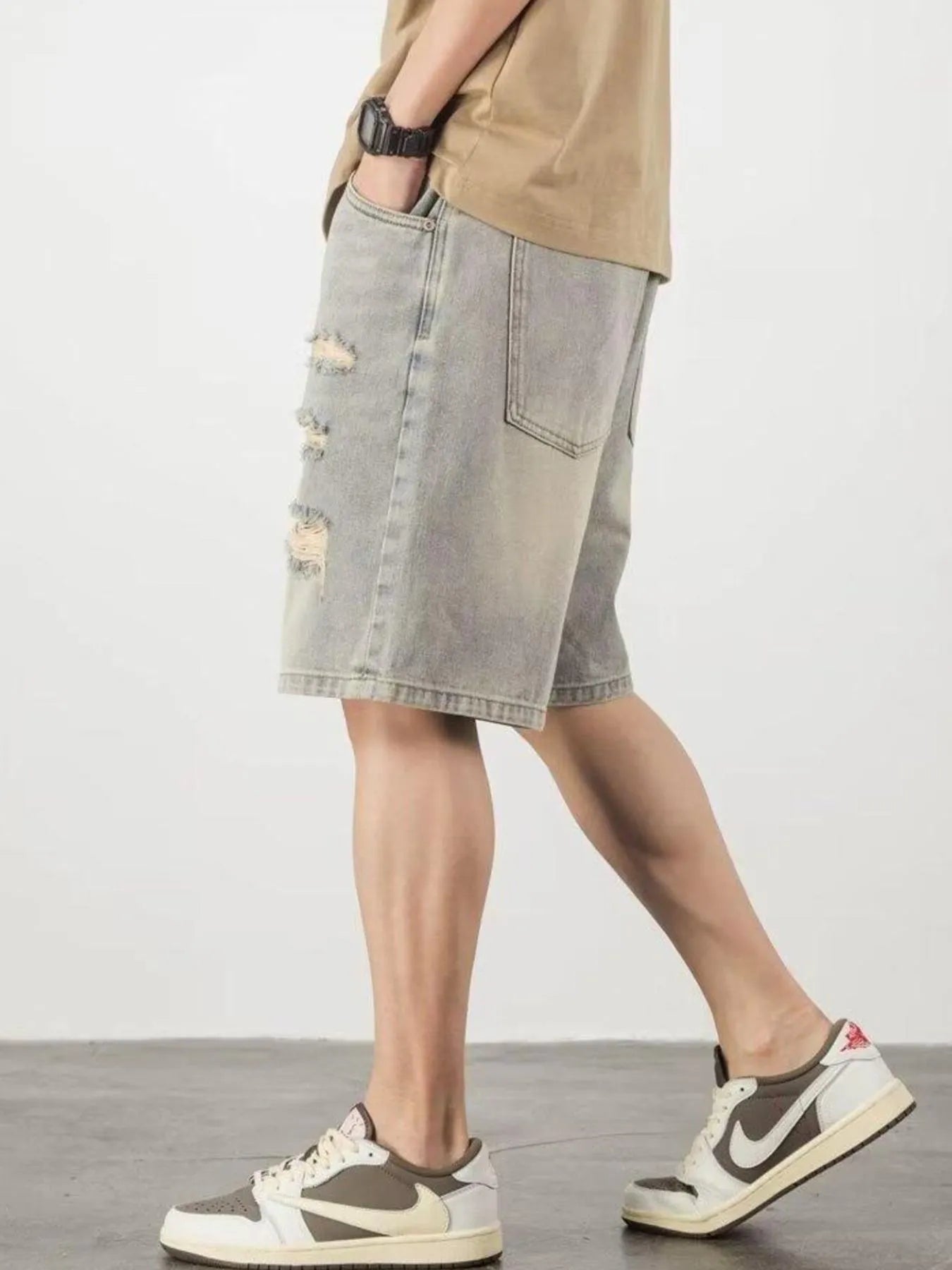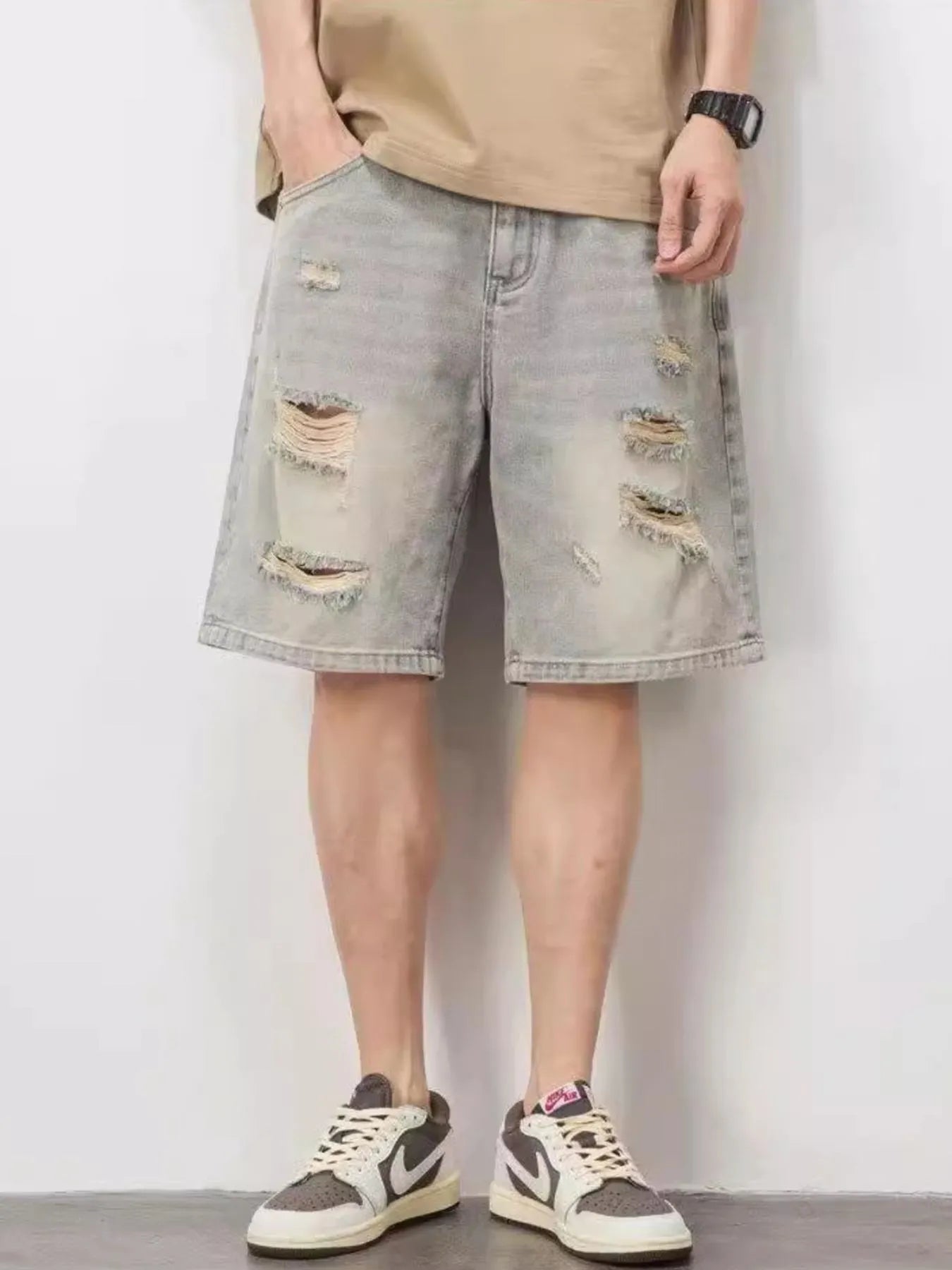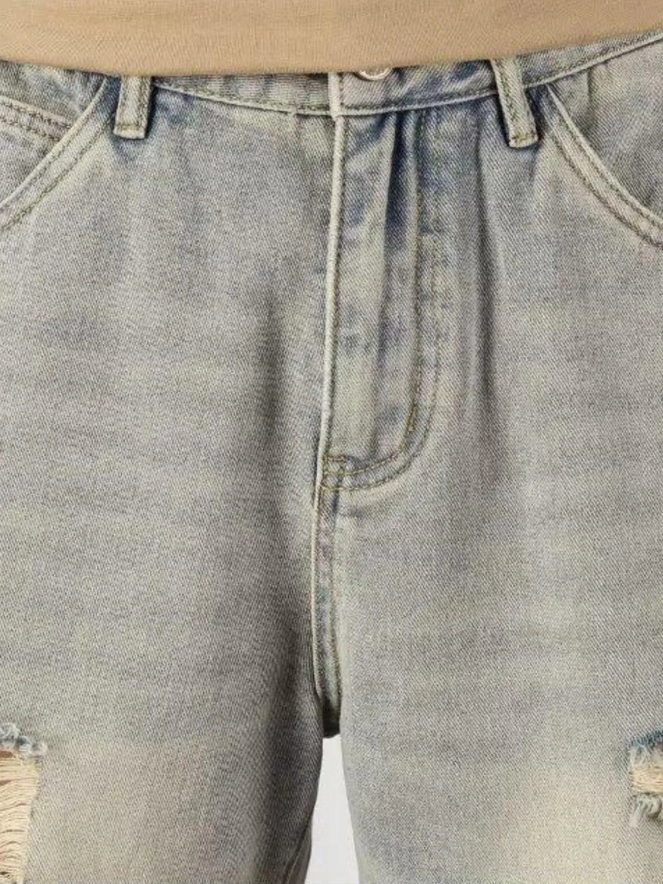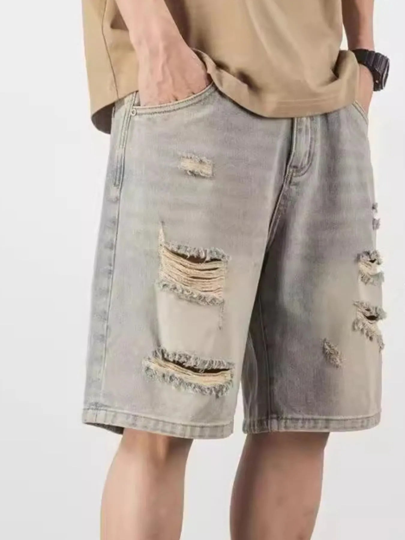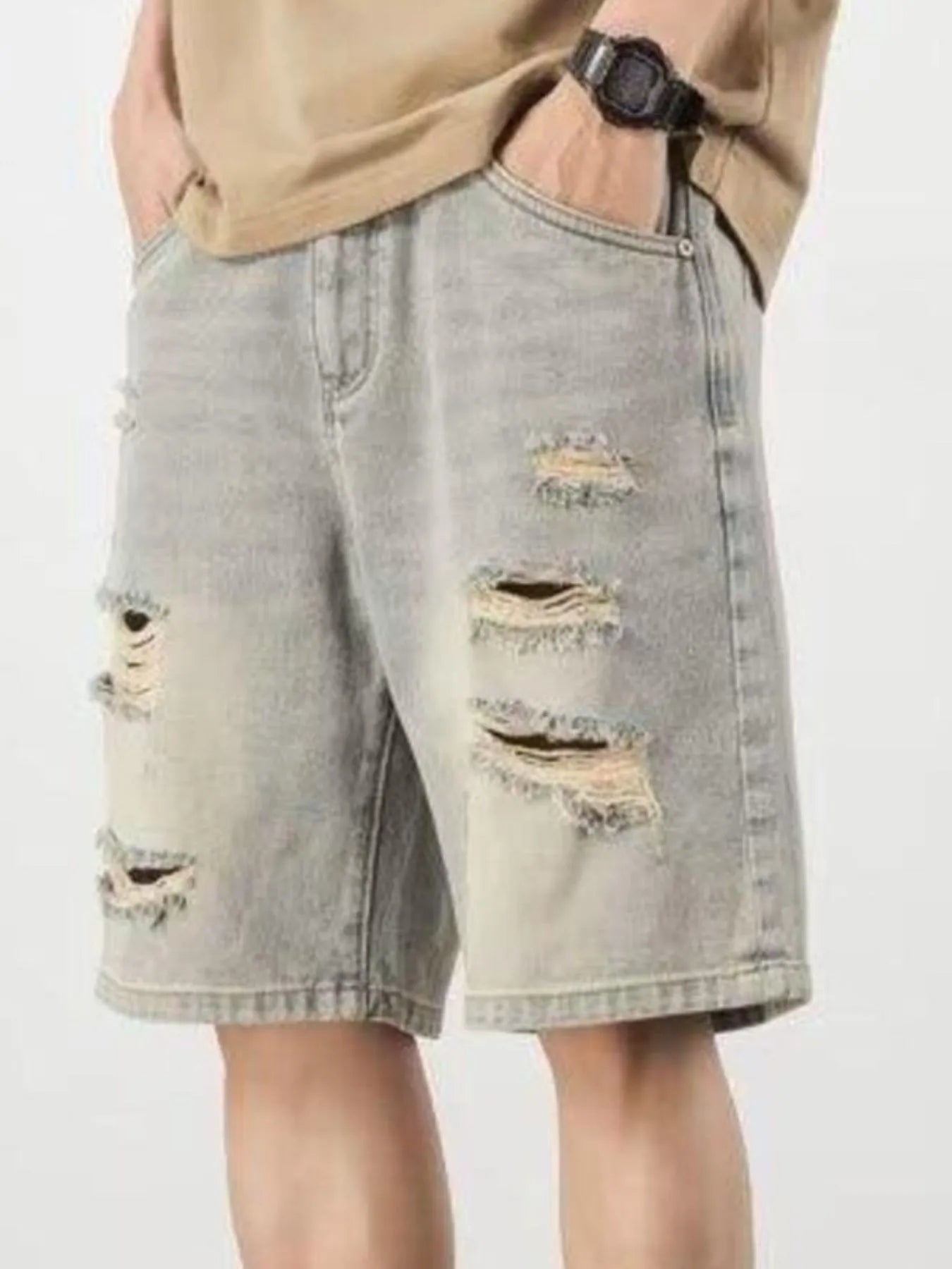 Heren Plus Size Denim Shorts met Beschadigde Look