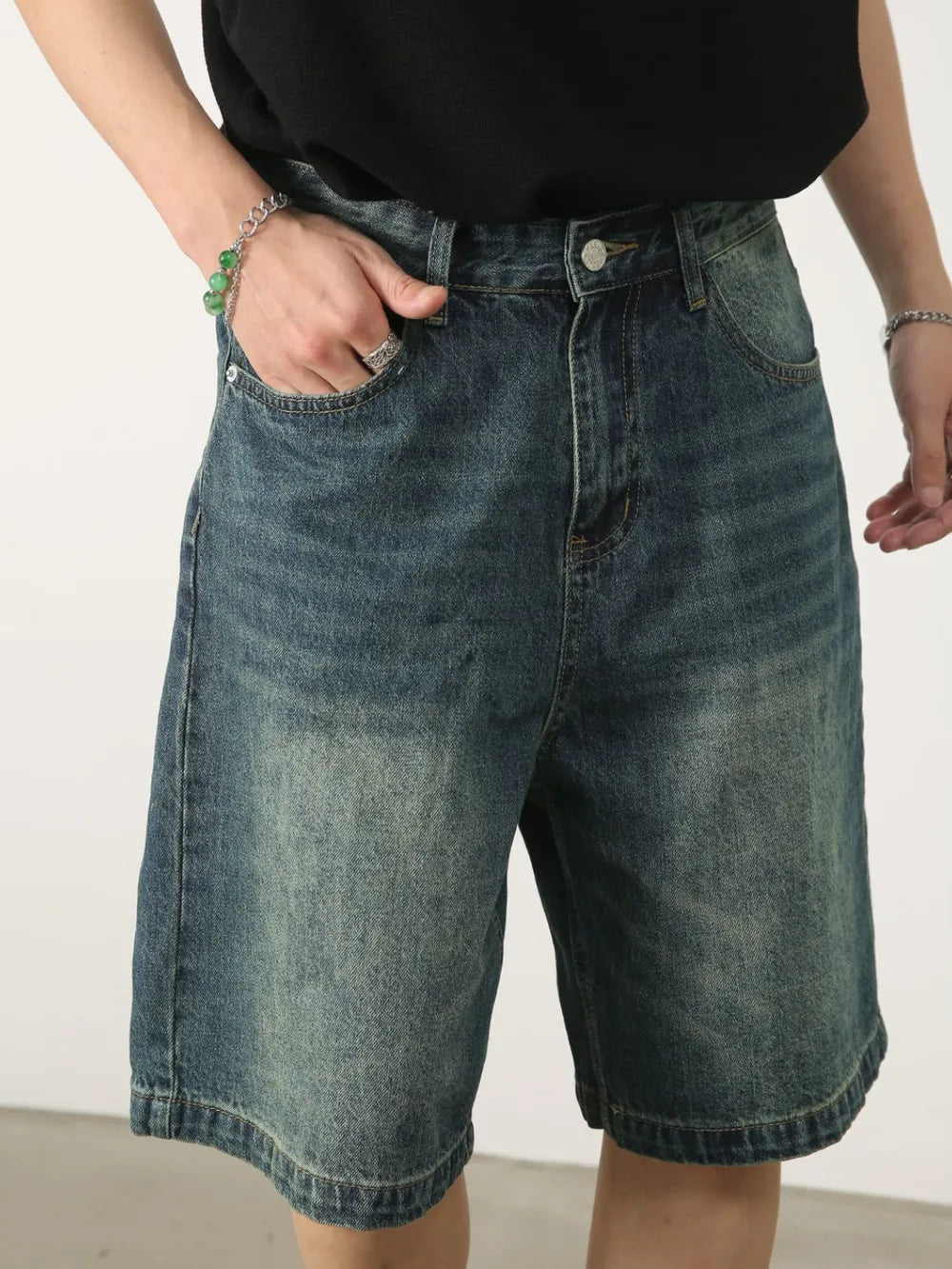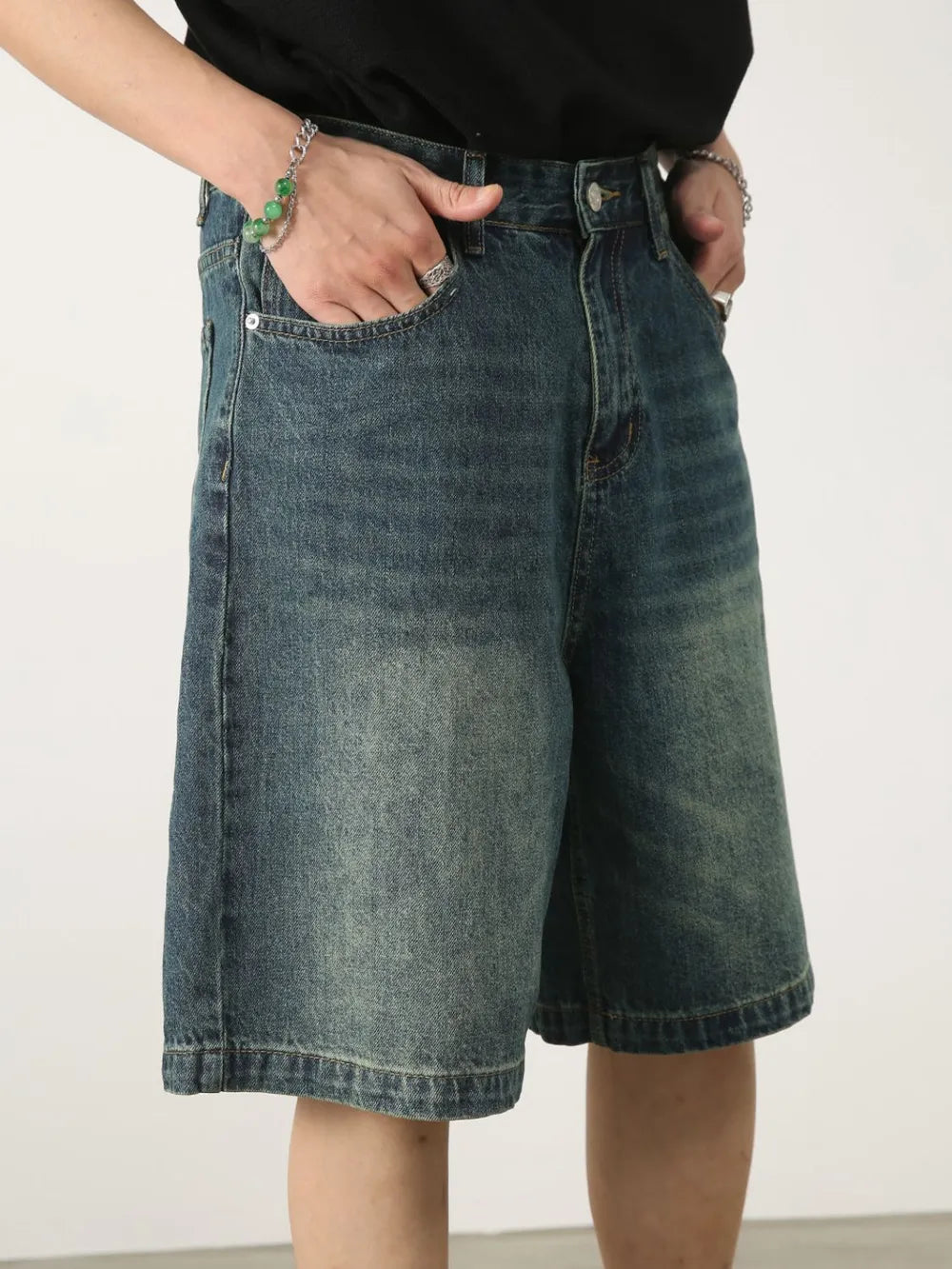 Heren Gewassen Denim Shorts met Zakken