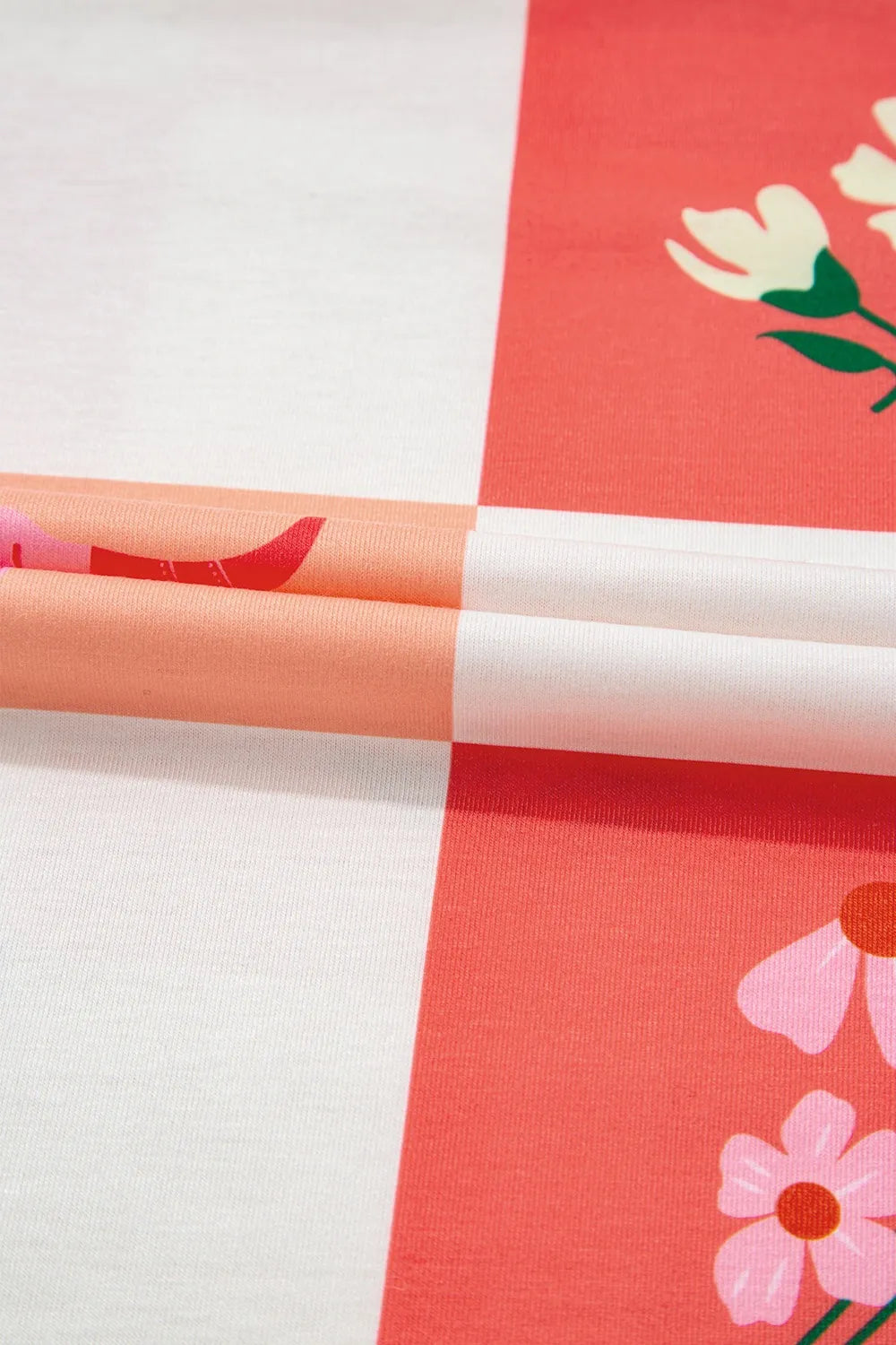 Geruite Top met Ronde Hals en Korte Mouwen