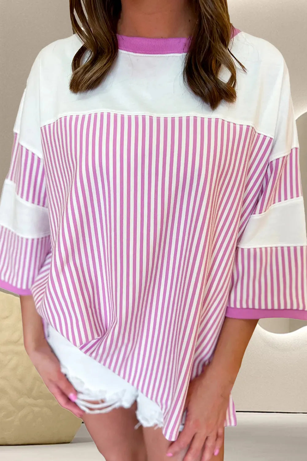 Gestreepte Top met Ronde Hals en Driekwartmouwen