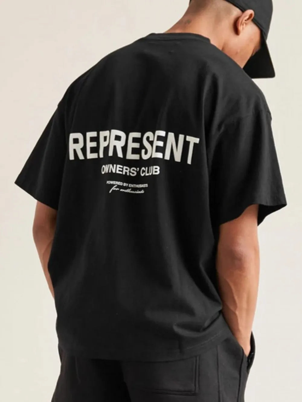 Heren Plus Size Ronde Hals T-shirt met Letters en Halve Mouw