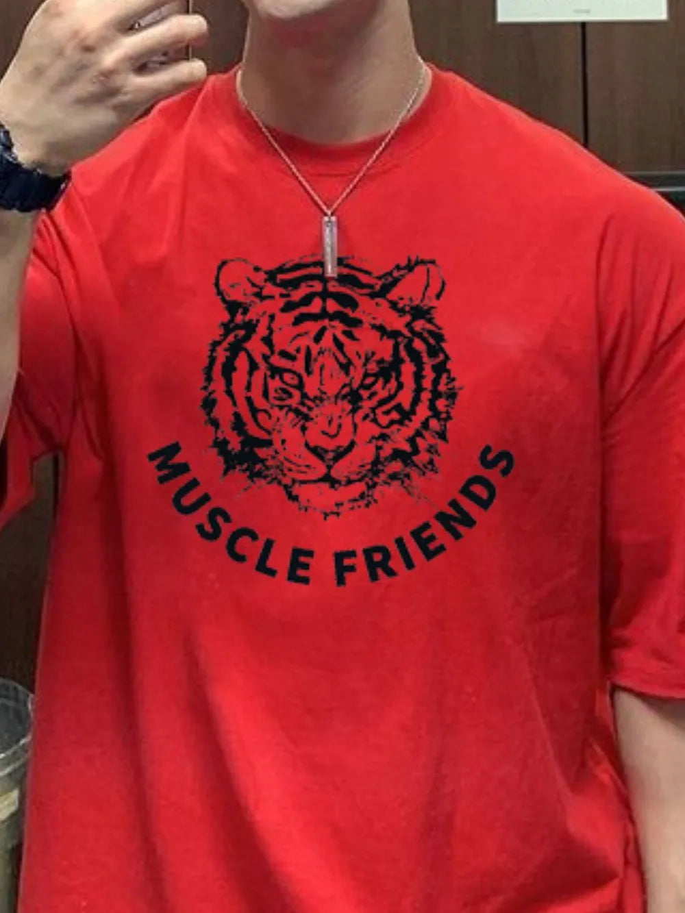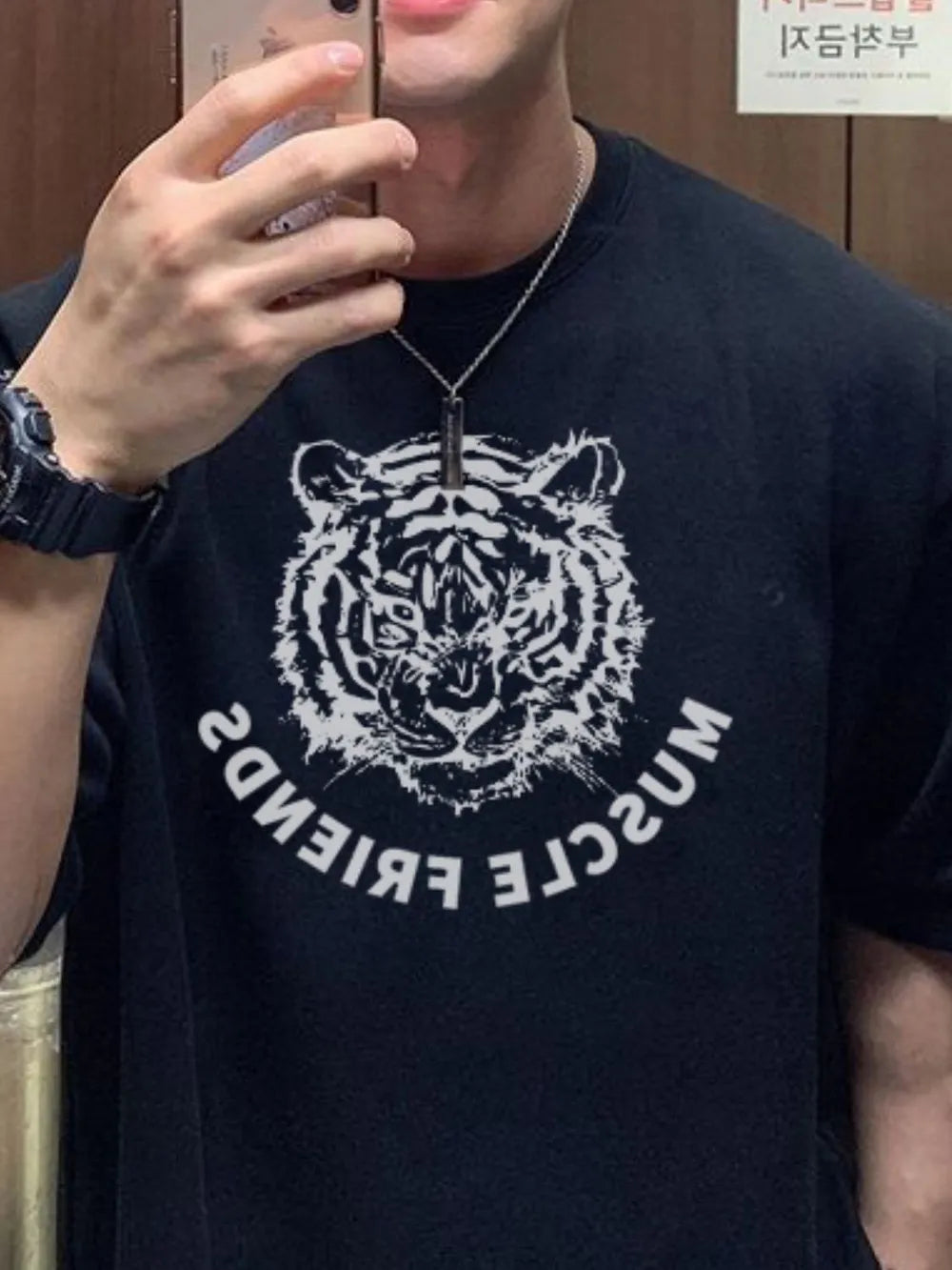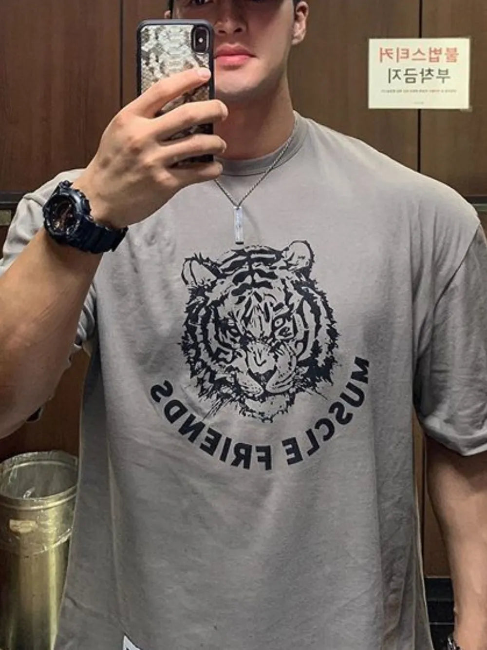 Heren Plus Size Grafisch T-Shirt met Ronde Hals en Korte Mouw