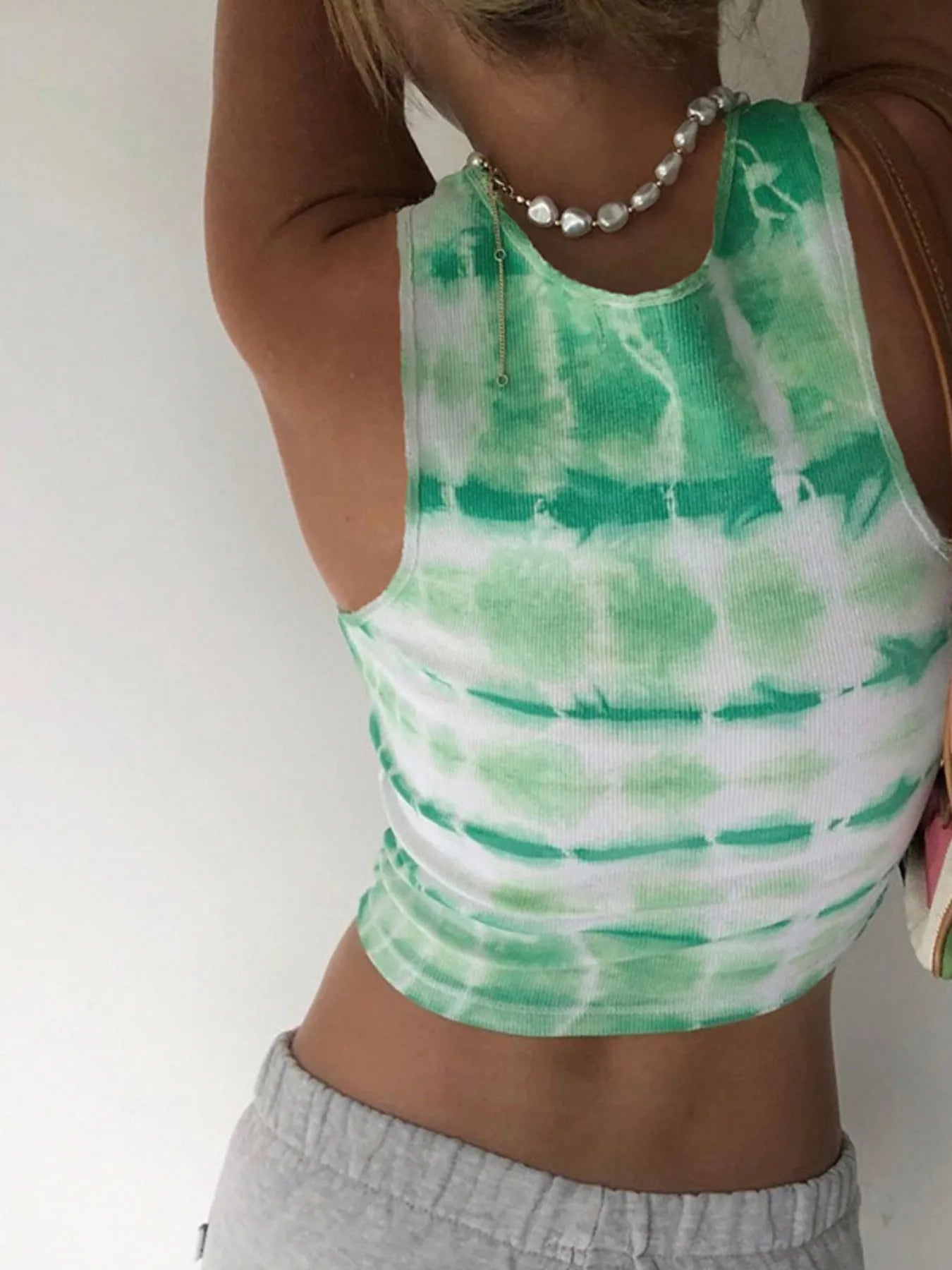 • Kenmerken: Geribde stof, tie-dye design, cropped pasvorm
