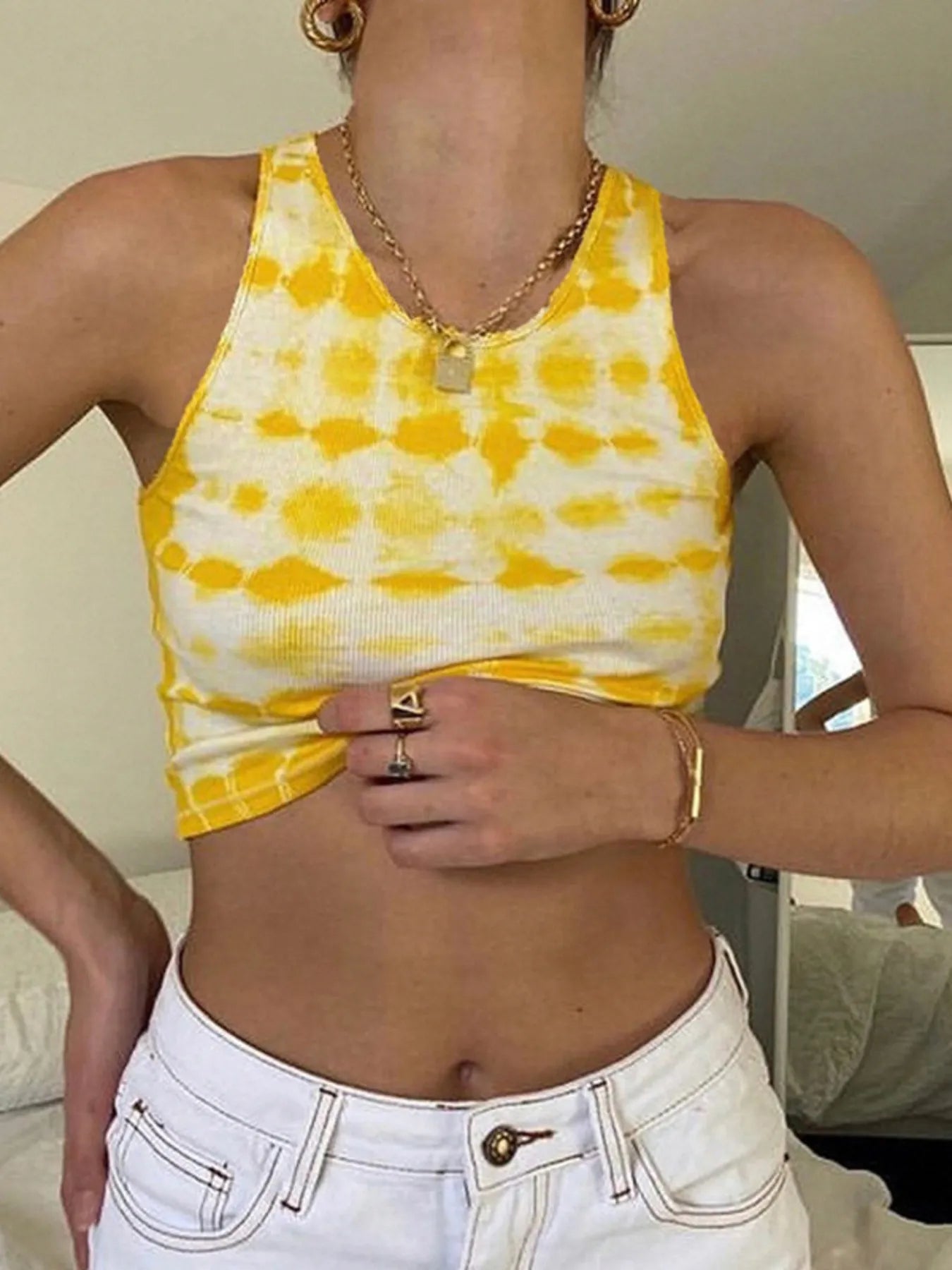 Tie-Dye Geribde Cropped Top