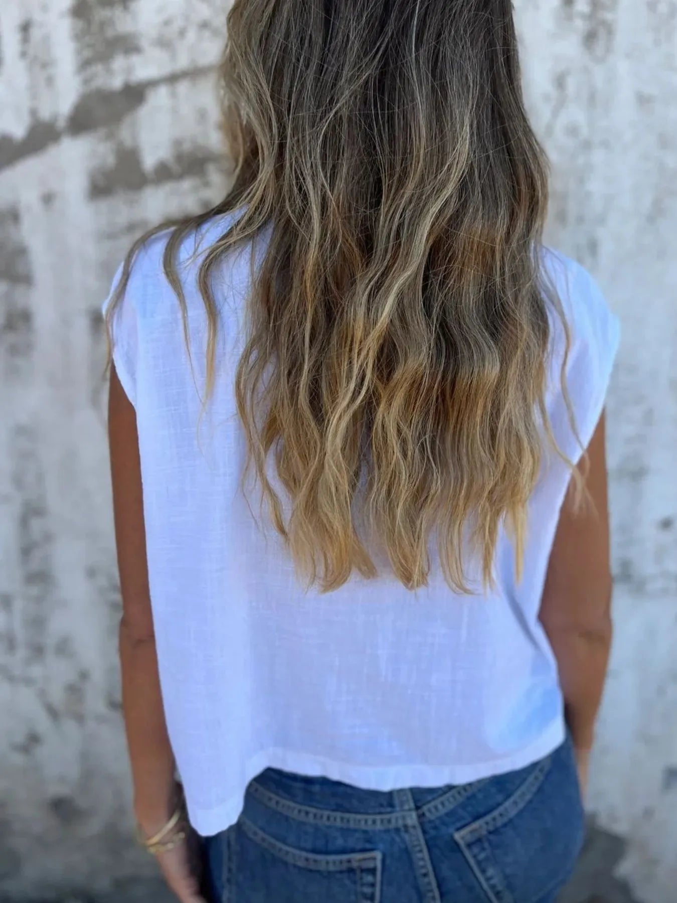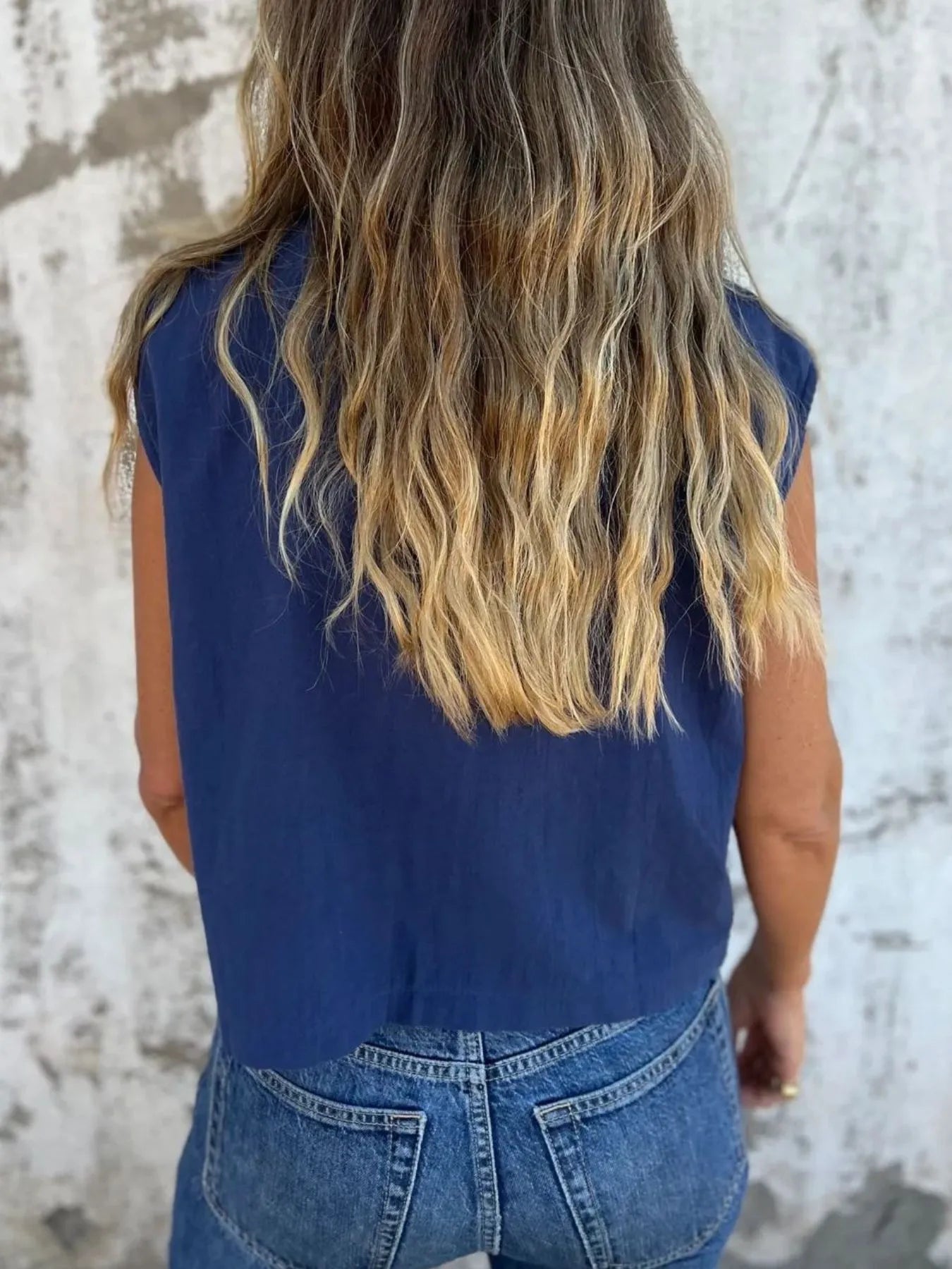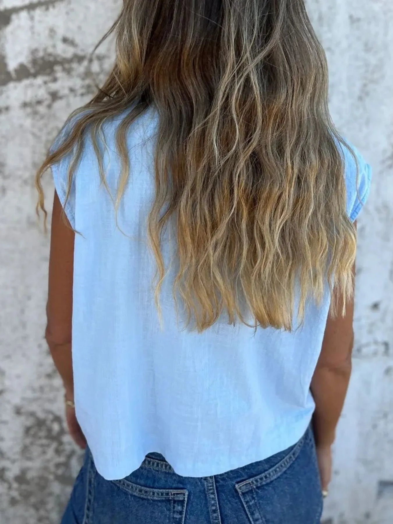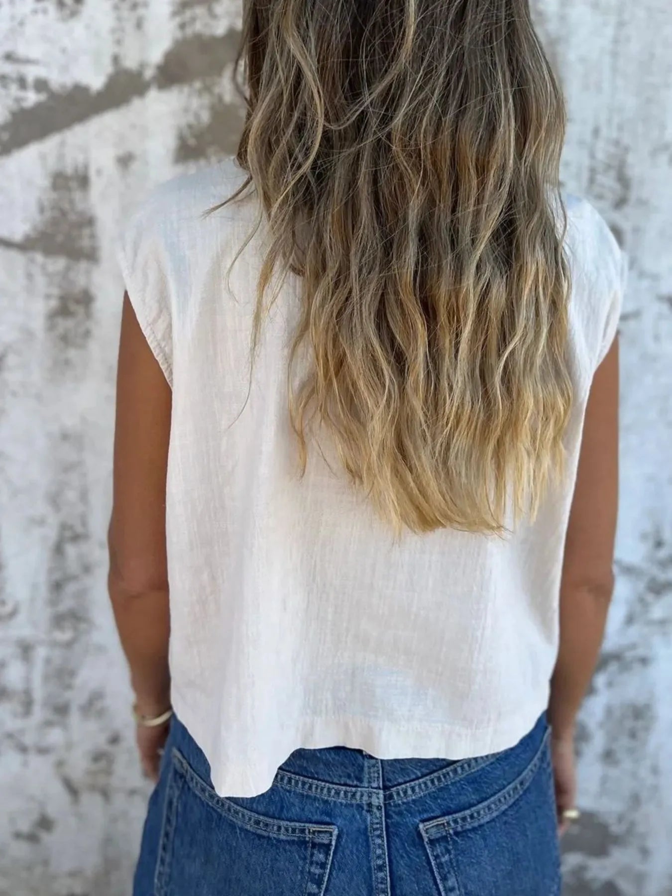 Full Size Mouwloze Blouse met Textuur en Knopen