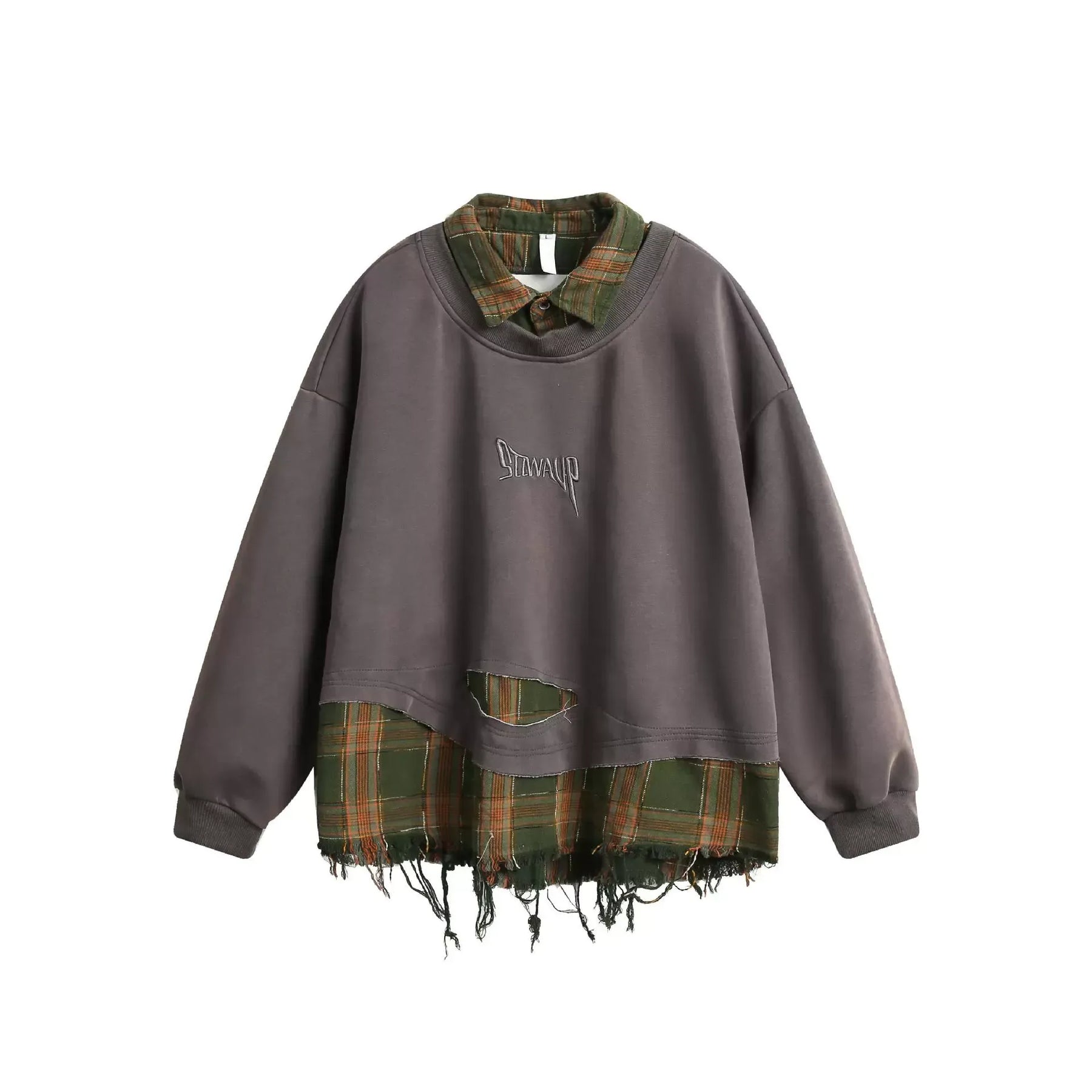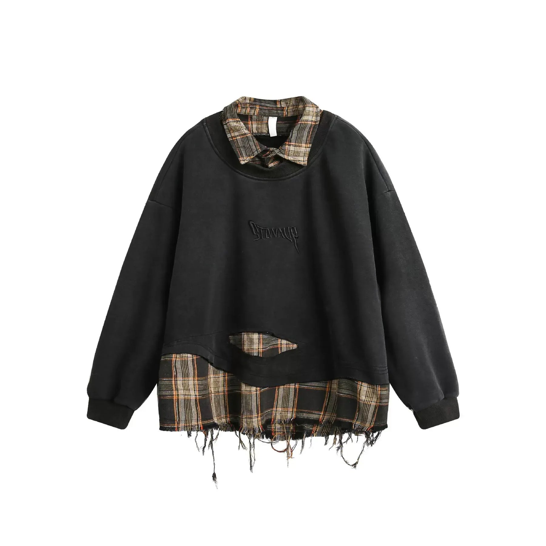 Heren Distressed Geruite Oversized Sweatshirt