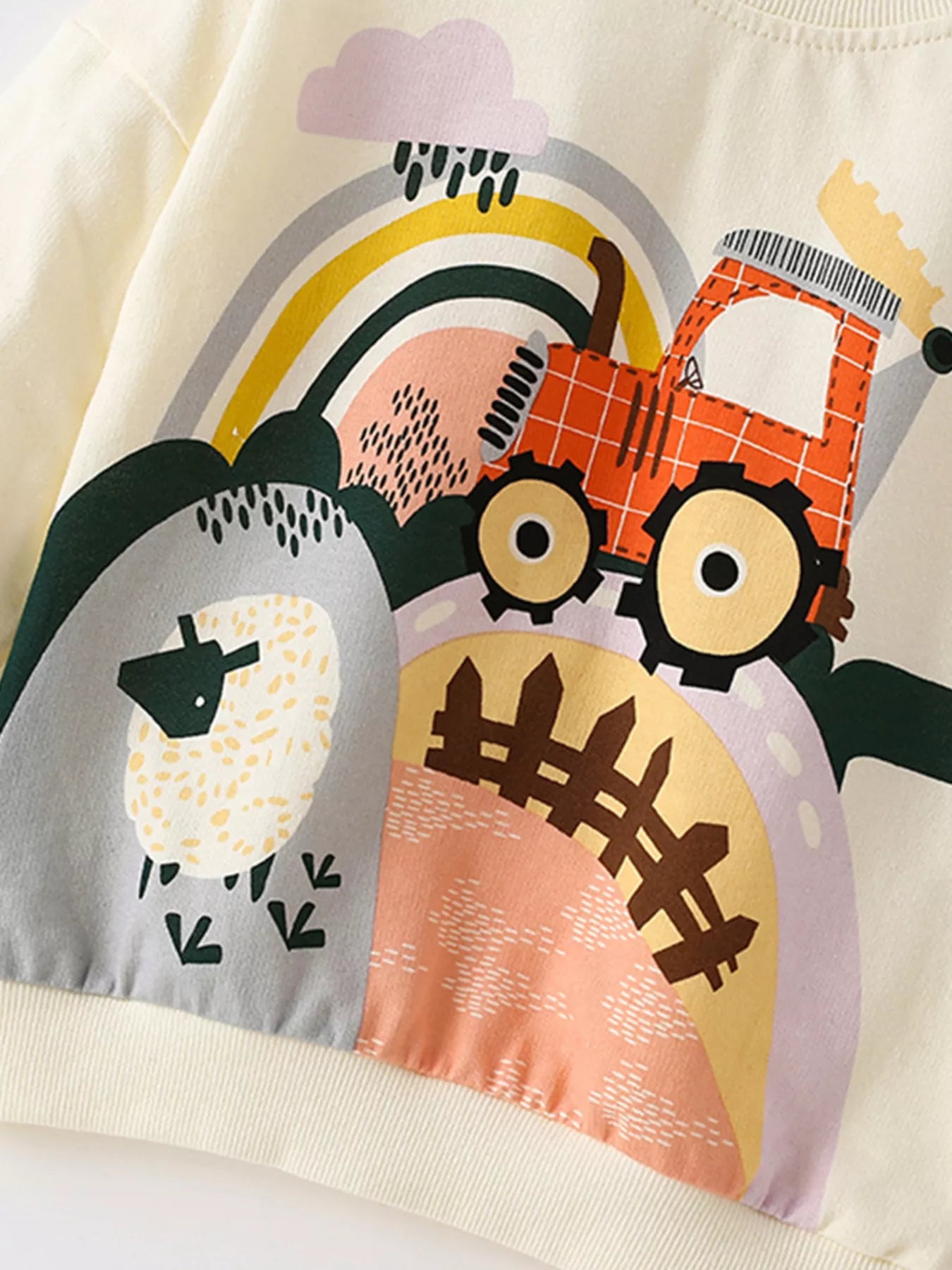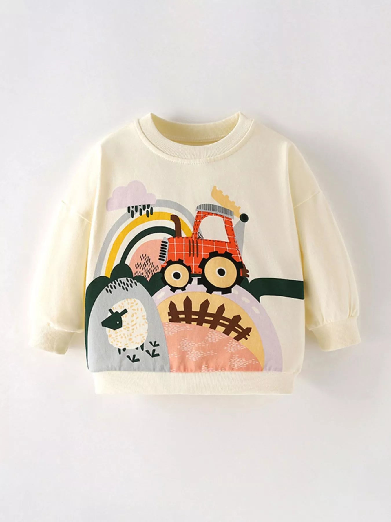 Kindertrui met Cartoon Tractor en Ronde Hals